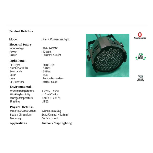 LEARC 72 watt polycarbonate indoor stage light RGB FA6218