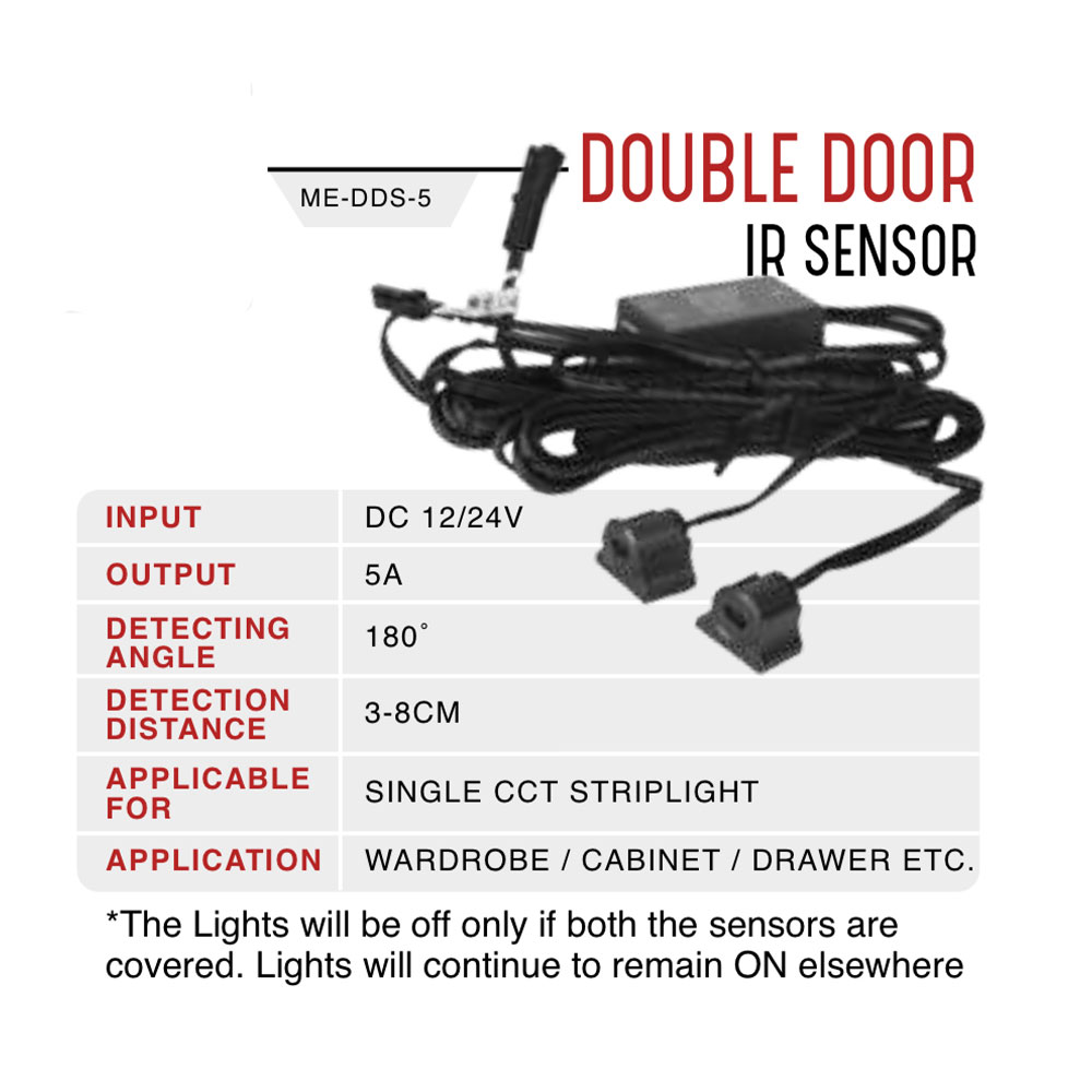 DOUBLE DOOR IR SENSOR FOR LED STRIPS FOR CABINET AND WARDROBE LIGHTING.