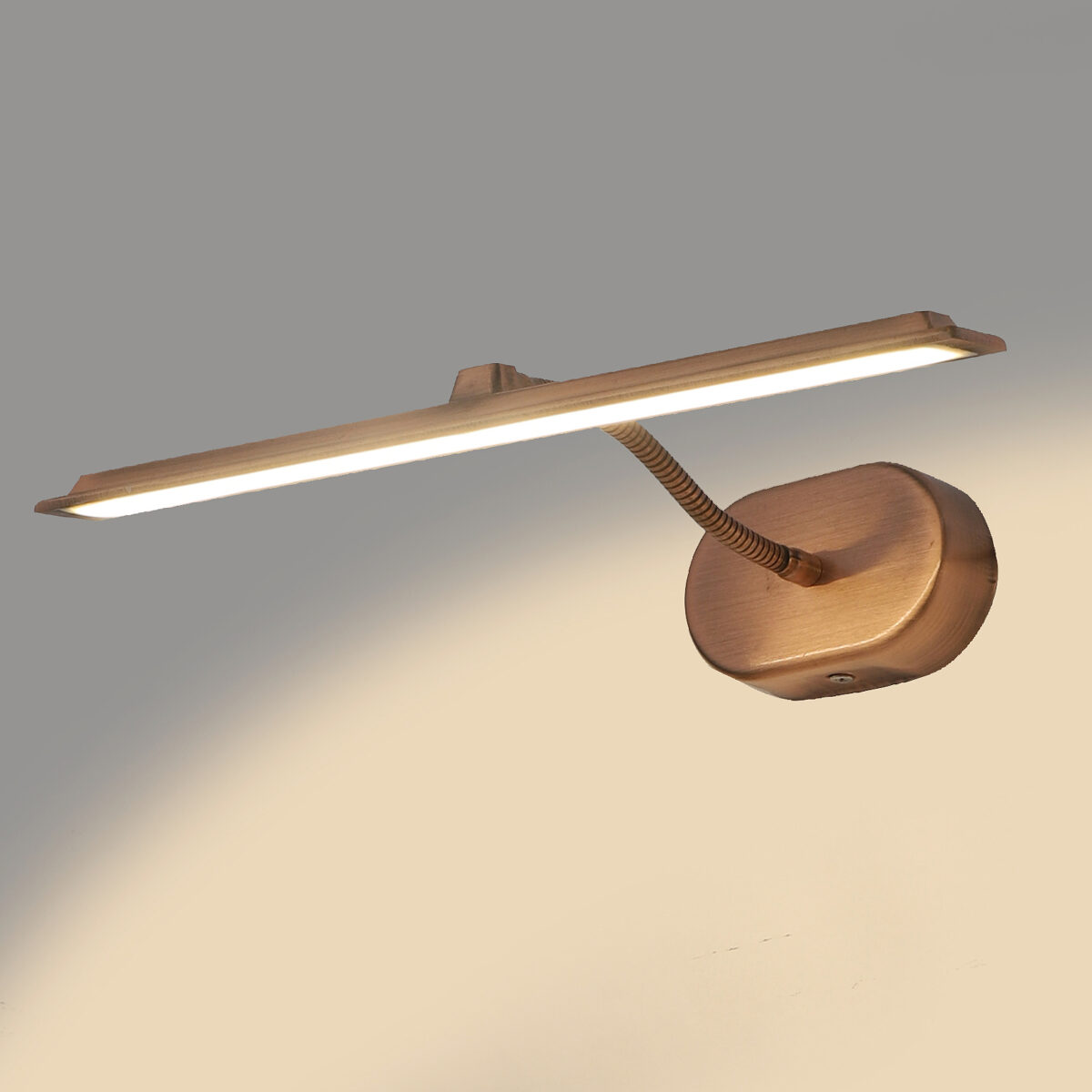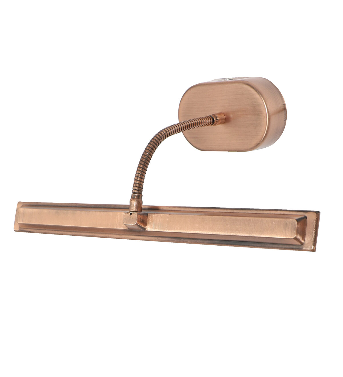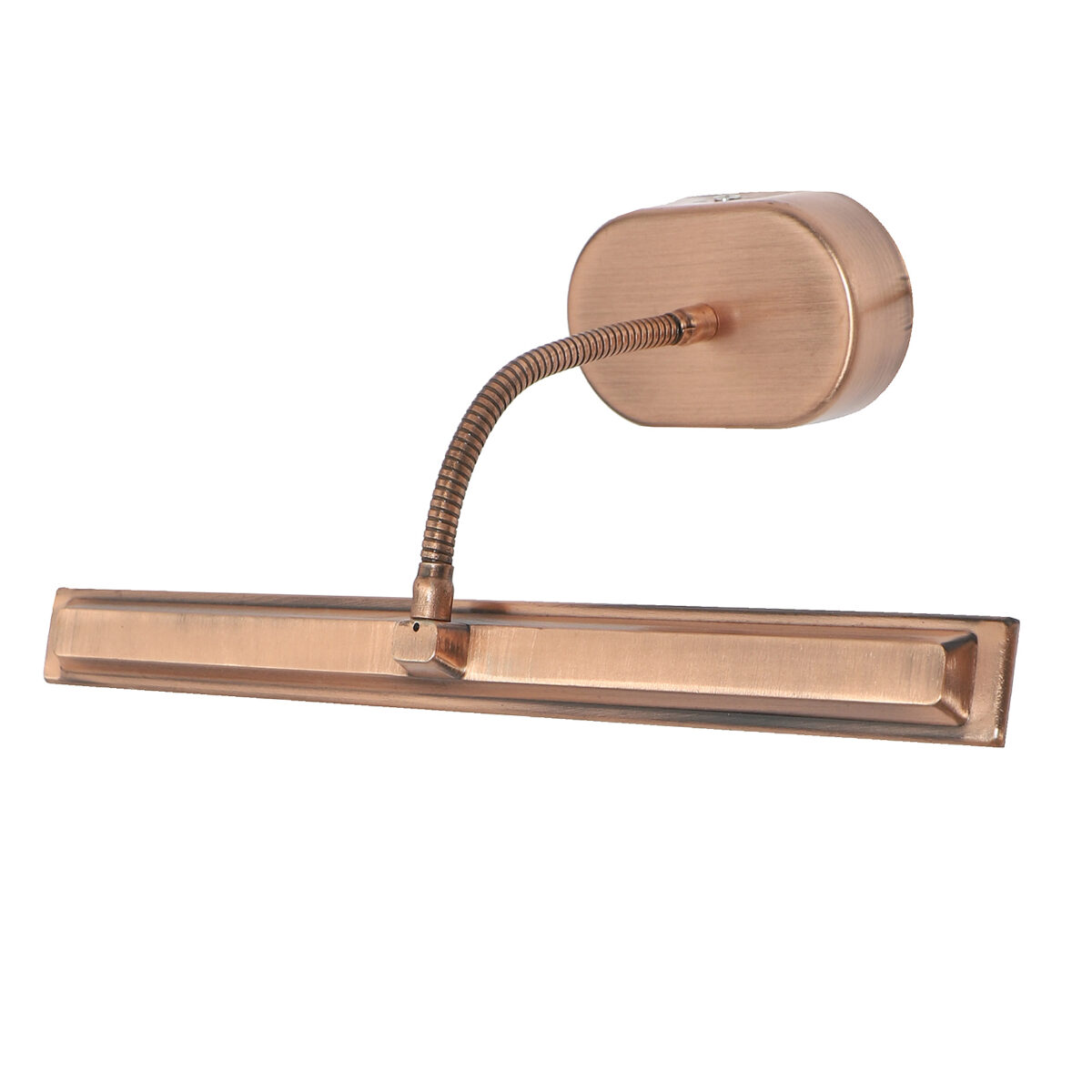 Economical aluminium die cast, copper finish 10 watt, adjustable picture light. The light emitting head is mounted on a flexible pipe which can be rotated in any required direction. Picture lights are functional wall lights which offer a direct light on the object we need to enhance.