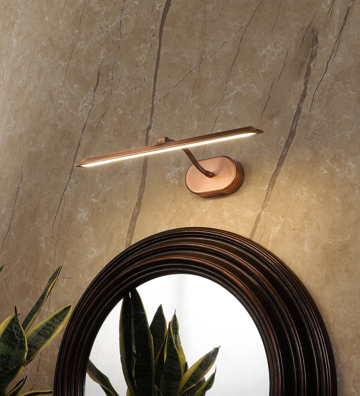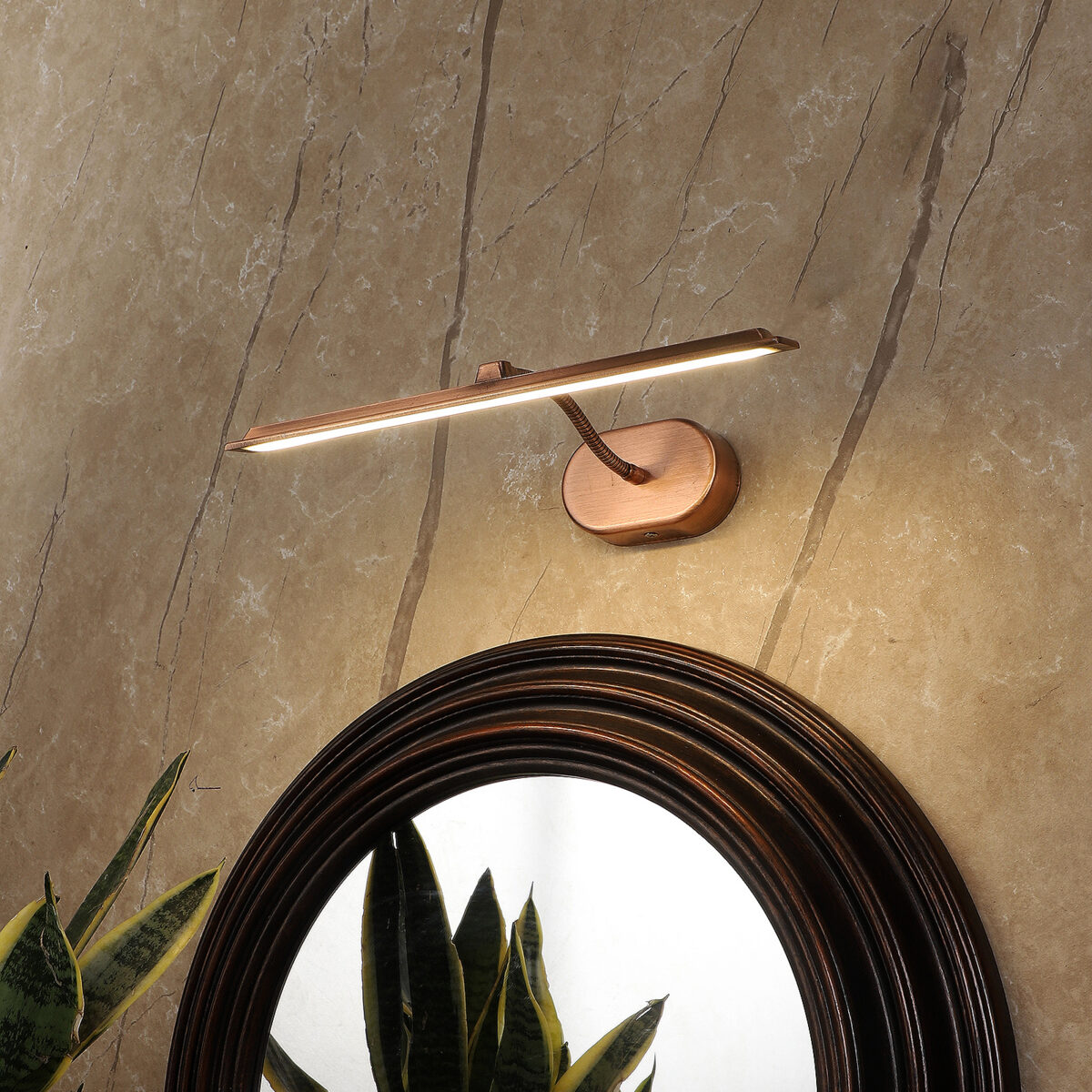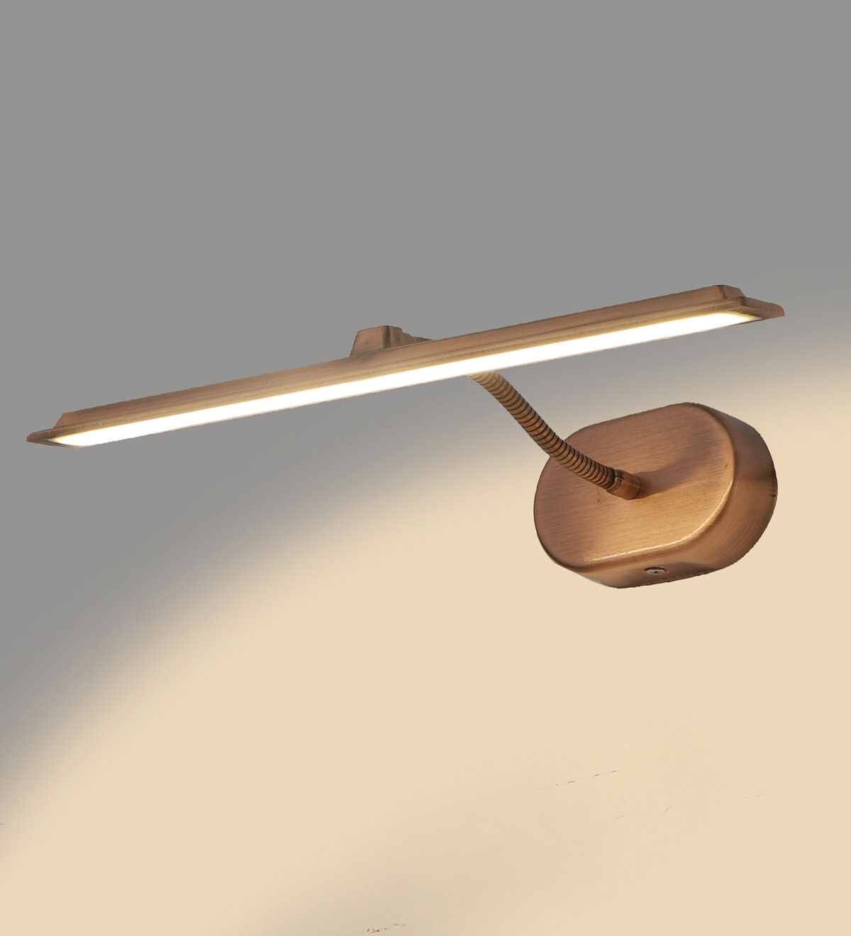 Economical aluminium die cast, copper finish 10 watt, adjustable picture light. The light emitting head is mounted on a flexible pipe which can be rotated in any required direction. Picture lights are functional wall lights which offer a direct light on the object we need to enhance.