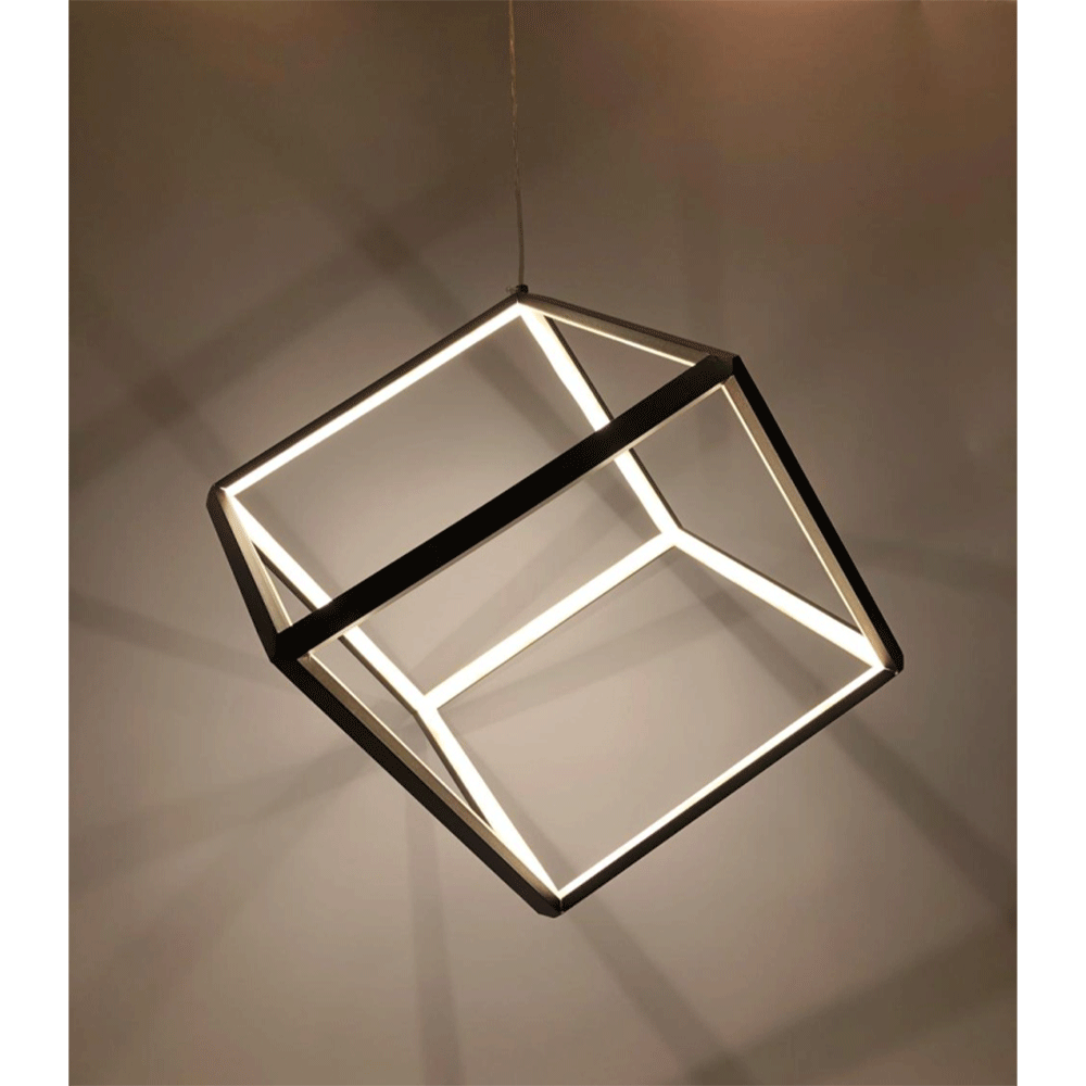 LEARC 12 inch 60 watt white finish cubical LED Hanging Light with top quality LED and driver 3K, Can be custimized to any size, colour finish, mettallic plating, colour of light output as per requirement.