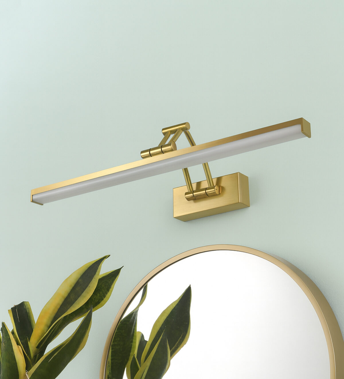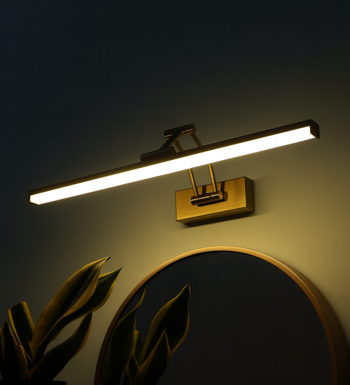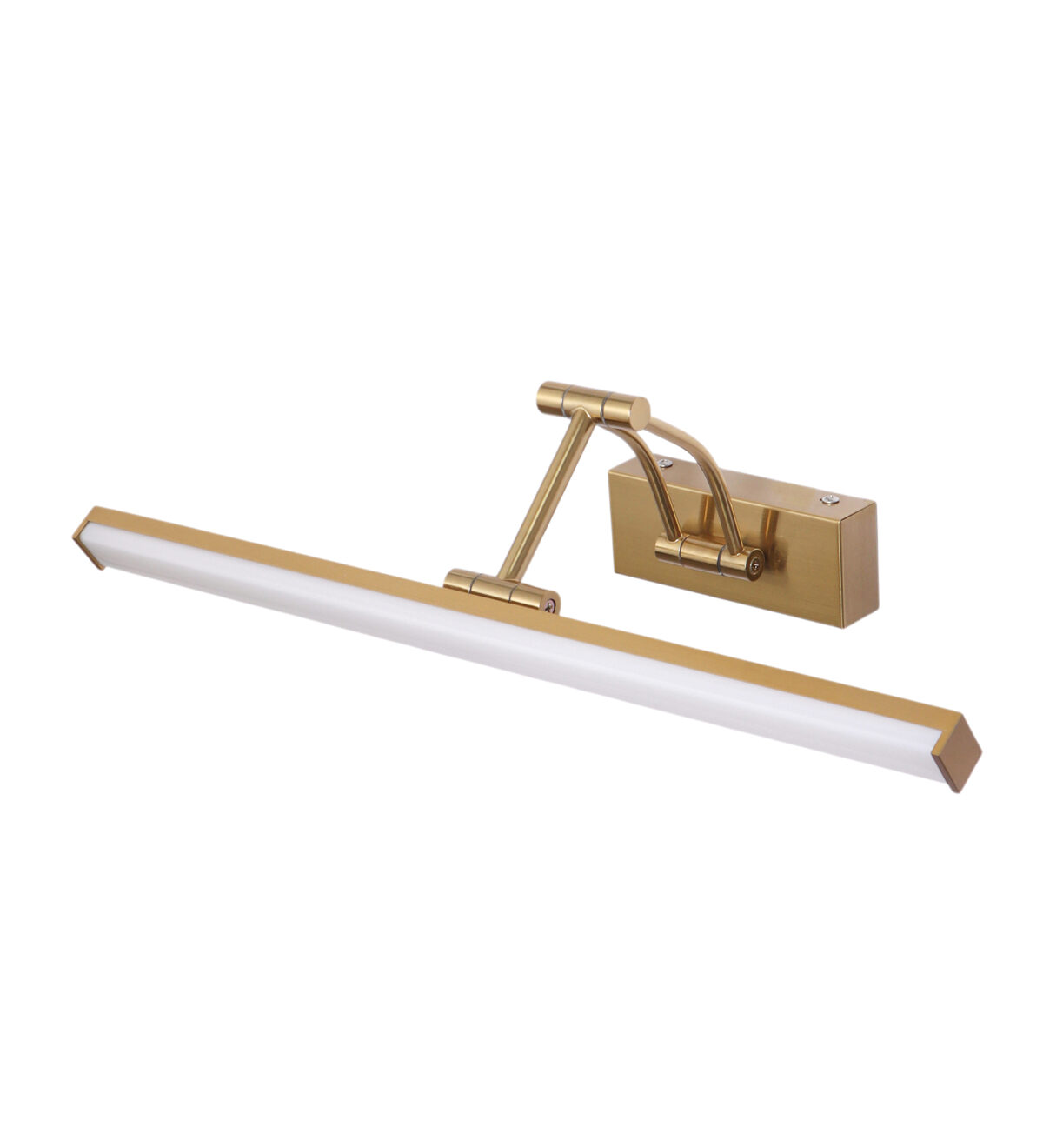 LEARC 12 watt 20 inch gold finish colour changing 3 in 1 adjustible long arm LED picture light. Colour changes fom white to neutral white to yellow by switching on and off.