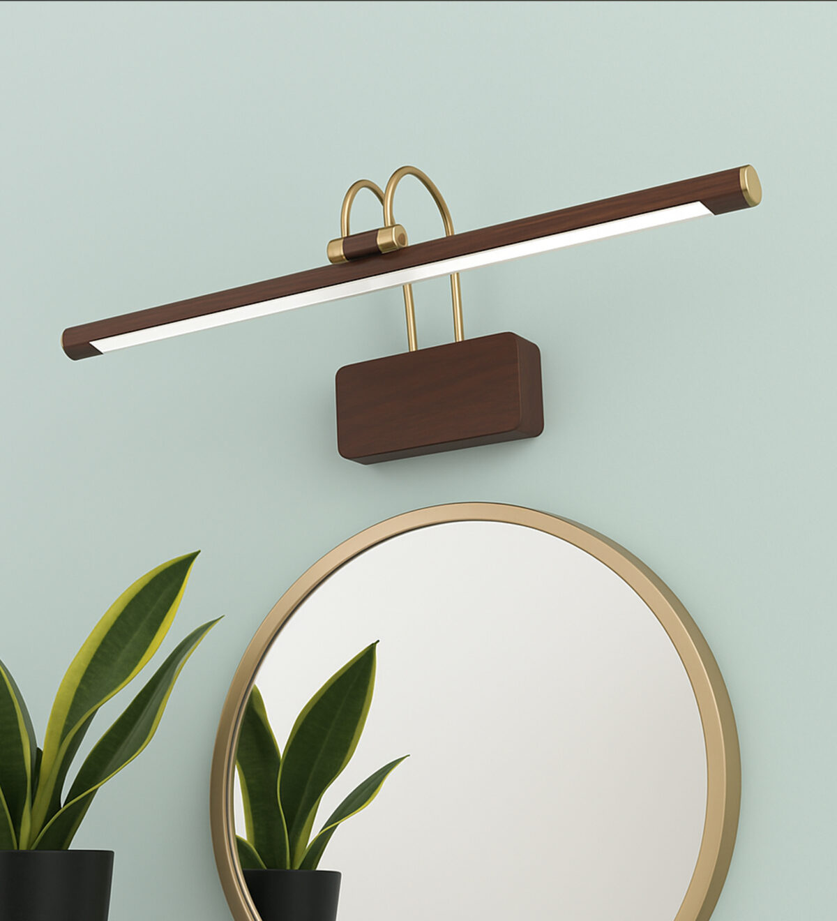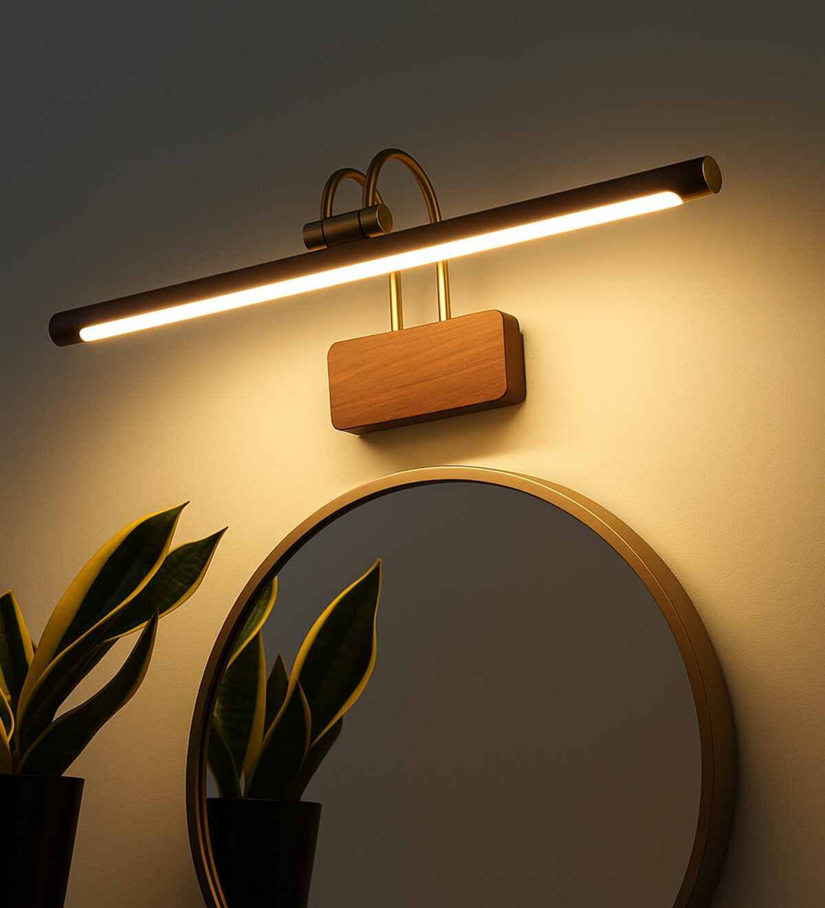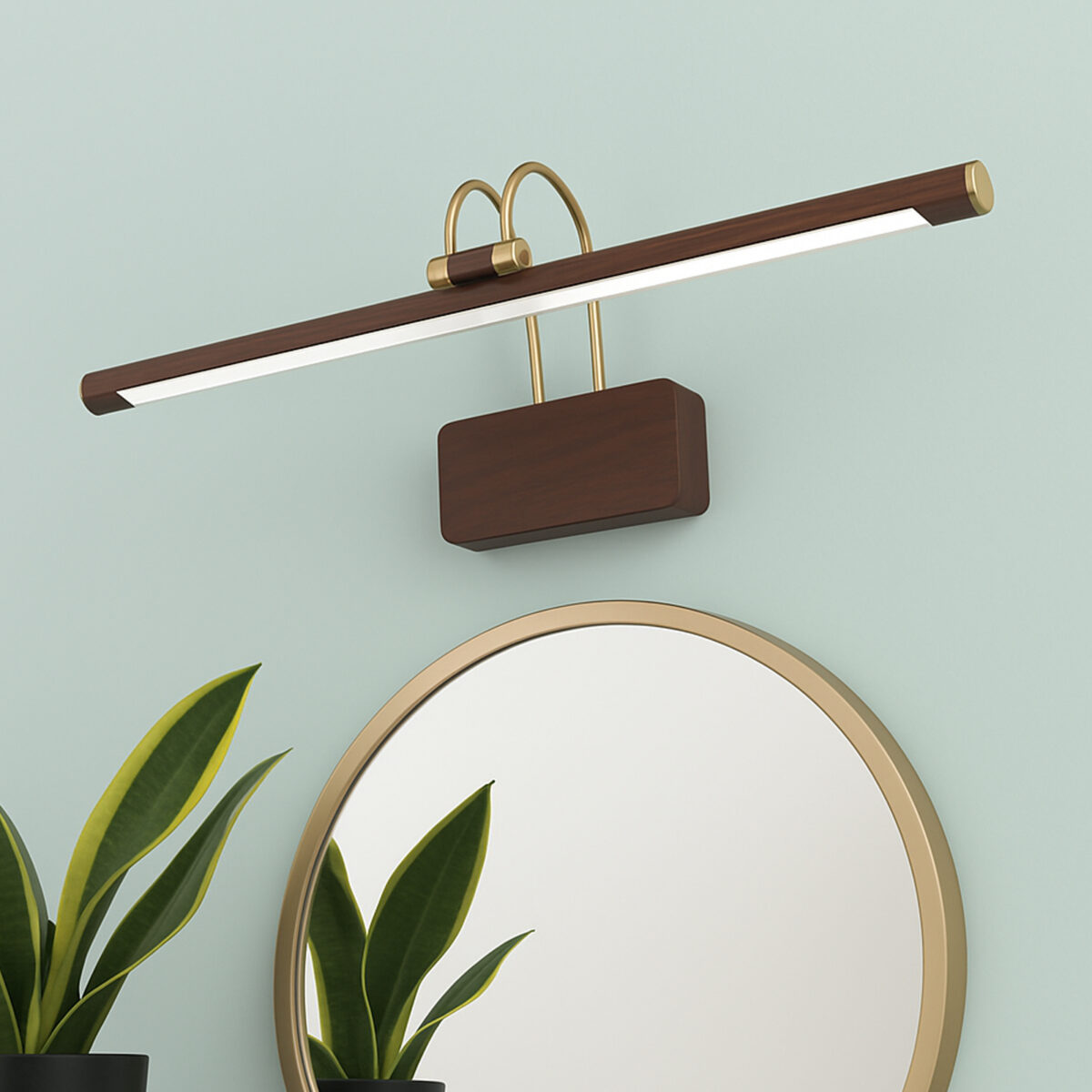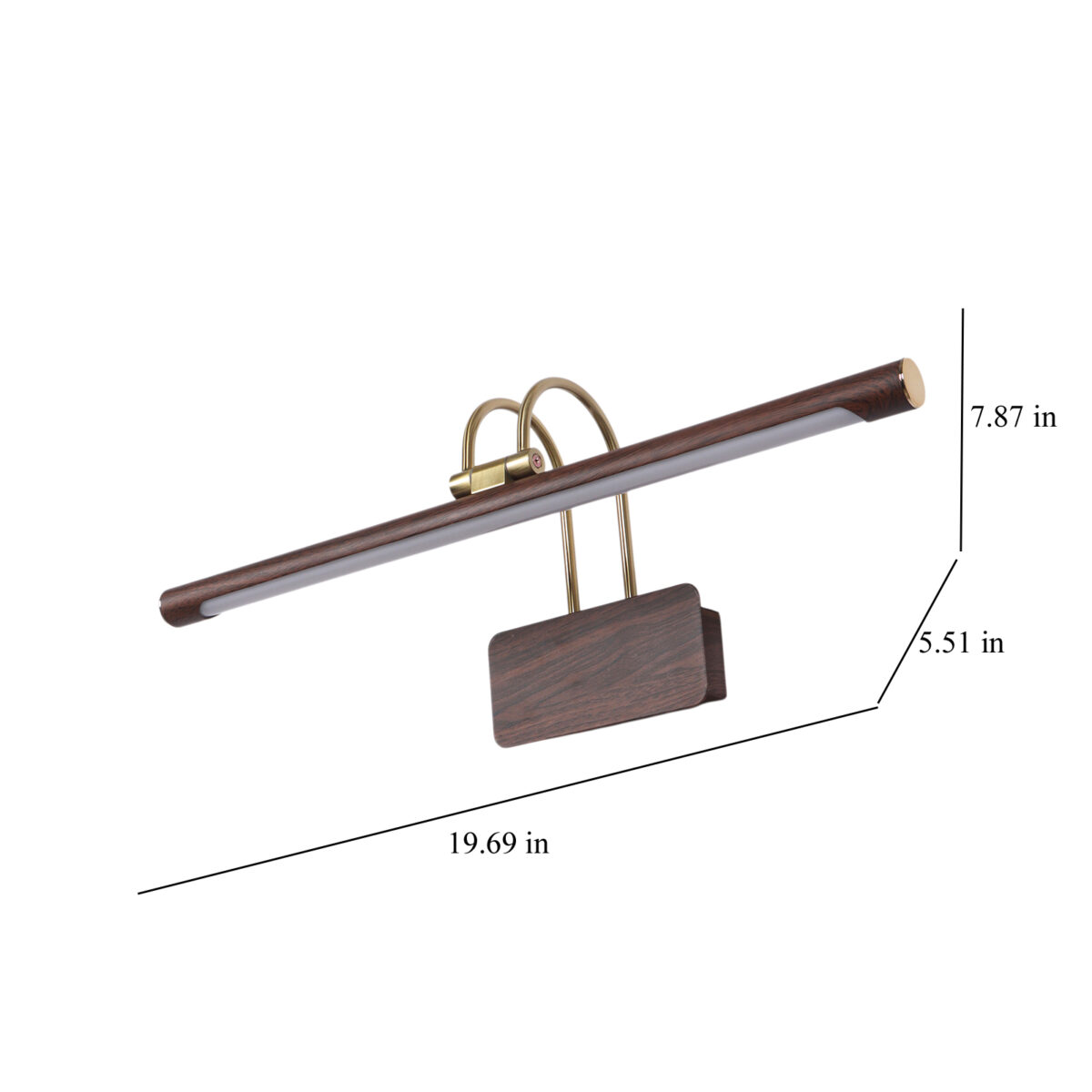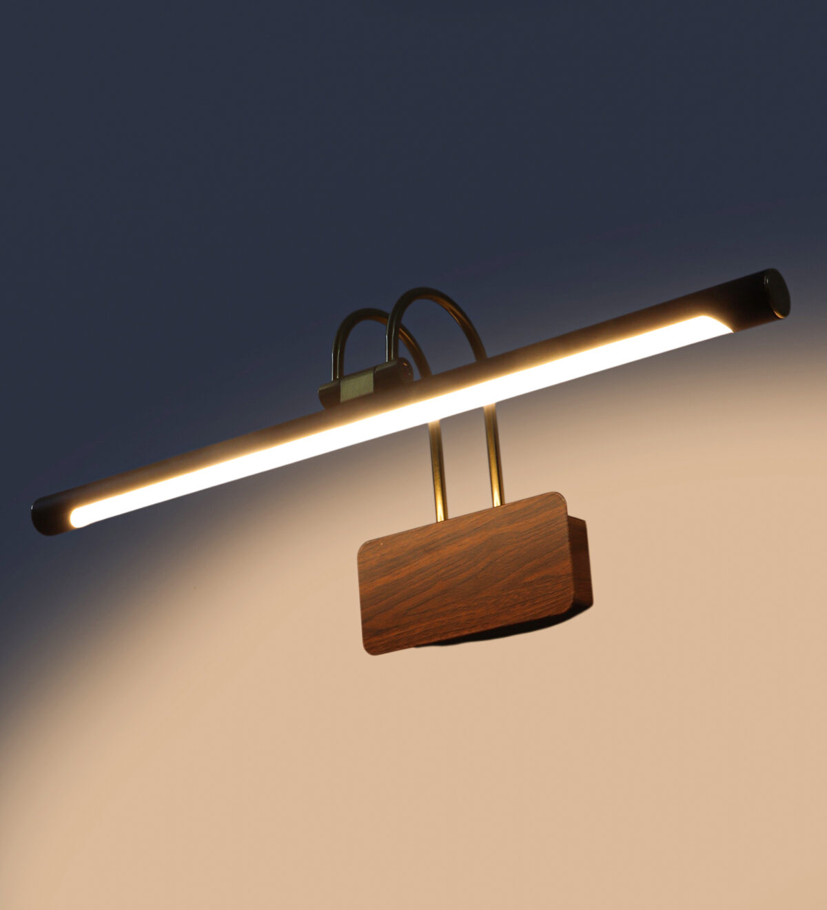 LEARC 12 watt 20 inch wood finish colour changing 3 in 1 LED ajustible picture light. Colour changes fom white to neutral white to yellow by switching on and off.