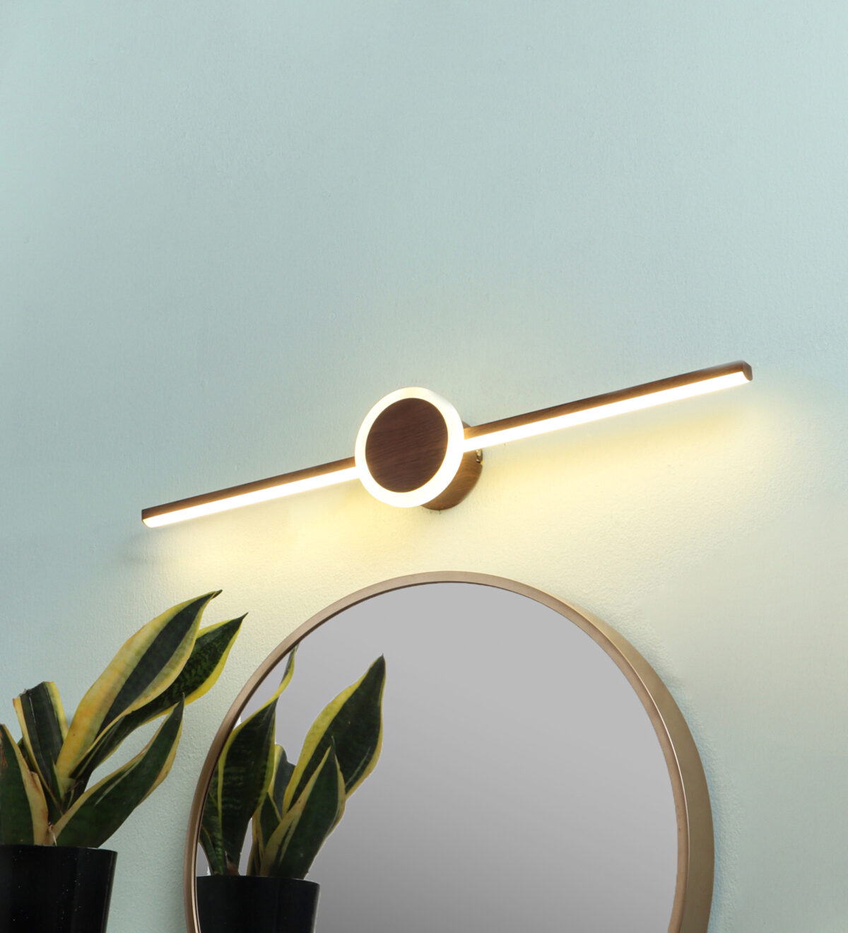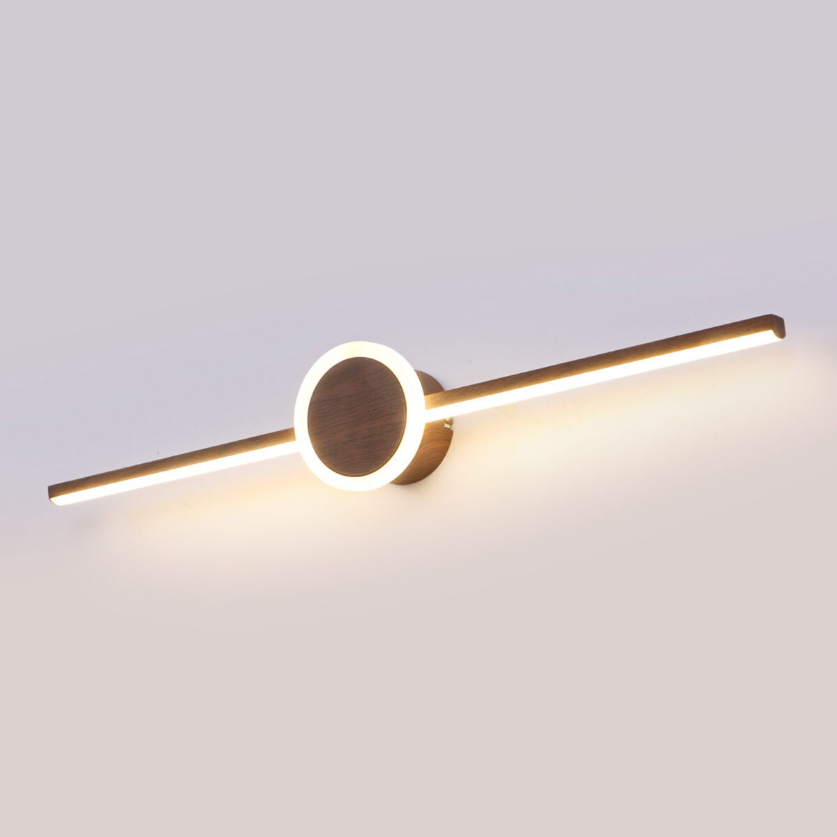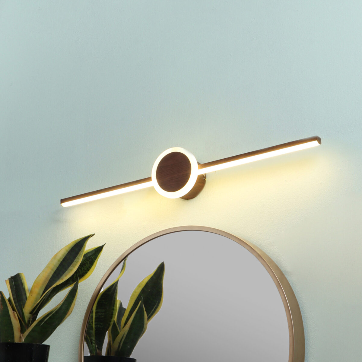 LEARC LED Lighting 16 + 2 watt 23 inch wood finish tricolour LED mirror light. Colour changes fom white to neutral white to yellow by switching on and off.