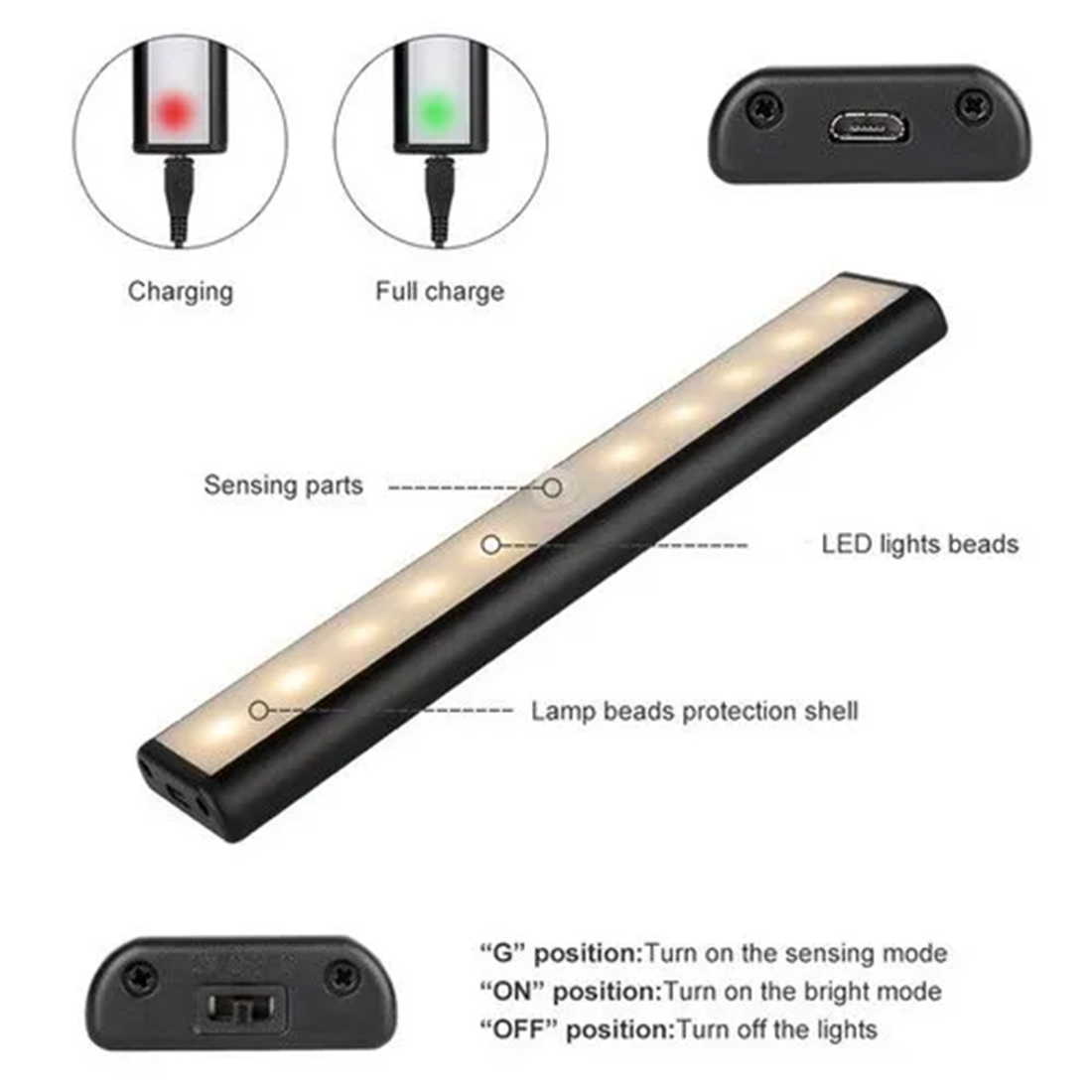 LEARC 300 mm rechargeable wardrobe light usb charging with motion and light sensor.