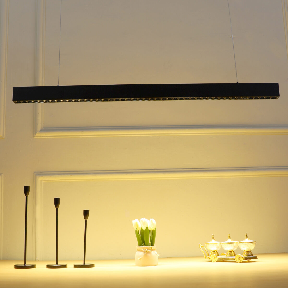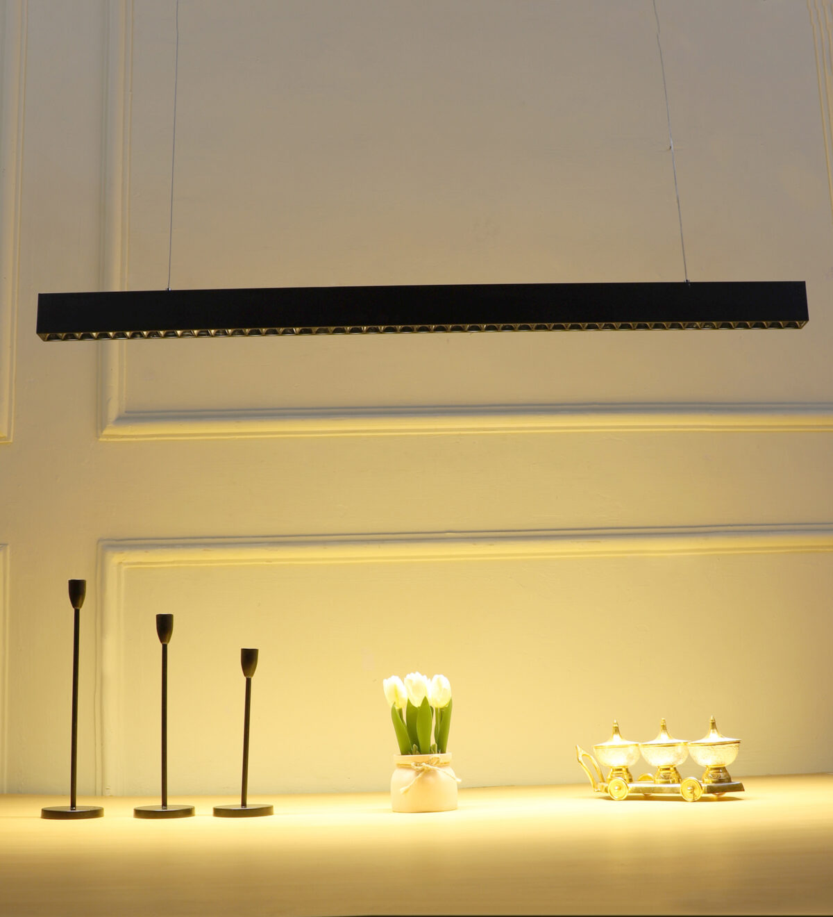 LEARC 36 WATT 4 FEET LED PROFILE HANGING LIGHT 3382 BLACK 3 REFLECTOR 2 DIFFUSER 4 FEET GS1377