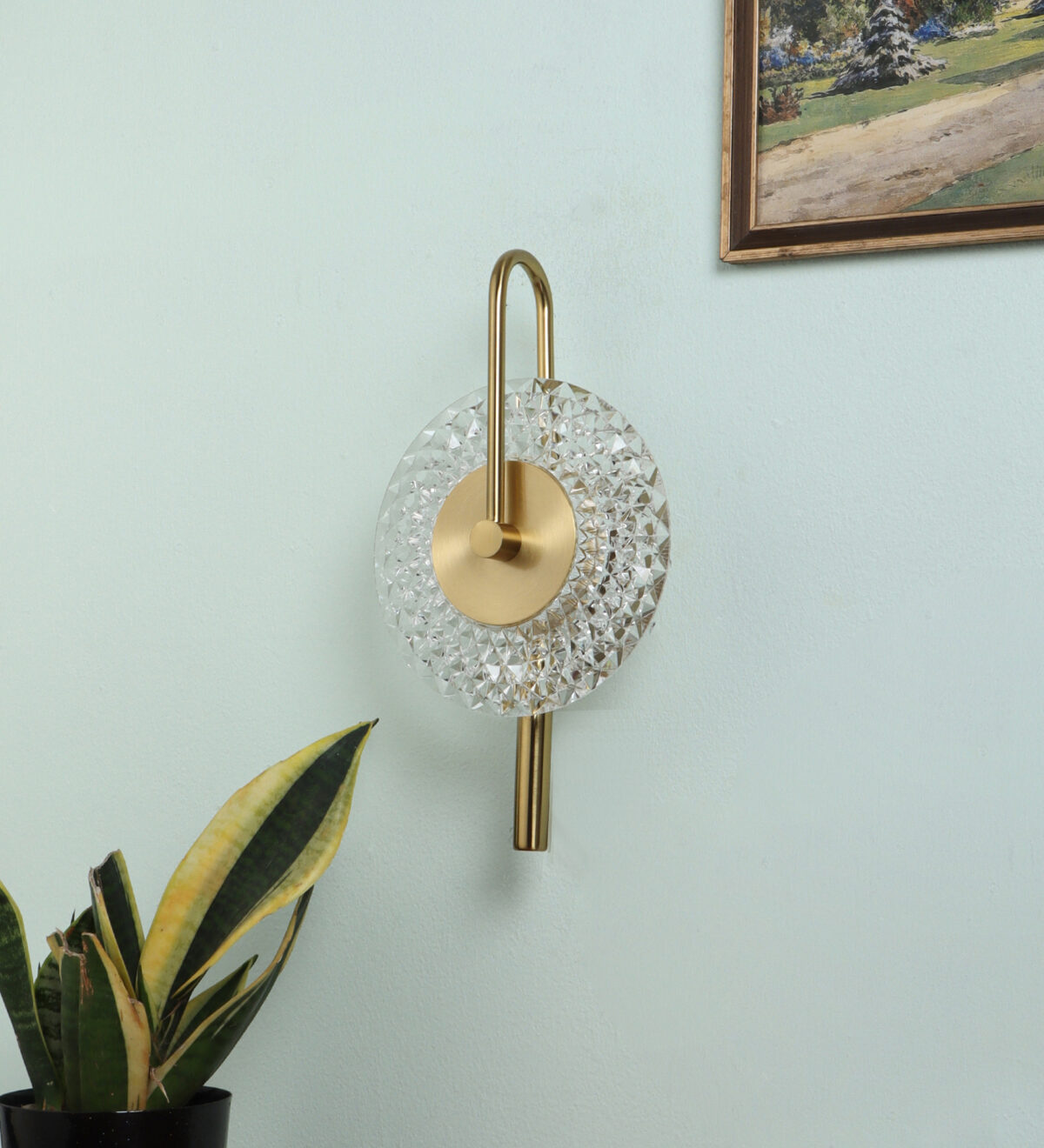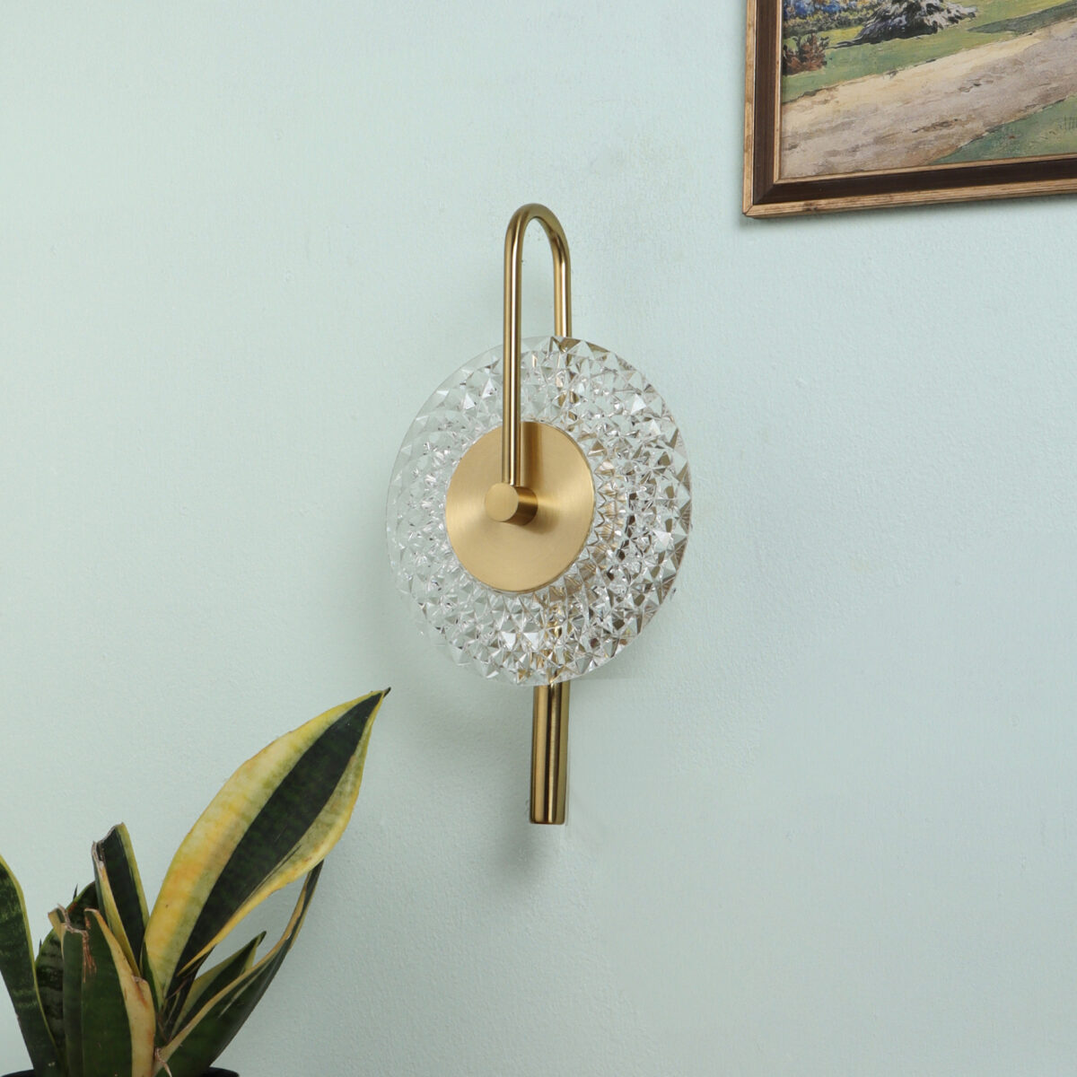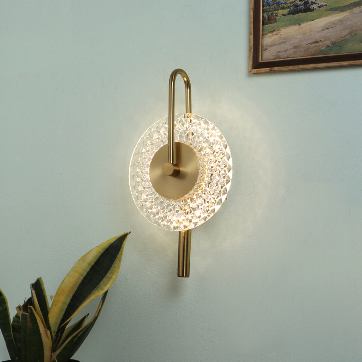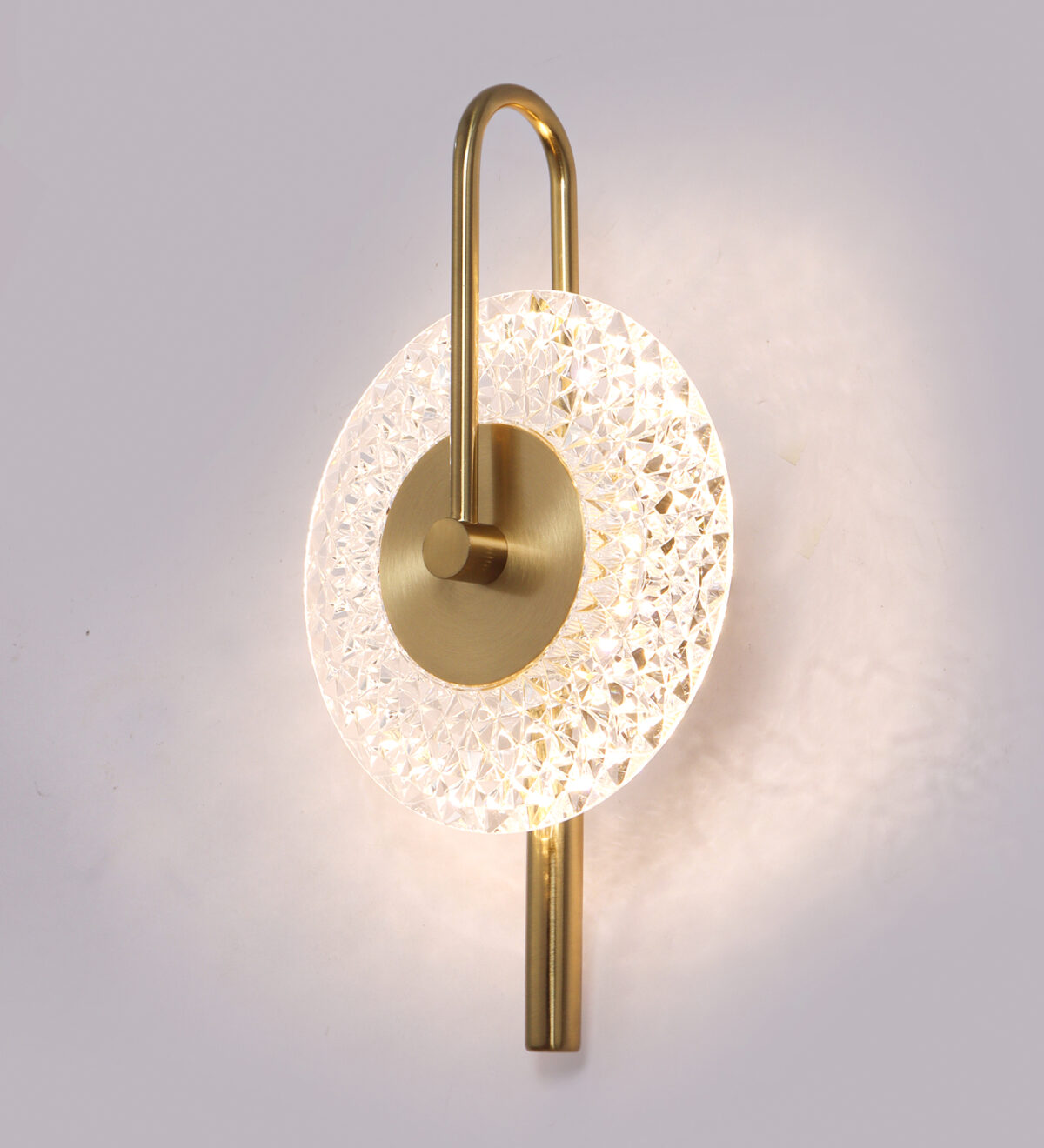 LEARC 6 watt dull gold colour changing 3 in 1 LED wall light. Colour changes fom white to neutral white to yellow by switching on and off.