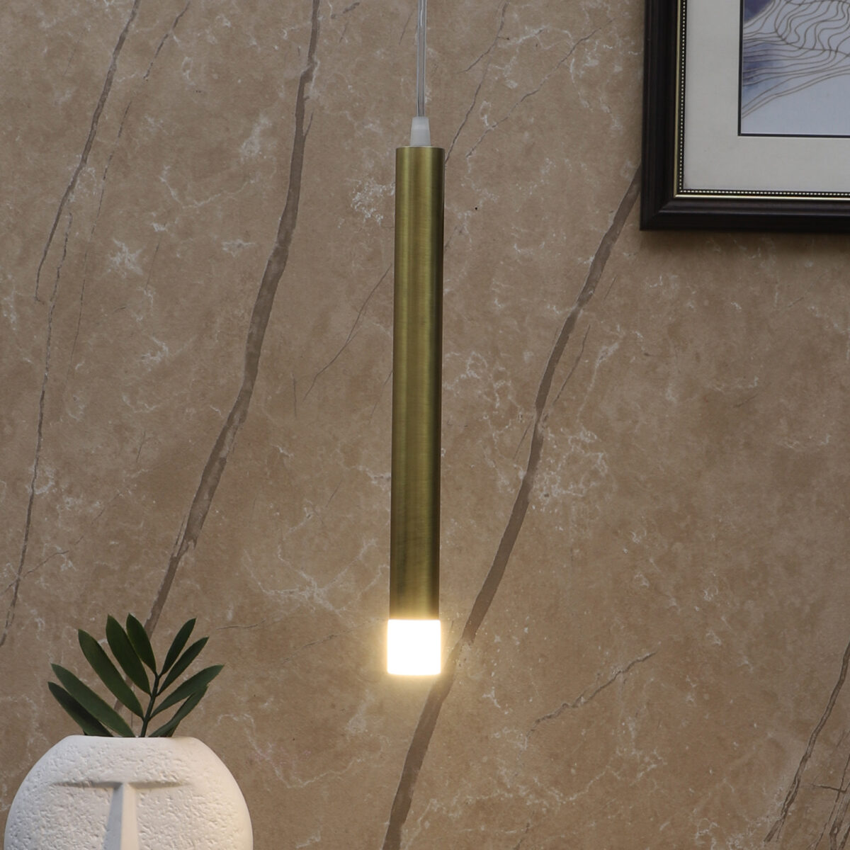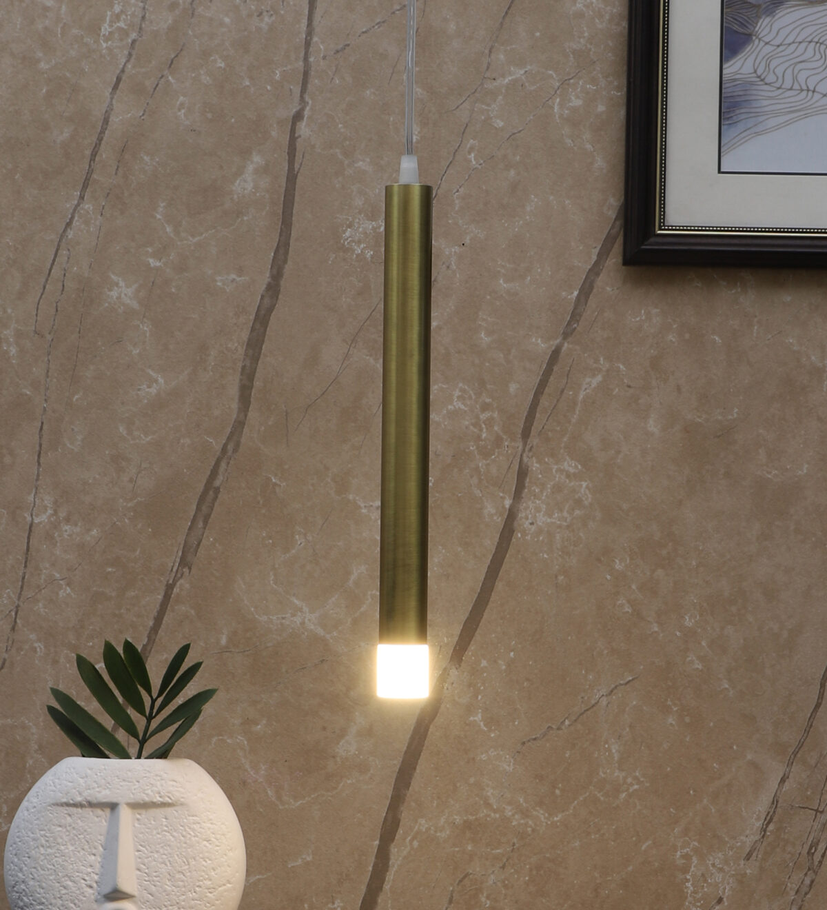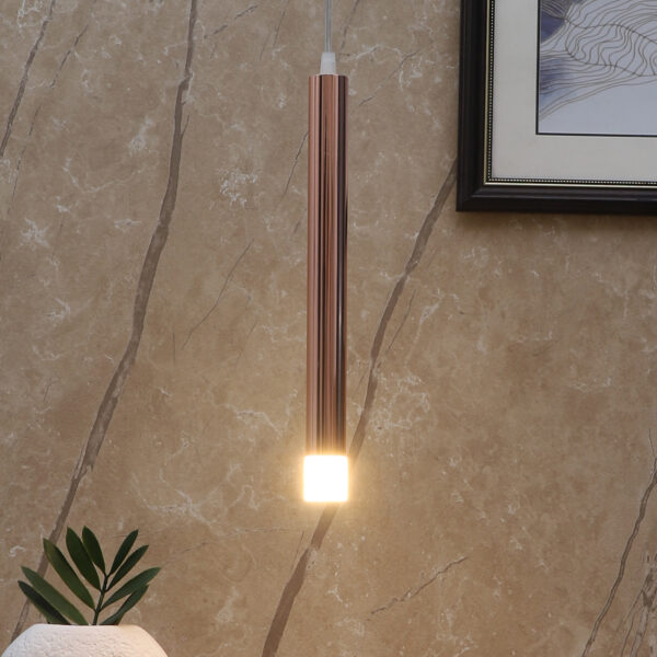 Gold finish, sleek, modern, 6 watt LED hanging light having top branded LED and driver warm white (yellow) light output The suspension can be adjusted at time of installation to the desired height. Can be made available in a cluster of multiple quantities with round, square or rectangular base as per requirement . Application includes both residential and comercial premises wherever it matches with your interiors. Can be customised as per requirement in terms of finish, wattage, height, diameter.