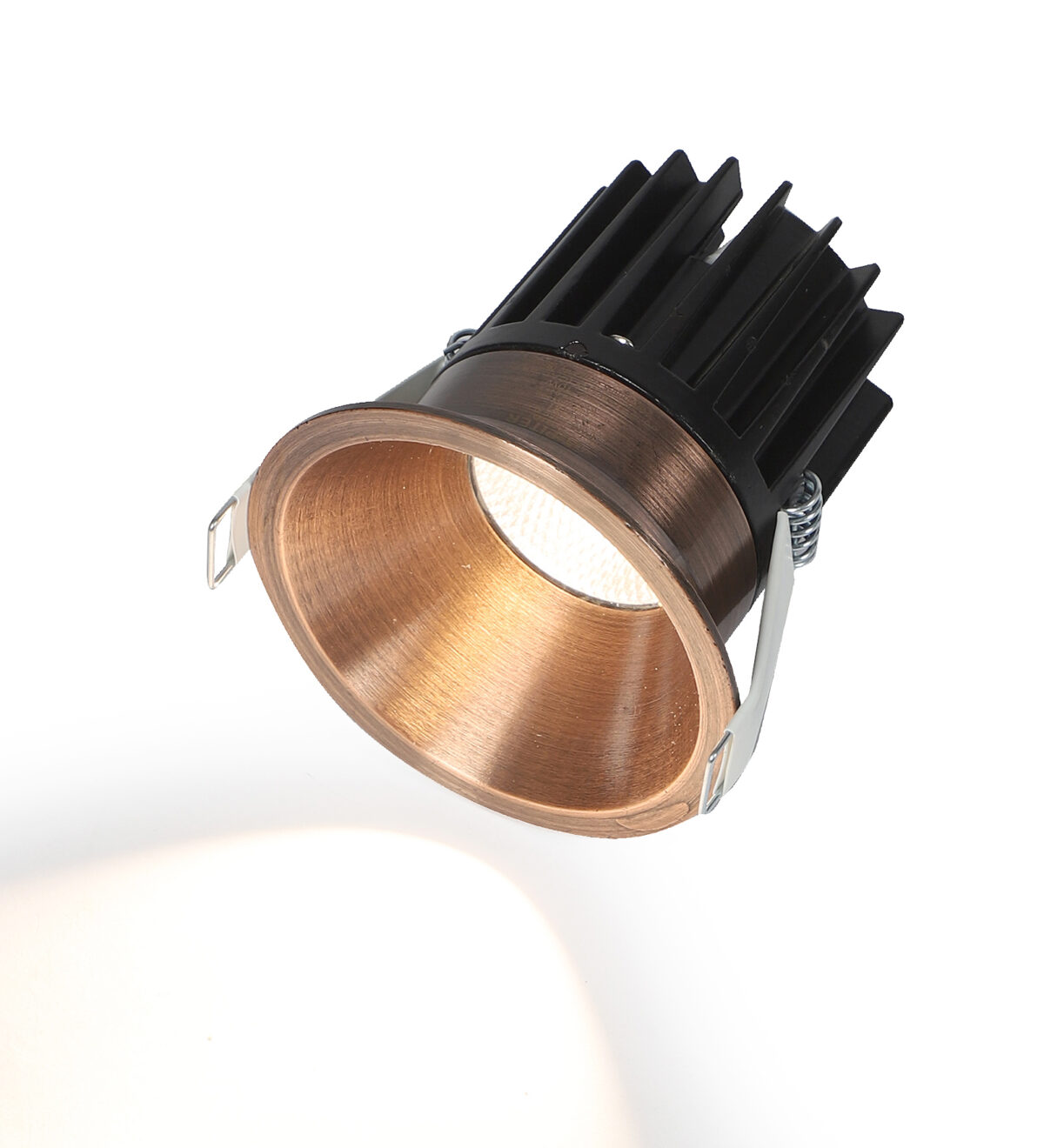 Antique brass finish, aluminium die cast round 12W LED COB concealed ceiling light with top quality LED and driver. Application includes both indoor and outdoor ceilings. Available in 3000K, 4000K and 6000K ie warm white, nuetral white and white light output.