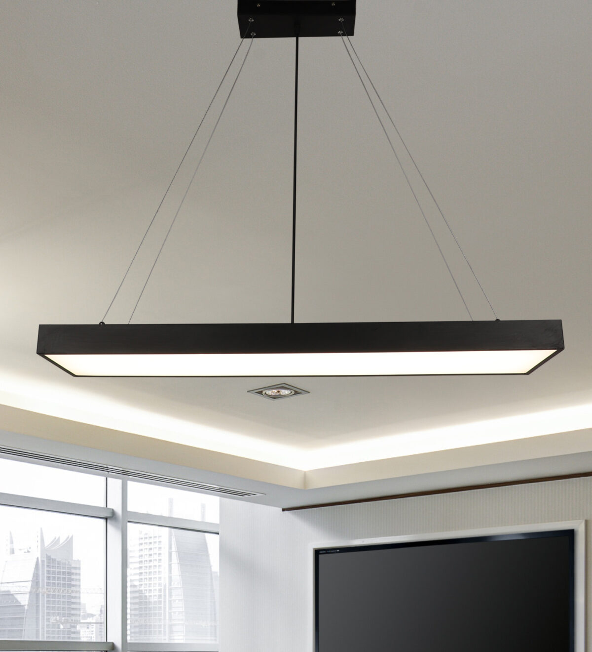 LEARC aluminium black 10 inch X 3 feet 80 watt dimmable and tunable LED rectangular Hanging Light with remote.