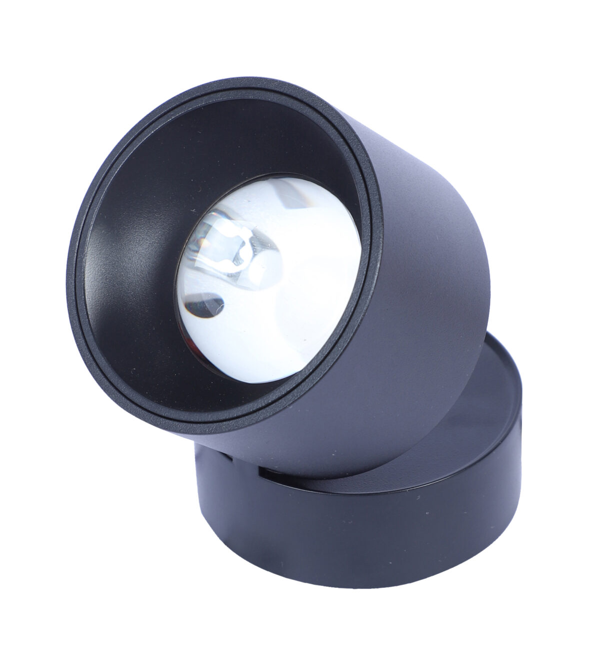 LEARC aluminium black 12 watt colour changing 3 in 1 CREE LED adjustable angle LED surface light with lens. Scene Switch Feature : With it’s scene switch feature the downlighter can change it’s color into three modes i.e Cool Day Light, Natural White and Warm White. ON/OFF of the switch in 2 seconds leads to the change in color. Choose the color of your downlighter according to your mood.