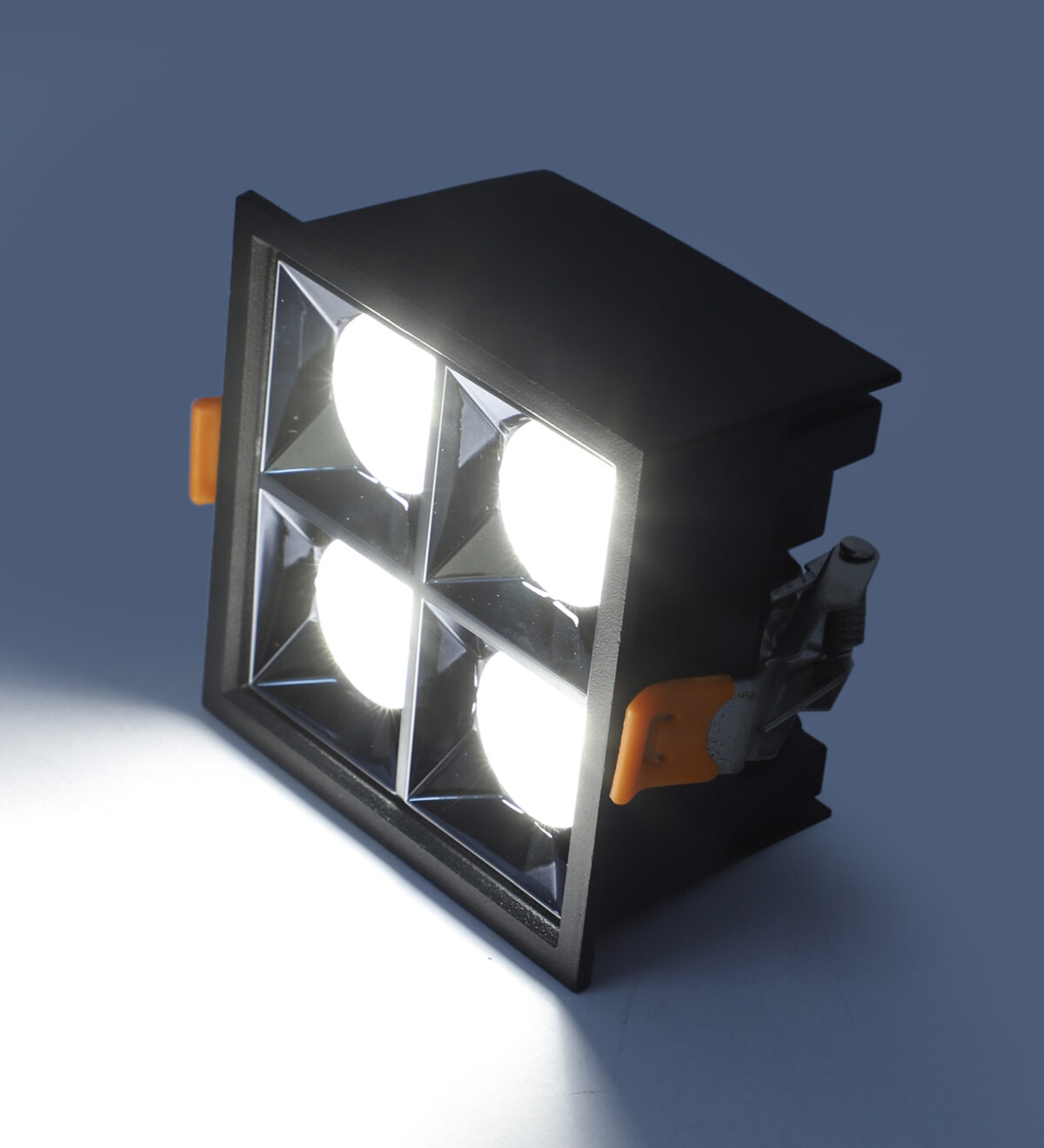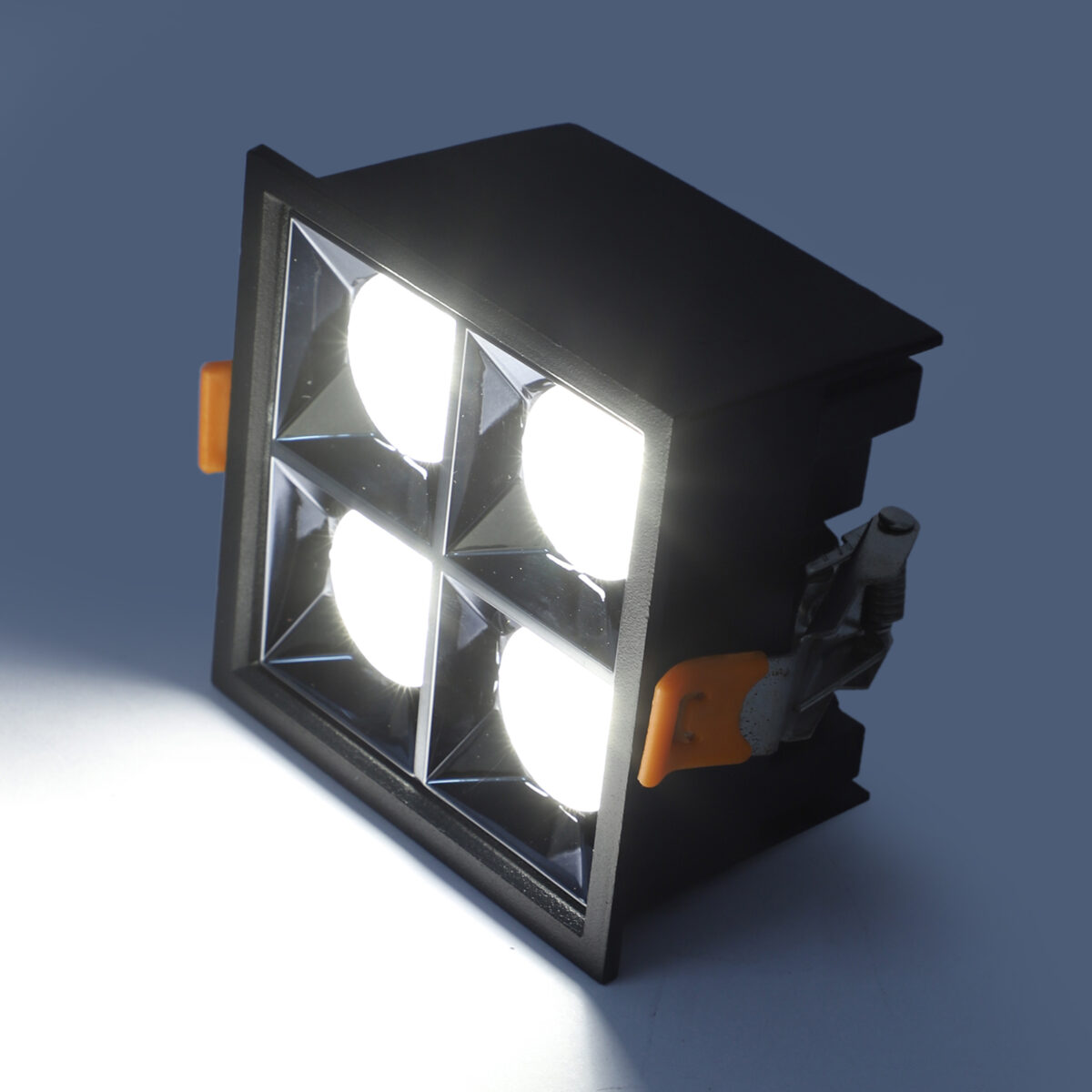 LEARC aluminium black finish 4 x 4 watt anti glare square LED Linear down light with Bridgelux COB and Fulham LED driver.