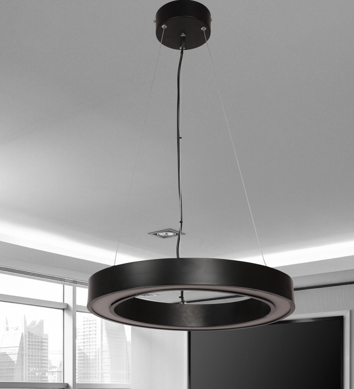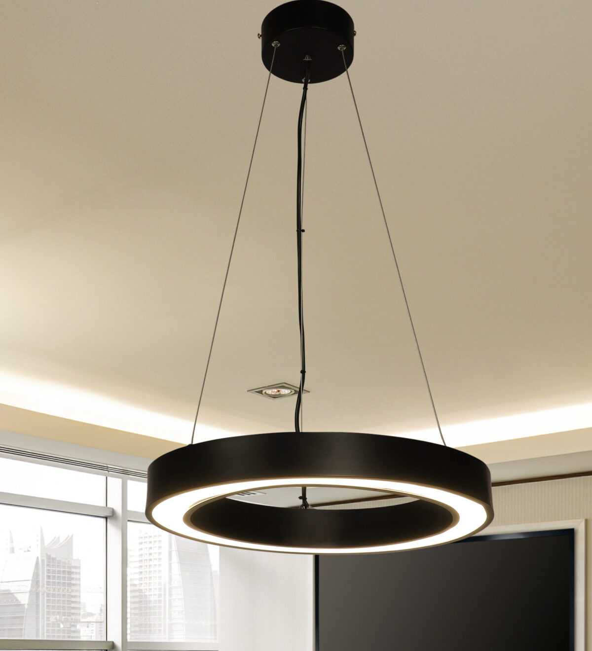 LEARC aluminium black 80 watt 18 inch Bridgelux LED Oval Donut Hanging Light with Philips LED driver HL8062