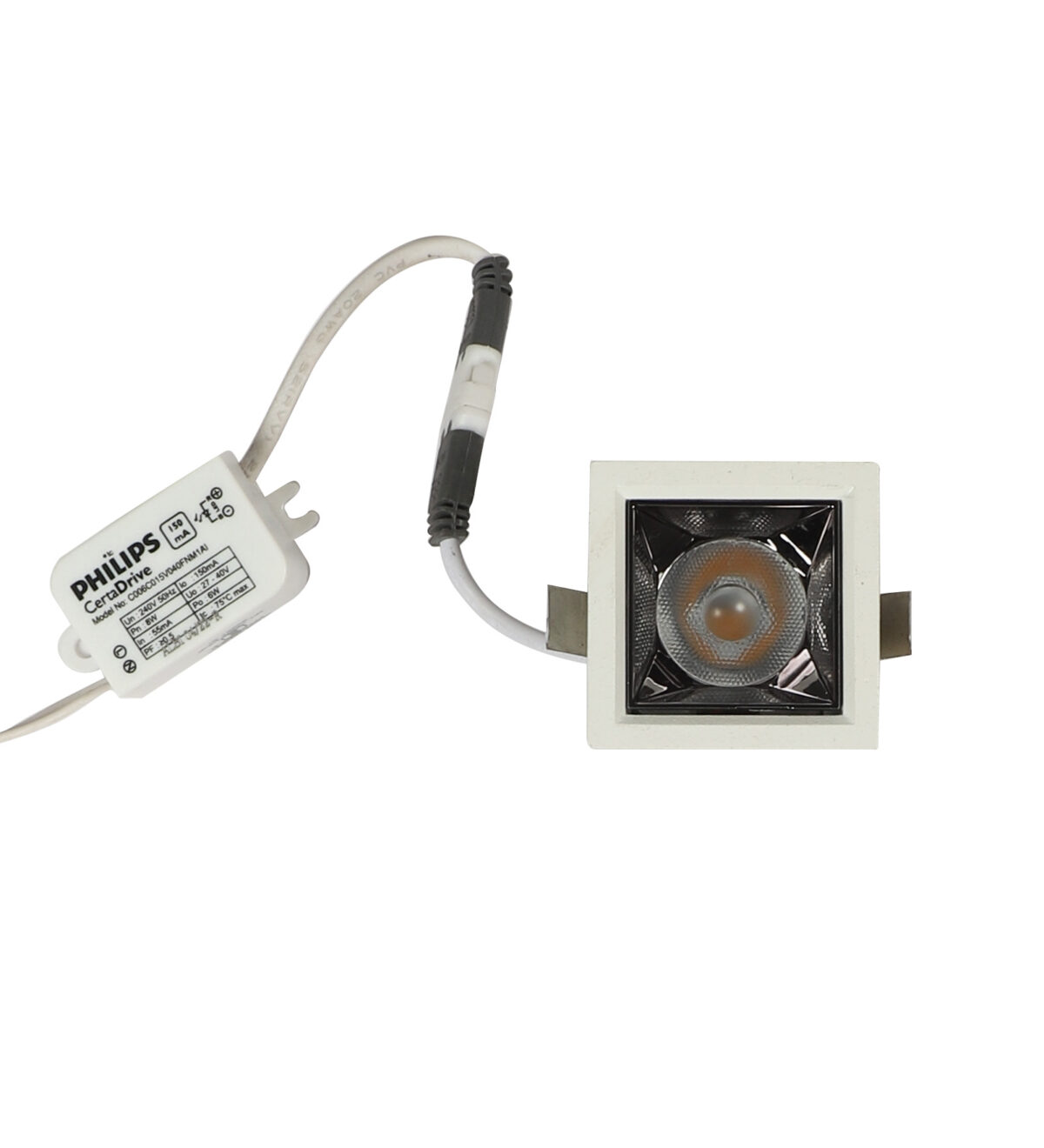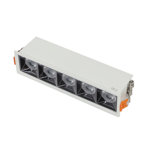 Aluminium die cast powder coated white finish 5 watt anti LED Linear down light with Bridgelux COB and Fulham or equivalents LED driver. Used in ultra modern spaces.