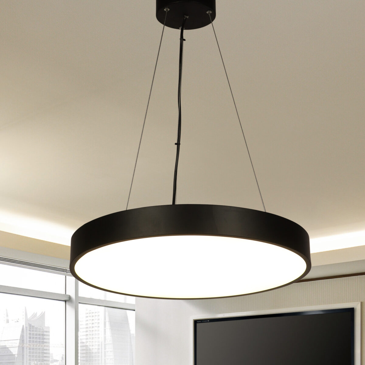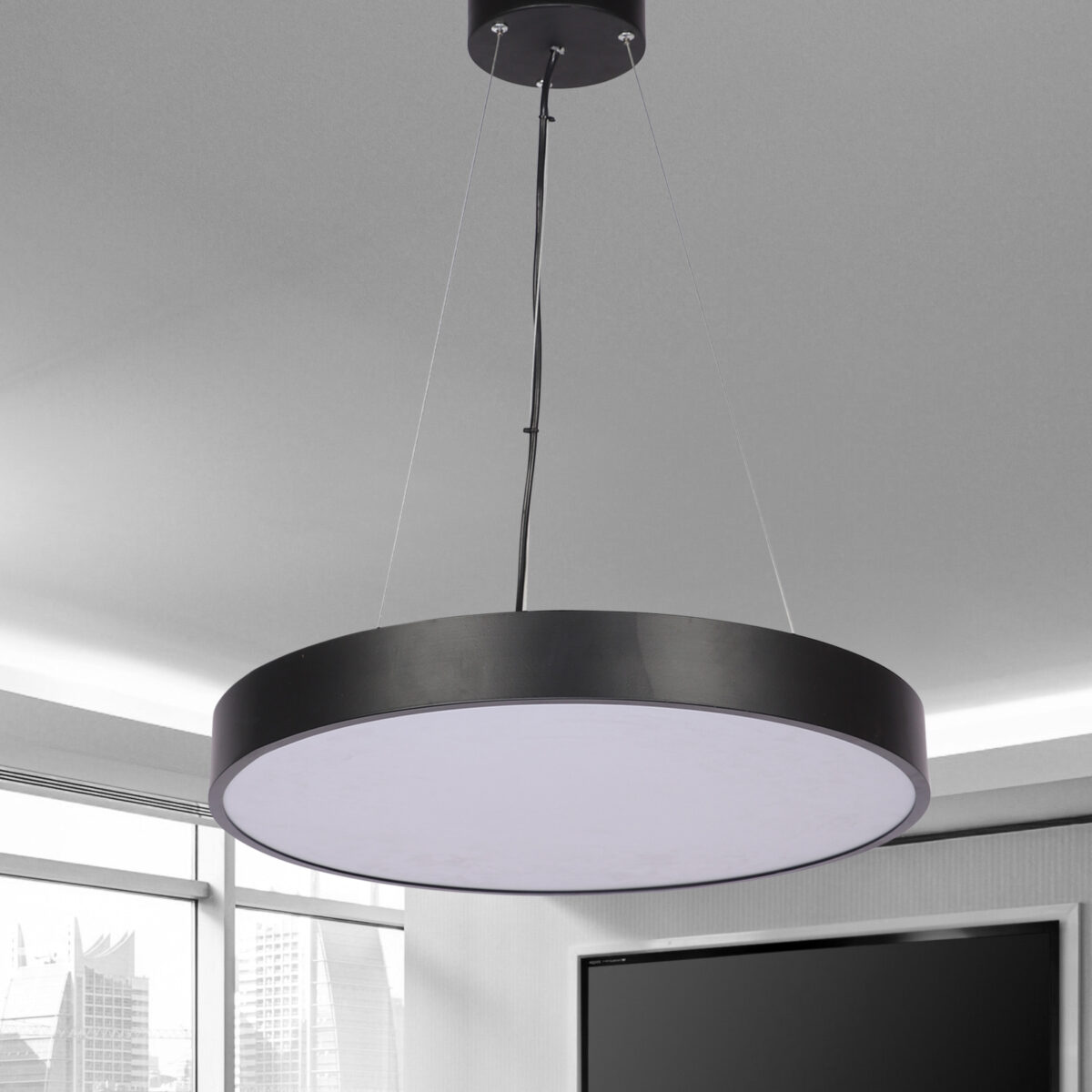 LEARC aluminium black finish 80 watt 18 inch dimmabel and tunable Moon Hanging Light with remote.