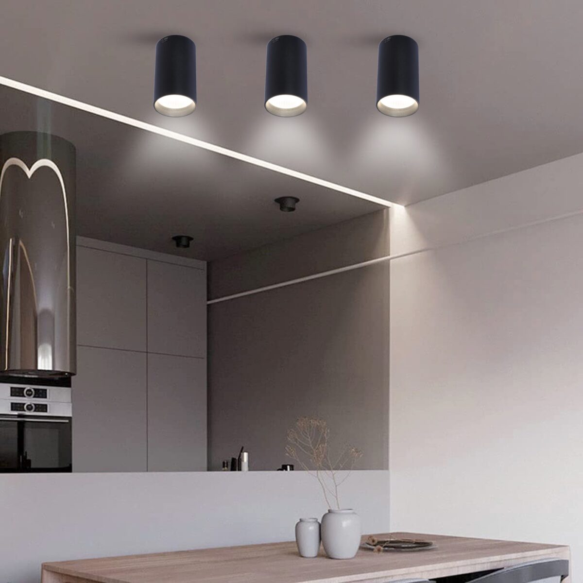 Black finish ceiling surface light for indoors and outdoors.