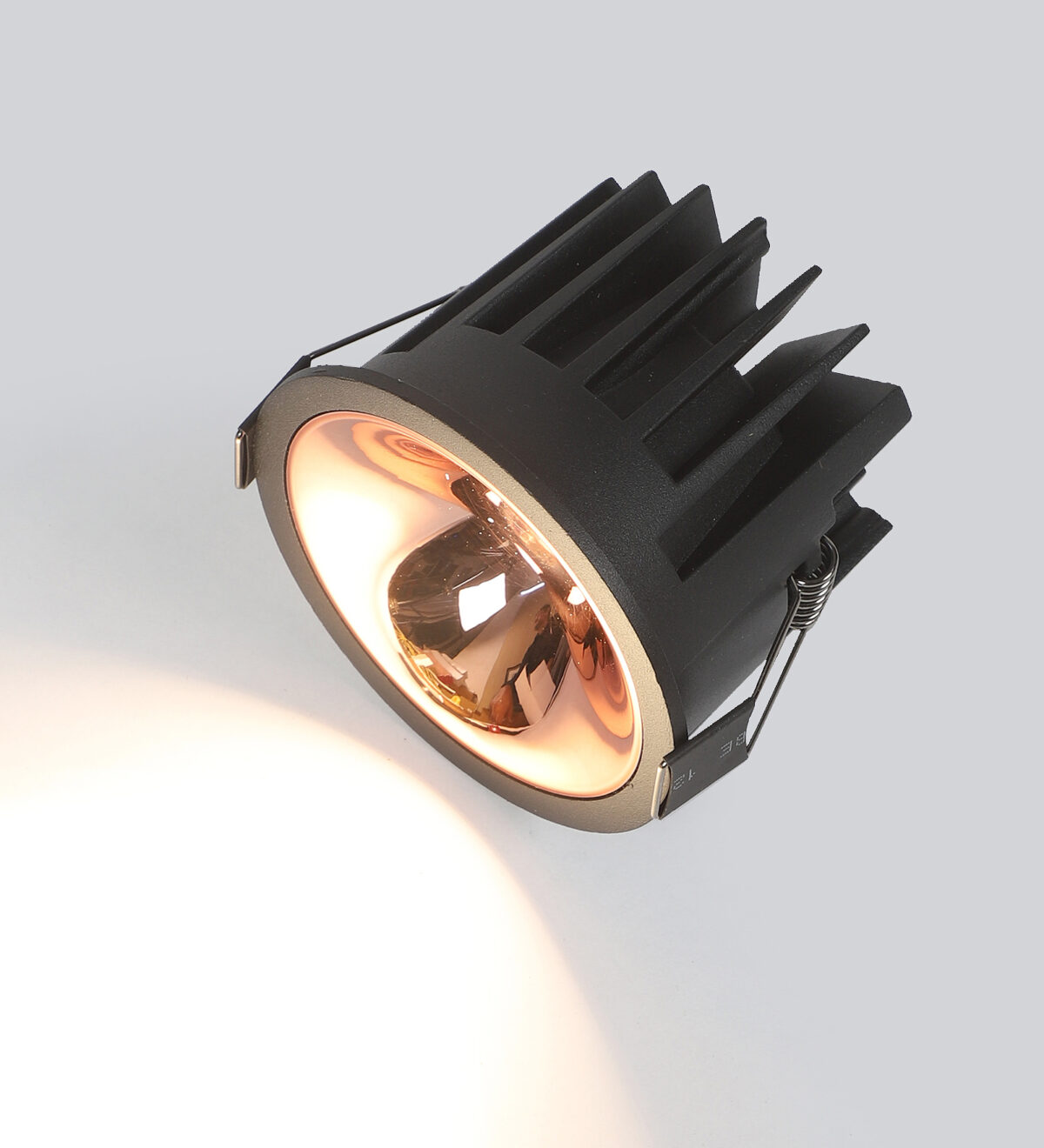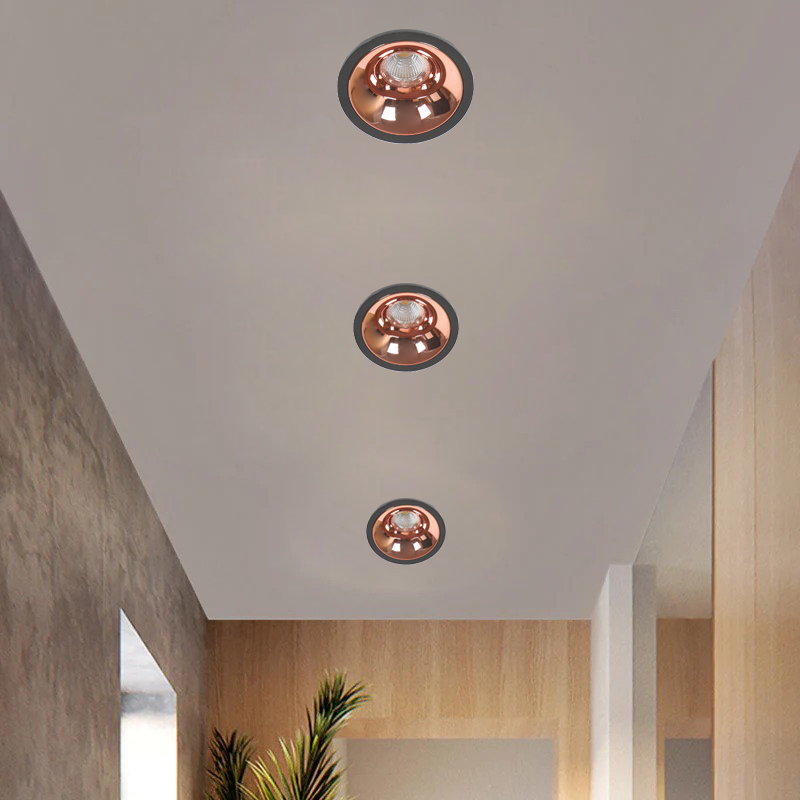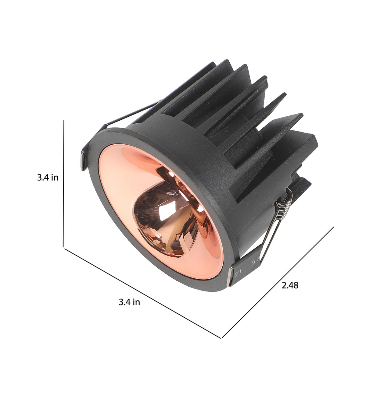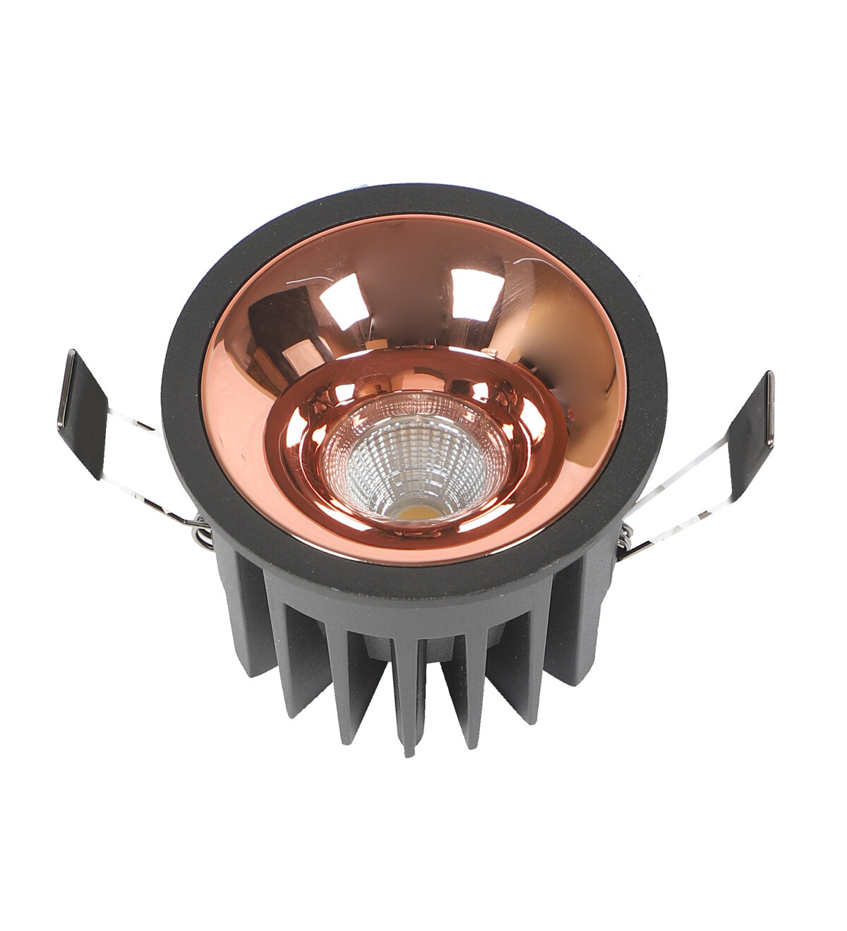 Powder coated black finish with rose gold reflector, aluminium die cast round 12W 3 in 1 LED COB concealed ceiling light with top branded Bridgelux LED and high quality LED driver. Application includes both indoor and outdoor ceilings. Scene Switch Feature : With it’s scene switch feature the downlighter can change it’s color into three modes i.e Cool Day Light, Natural White and Warm White. ON/OFF of the switch in 7 seconds leads to the change in color. Choose the color of your downlighter according to your mood.
