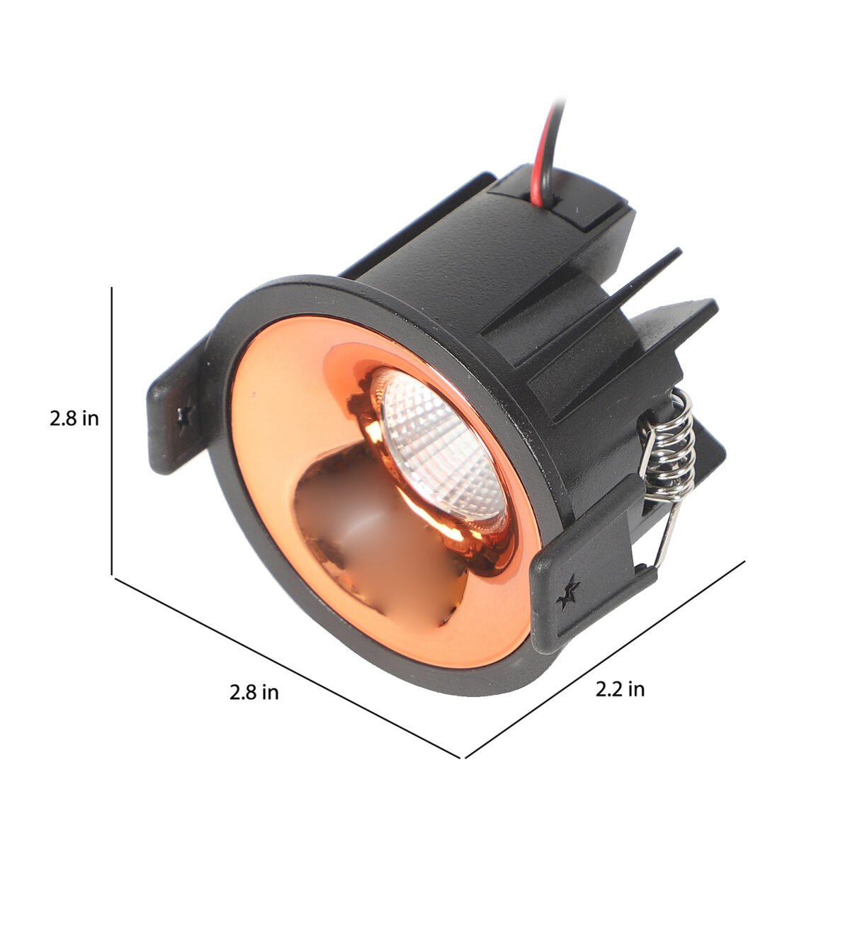 Powder coated black finish with rose gold reflector, aluminium die cast round 7W 3 in 1 LED COB concealed ceiling light with top branded Bridgelux LED and high quality LED driver. Application includes both indoor and outdoor ceilings. Scene Switch Feature : With it’s scene switch feature the downlighter can change it’s color into three modes i.e Cool Day Light, Natural White and Warm White. ON/OFF of the switch in 7 seconds leads to the change in color. Choose the color of your downlighter according to your mood.