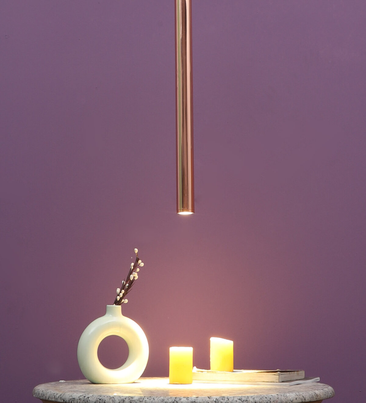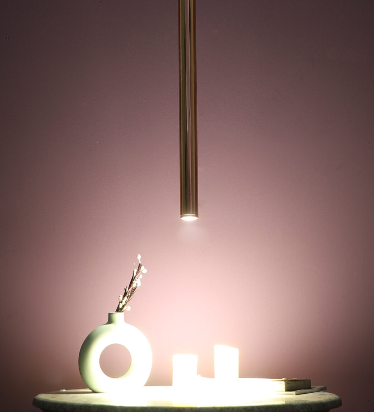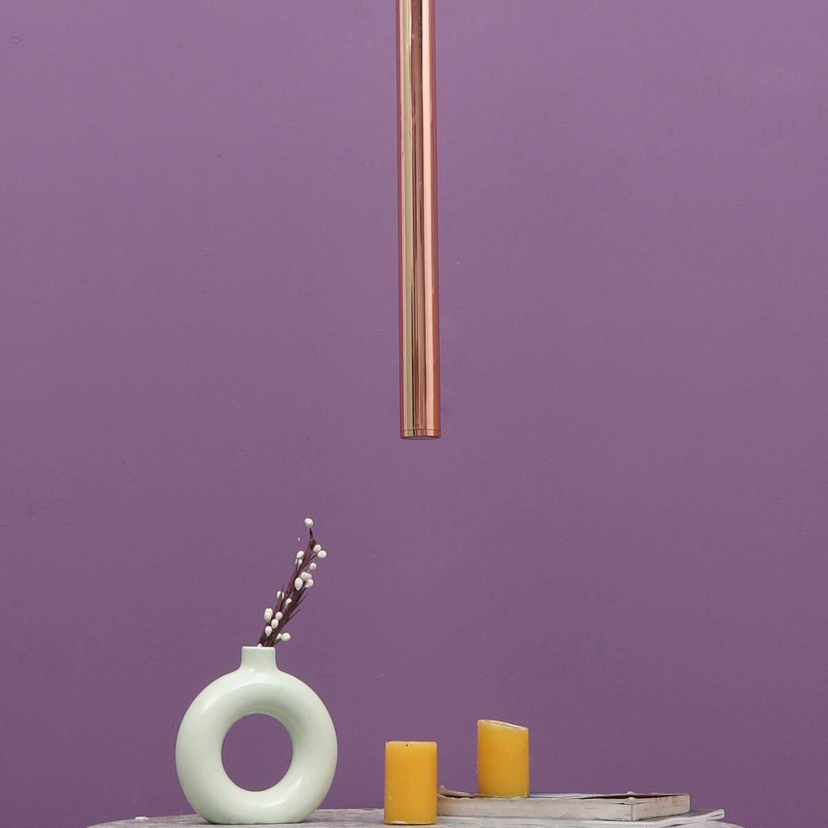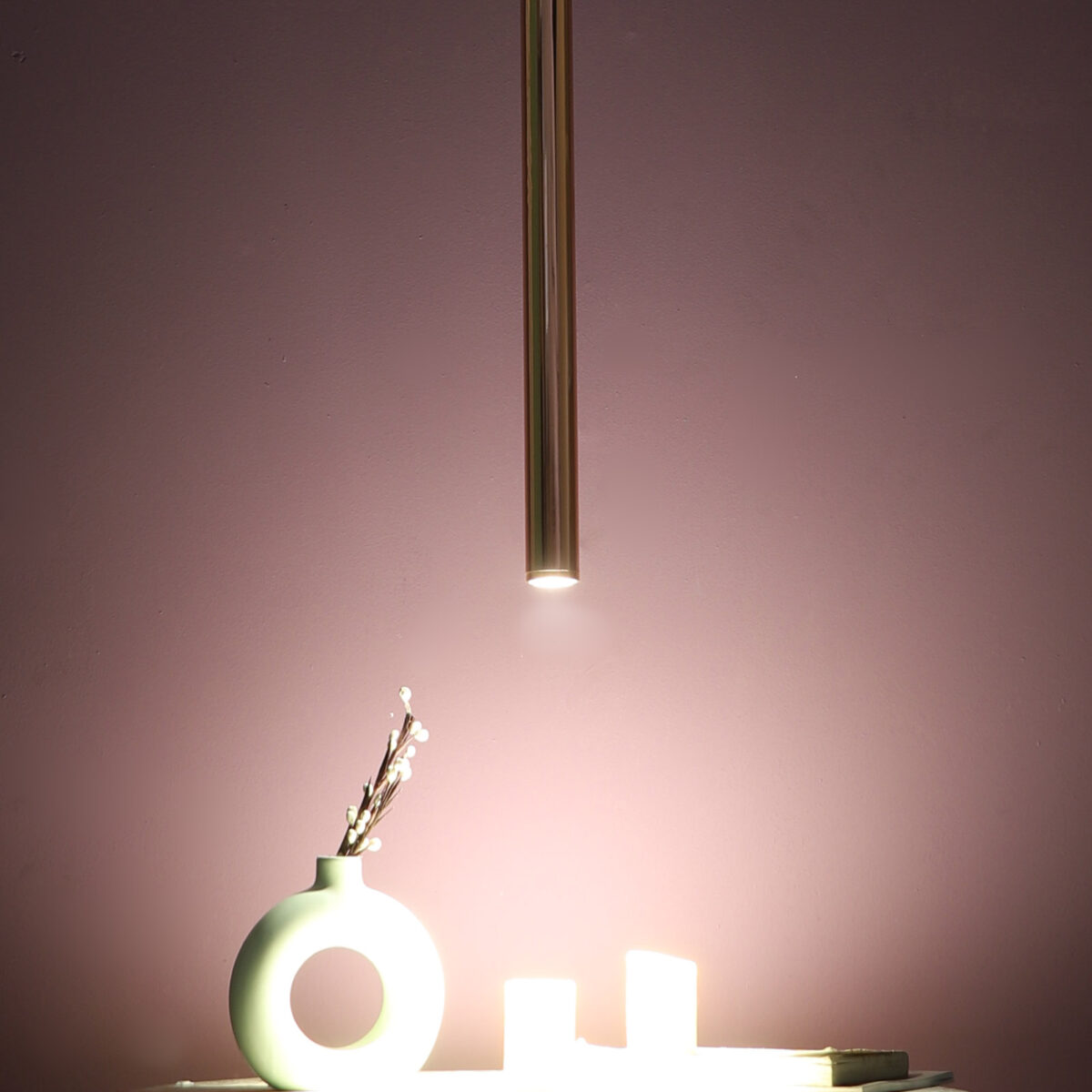 Copper sleek, modern, 12 watt LED hanging light having top branded LED and driver warm white (yellow) light output The suspension can be adjusted at time of installation to the desired height. Can be made available in a cluster of multiple quantities with round, square or rectangular base as per requirement . Application includes both residential and commercial premises wherever it matches with your interiors. Can be customized as per requirement in terms of finish, wattage, height, diameter.