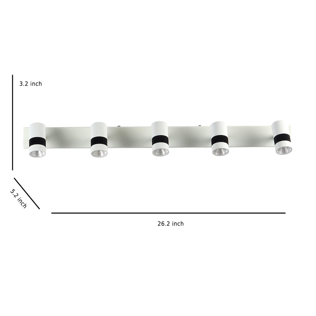 Be the first to review “LEARC aluminium die cast / mild steel powder coated white finish five light spot light bar 26 inch with 3 watt adjustible spots ML382-5”