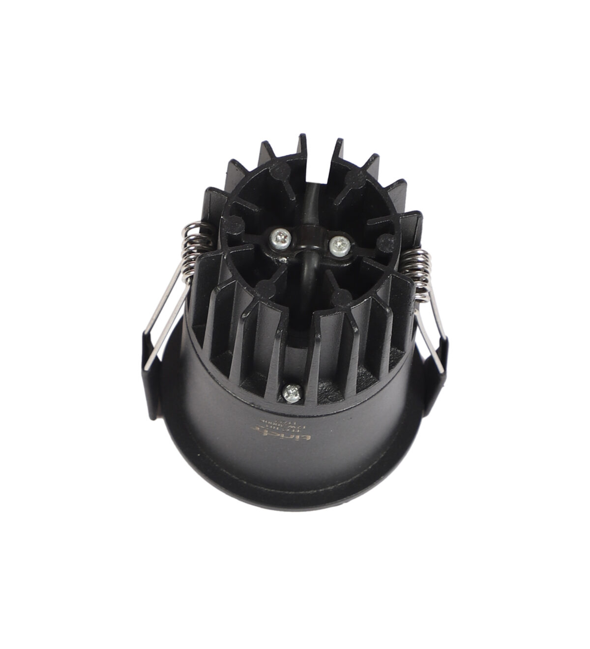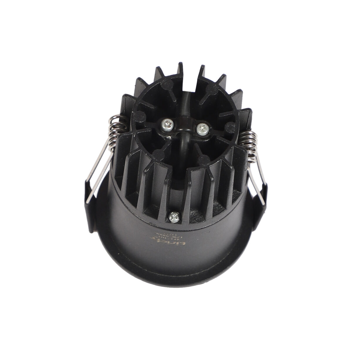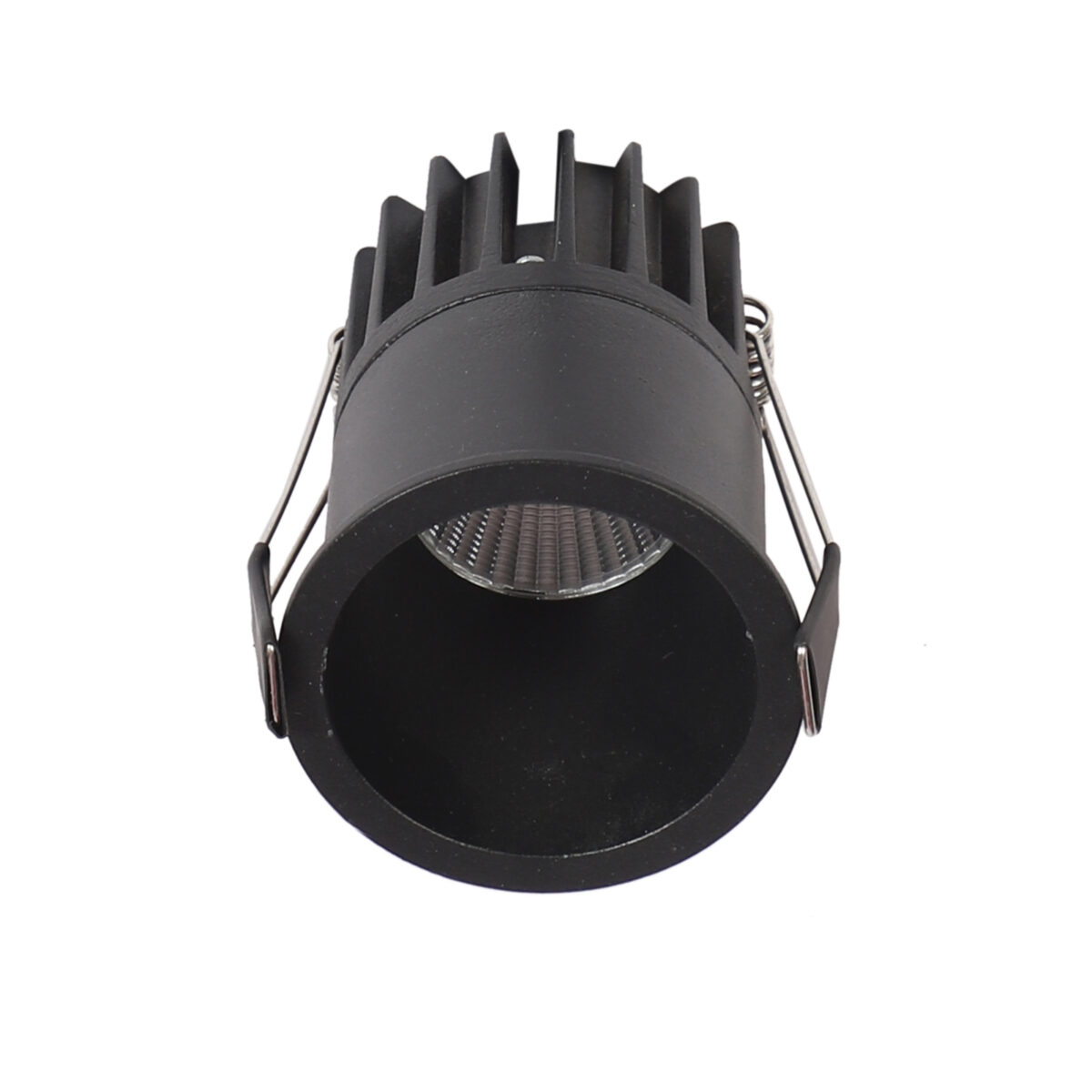 Recessed type 12 watt LED down light in black finish.