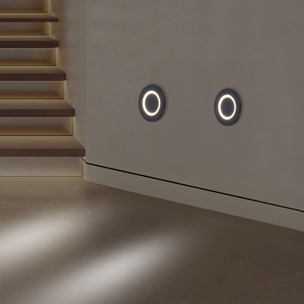 LEARC aluminium die cast premium black finish 3 watt round indoor LED foot light warm white MEM175
