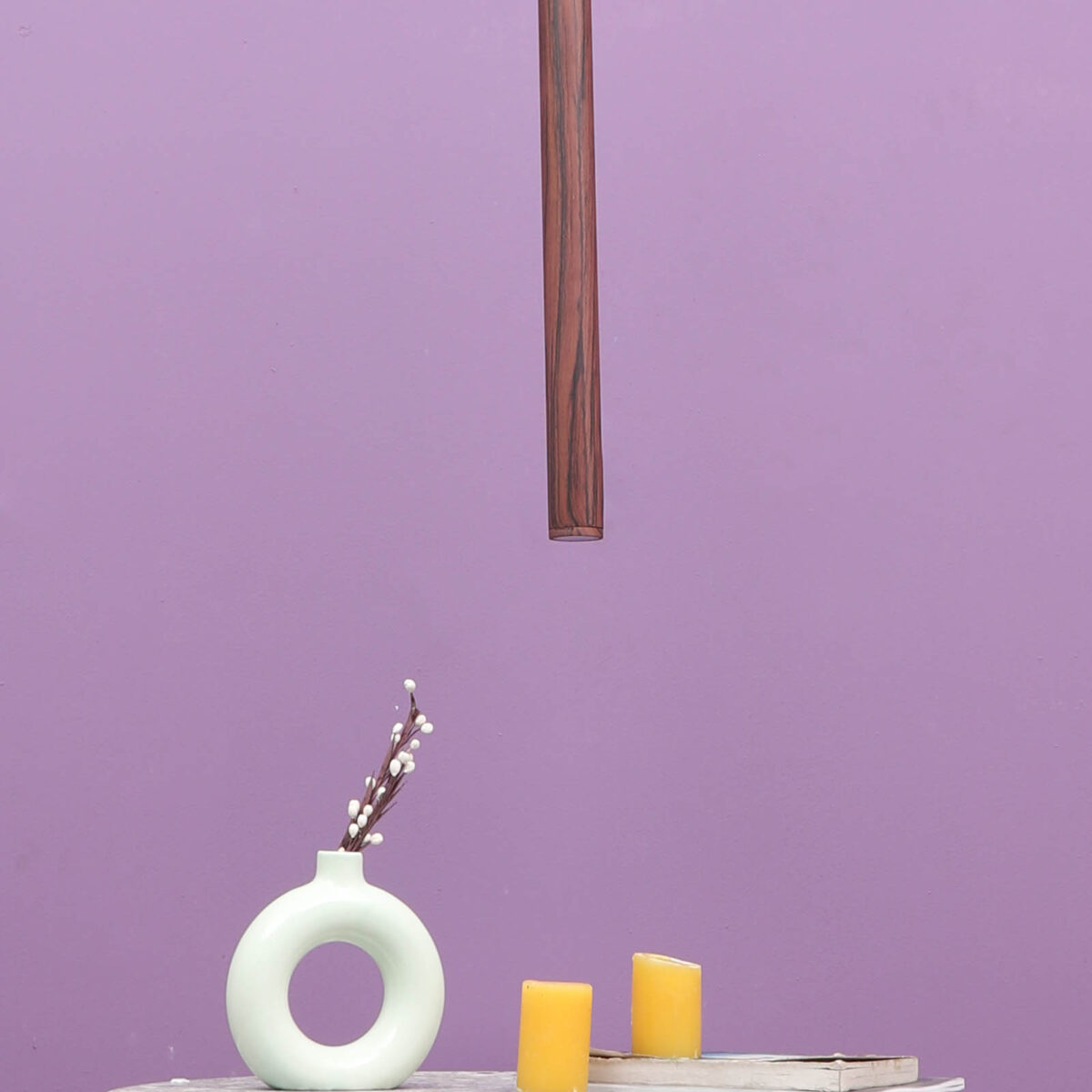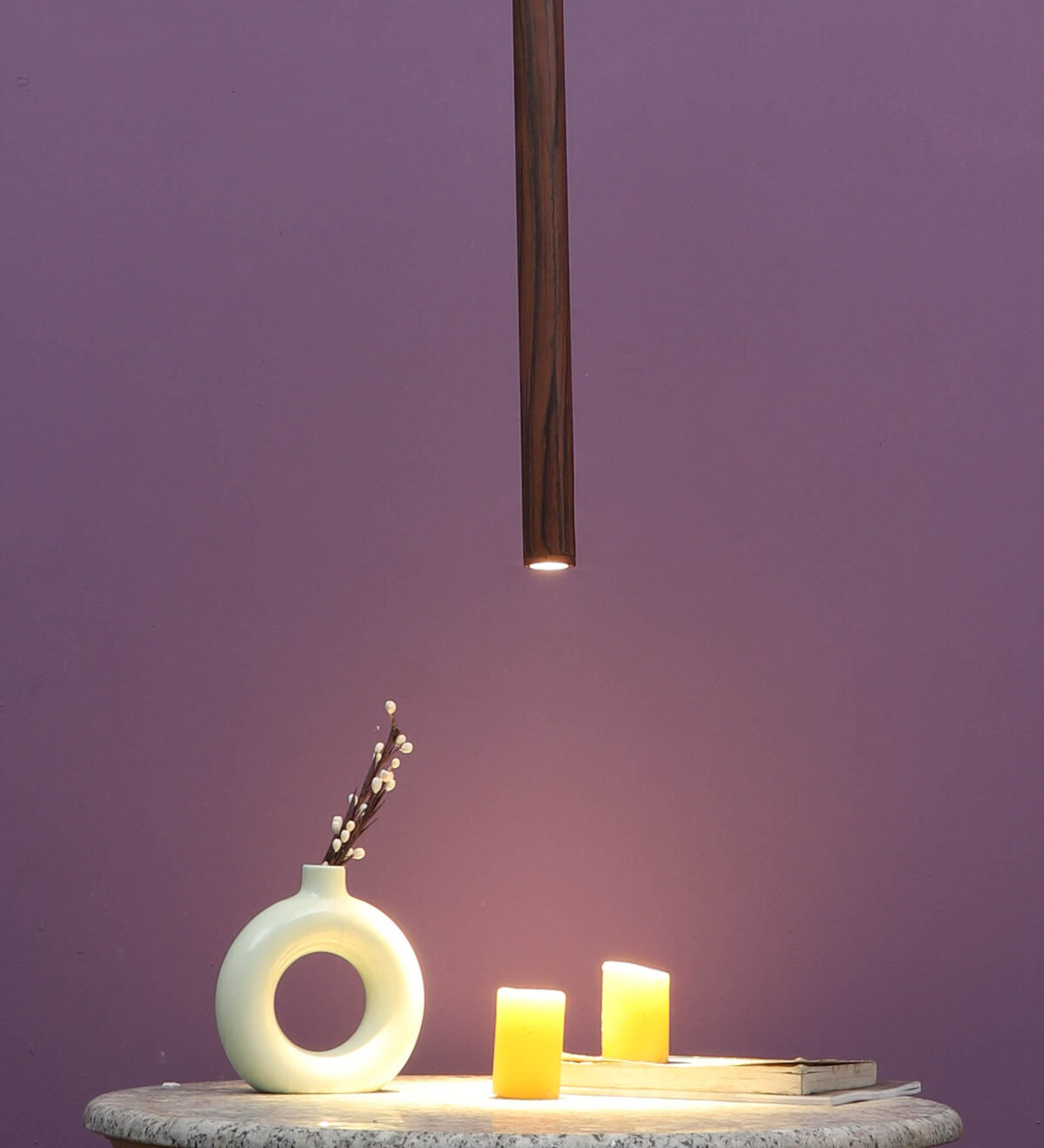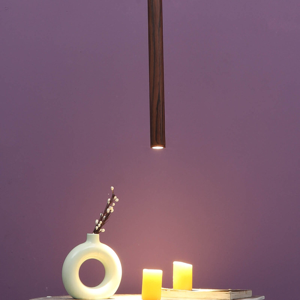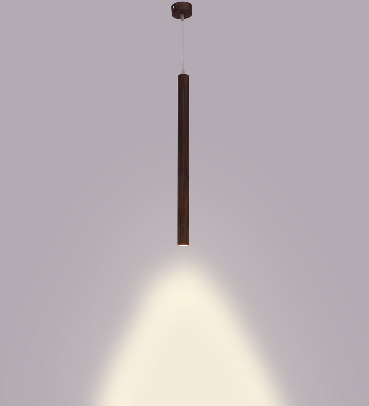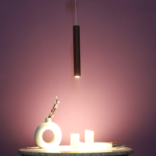 Brown premium wood finish, sleek, modern, 12 watt LED hanging light having top branded LED and driver warm white (yellow) light output The suspension can be adjusted at time of installation to the desired height. Can be made available in a cluster of multiple quantities with round, square or rectangular base as per requirement . Application includes both residential and commercial premises wherever it matches with your interiors. Can be customized as per requirement in terms of finish, wattage, height, diameter.