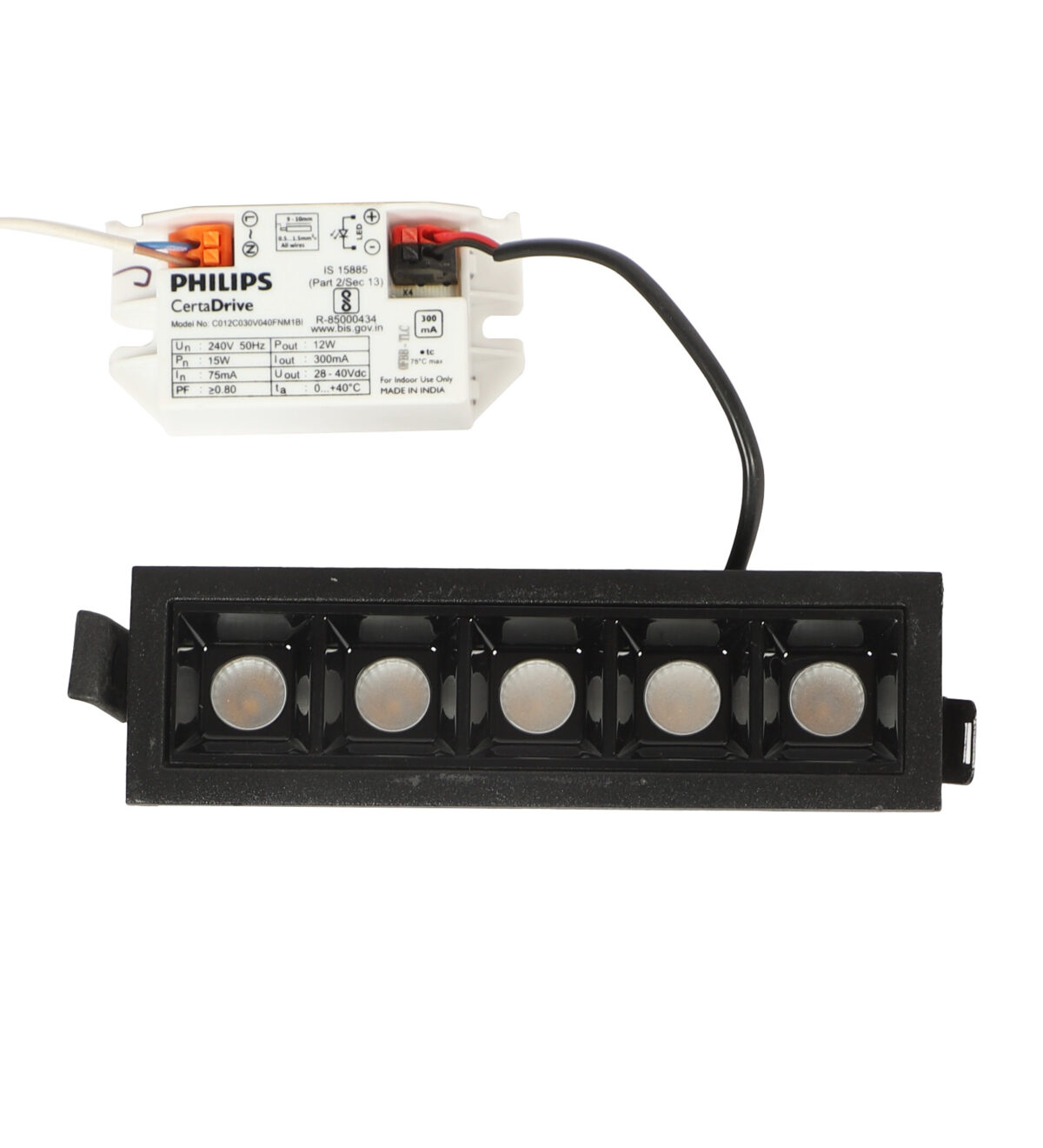 LEARC aluminium powder coated black finish 5 x 2.4 watt LED Linear down light with Bridgelux COB and Philips LED driver TR1746
