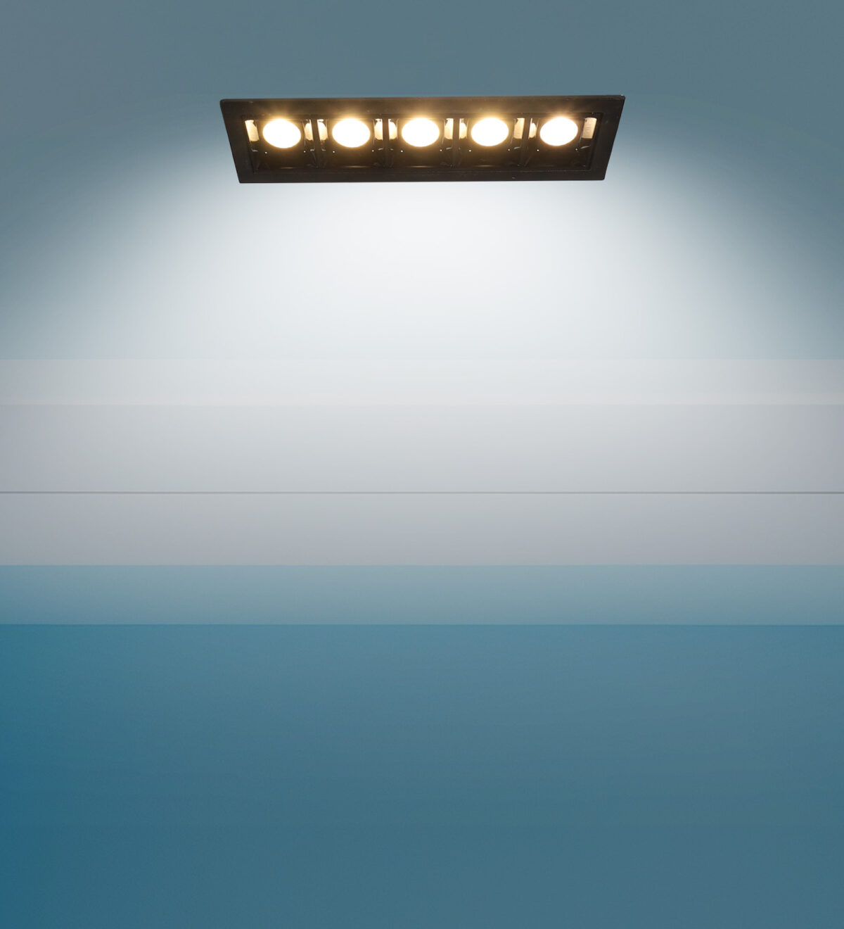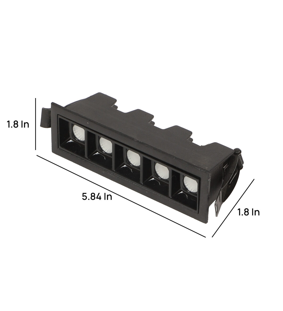 Aluminium die cast powder coated black finish 5 x 2 watt LED Linear down light with Bridgelux COB and Philips LED driver. Used in ultra modern spaces.