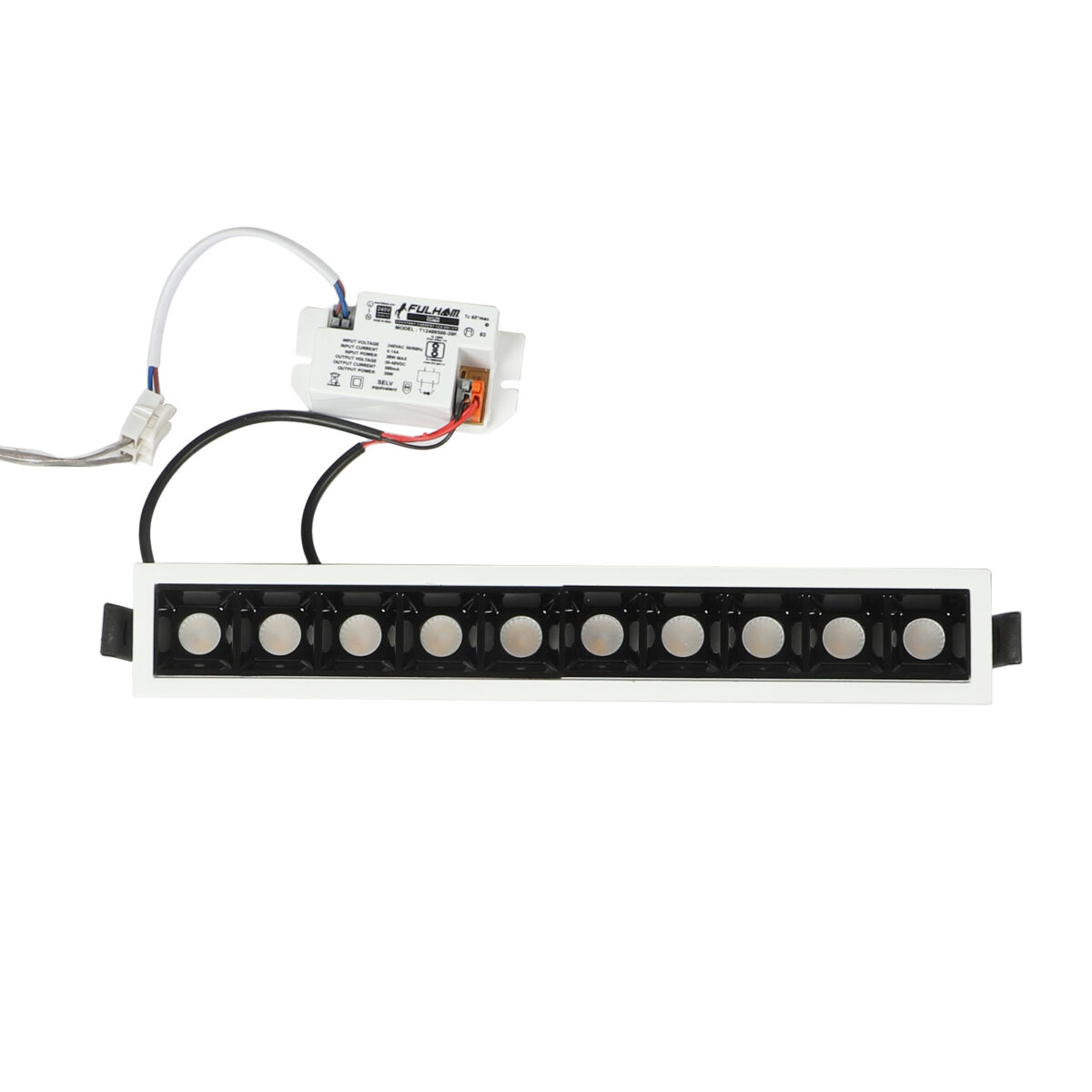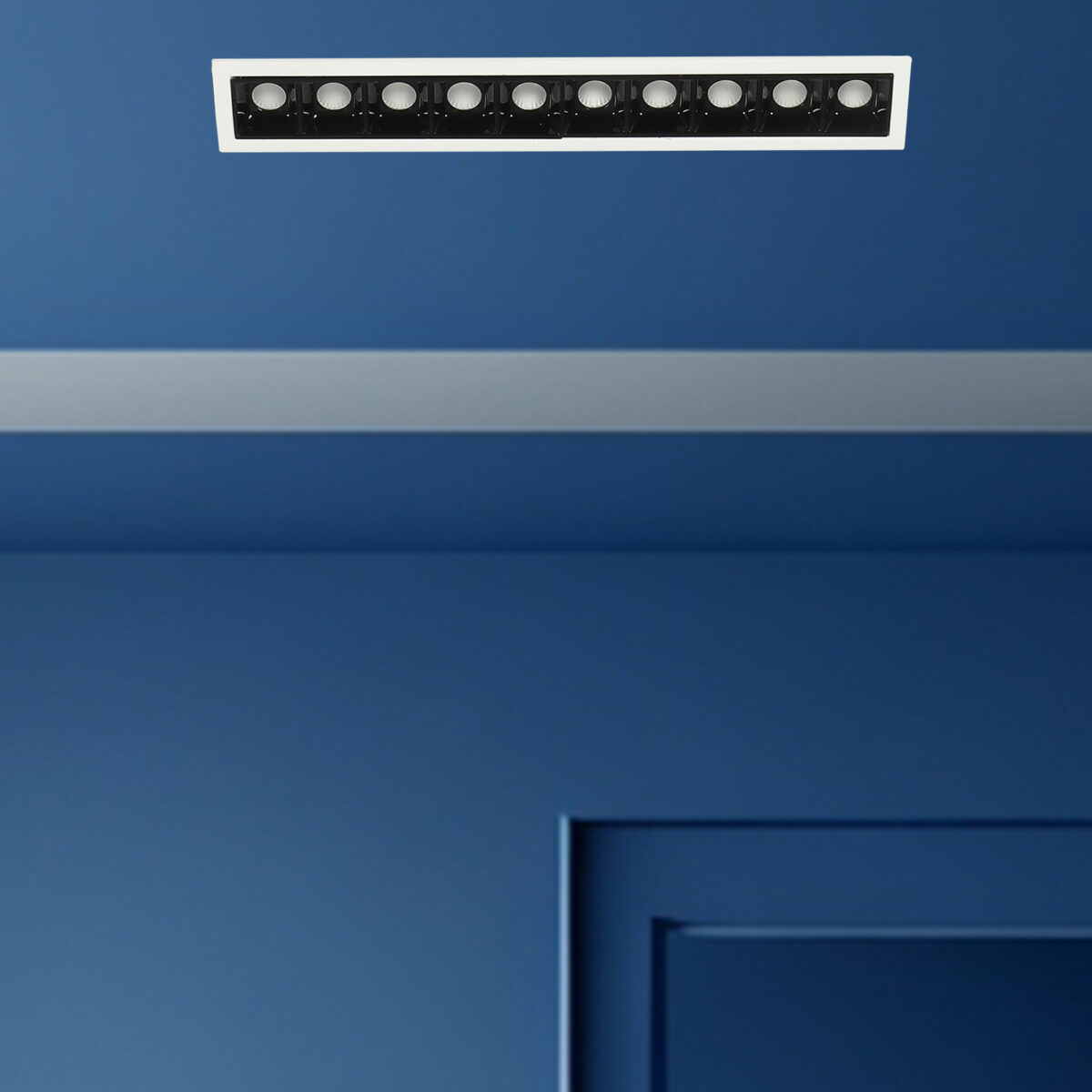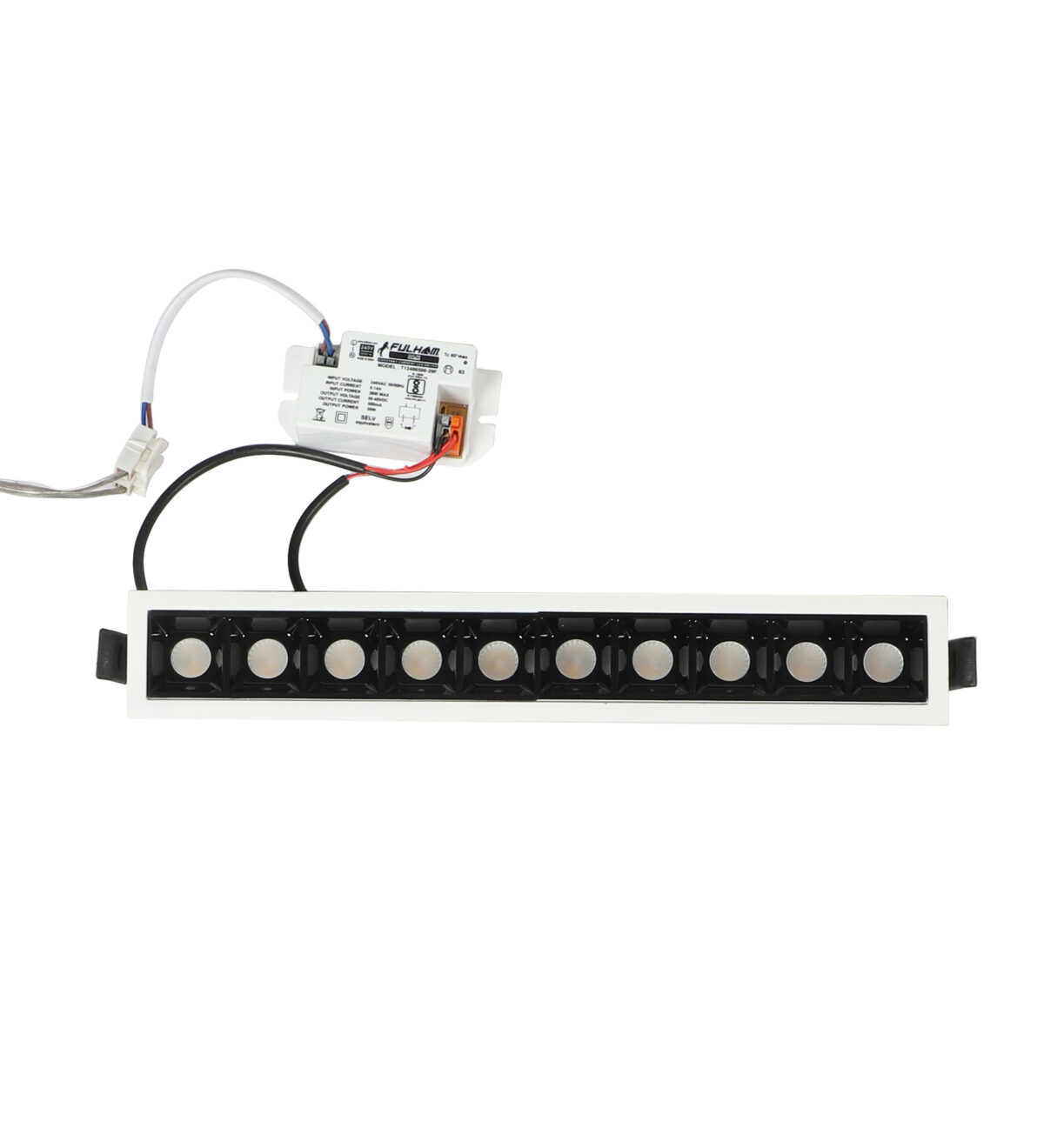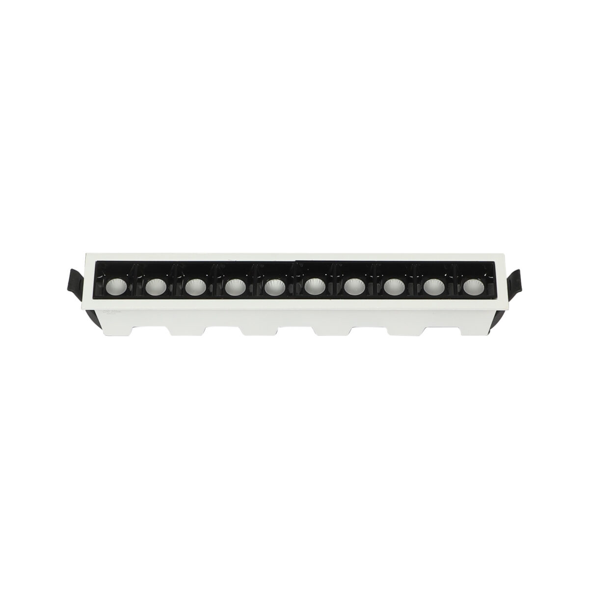 Aluminium die cast powder coated white finish 10 x 2 watt LED Linear down light with Bridgelux COB and Philips LED driver. Used in ultra modern spaces.