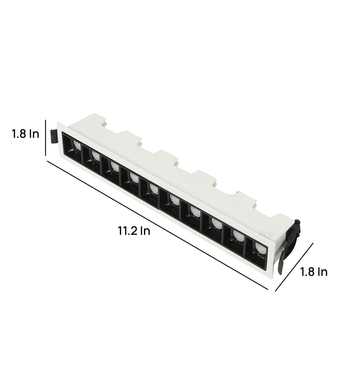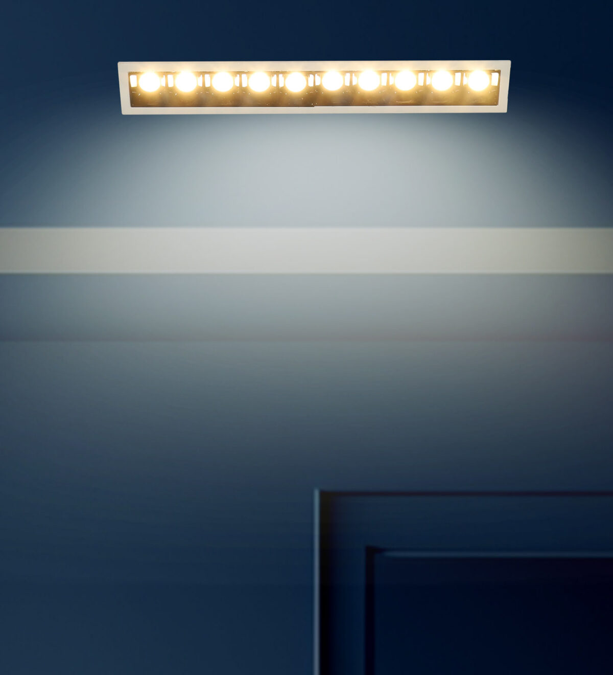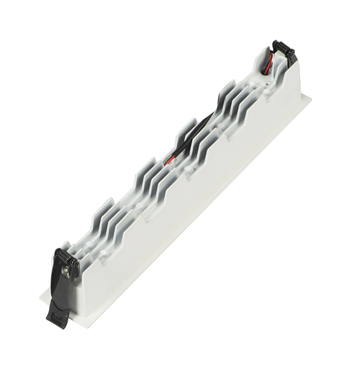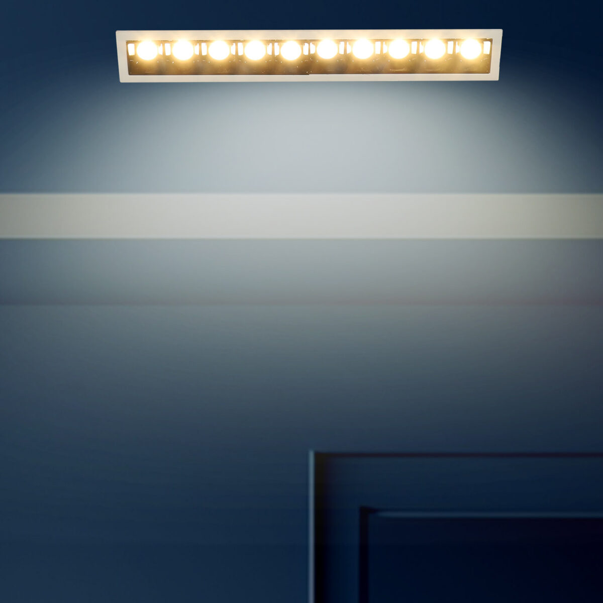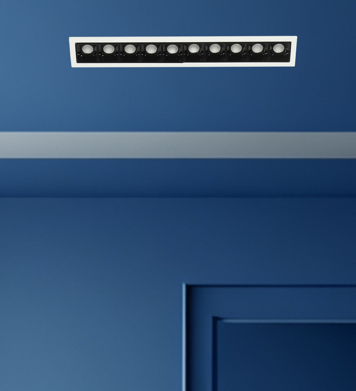 Aluminium die cast powder coated white finish 10 x 2 watt LED Linear down light with Bridgelux COB and Philips LED driver. Used in ultra modern spaces.