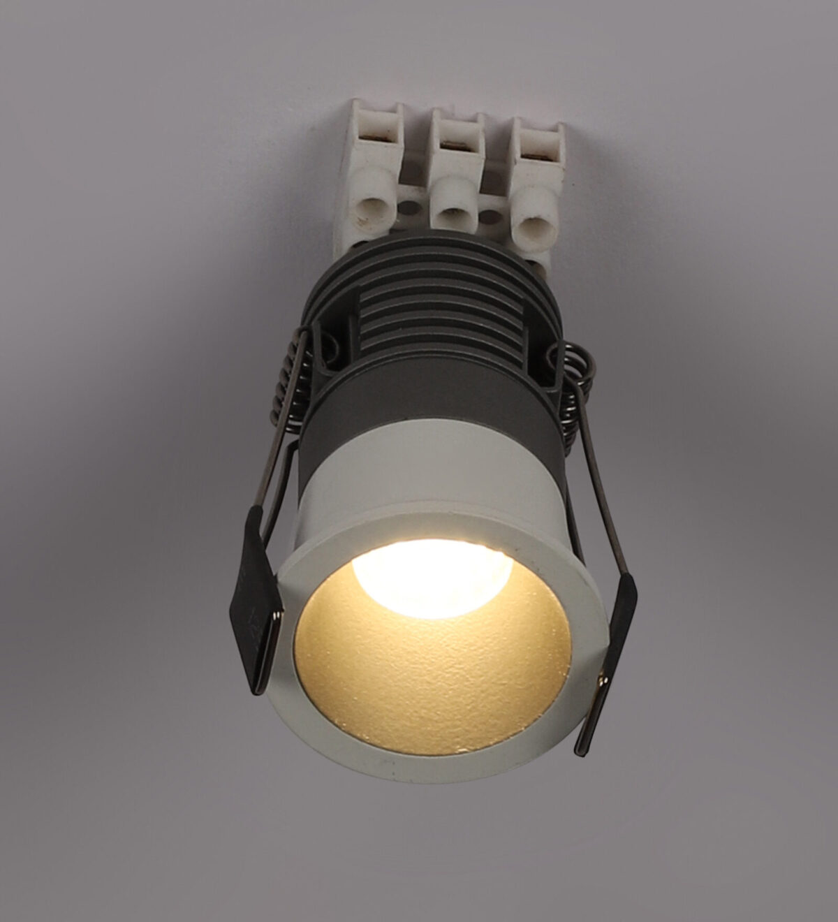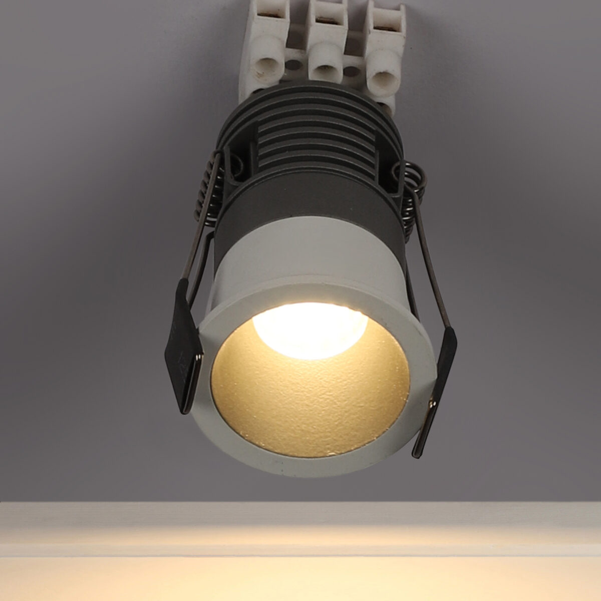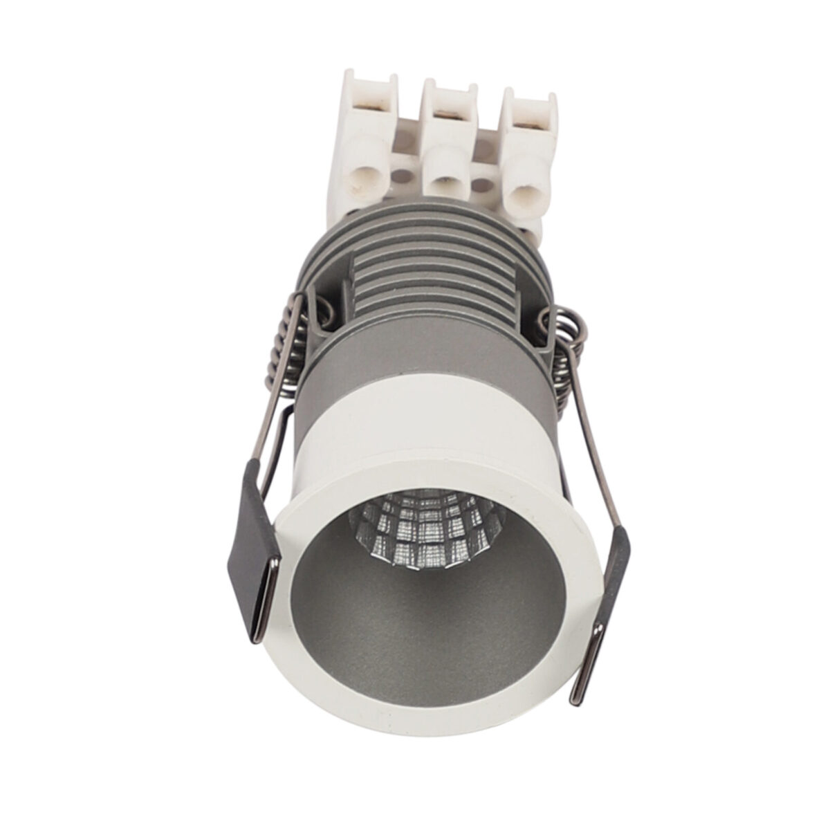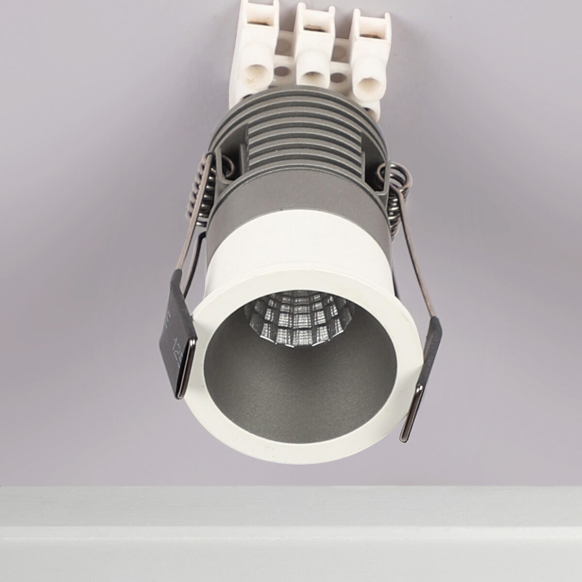 Premium powder coated heavy duty white finish, aluminium die cast LED COB round 7W LED COB concealed ceiling light with high quality LED and driver with high success rate having less than 0.5% replacement. Application includes both indoor and outdoor ceilings. Available in 3000K, 4000K and 6000K ie warm white, nuetral white and white light output. Also available in 12W with code B1113.