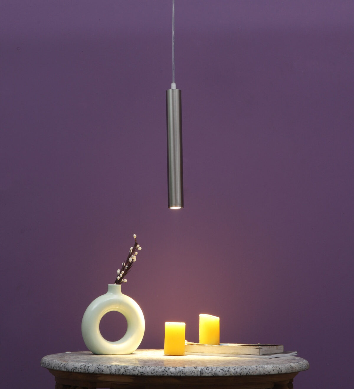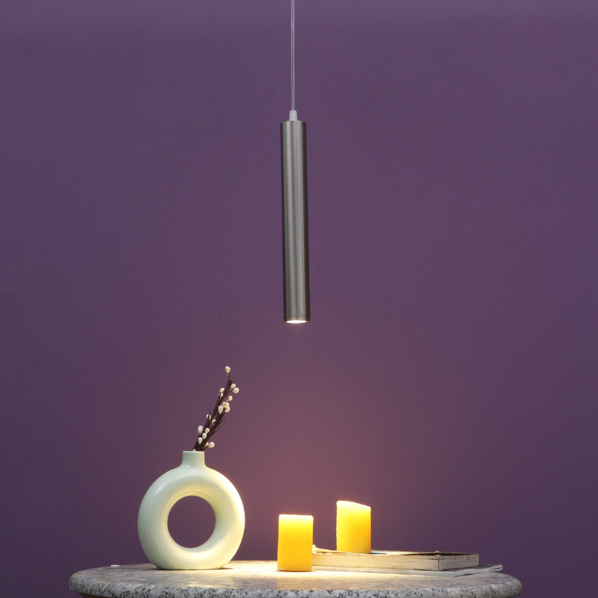 Satin Nickel, 12 watt LED hanging light having top branded LED and driver warm white (yellow) light output The suspension can be adjusted at time of installation to the desired height. Can be made available in a cluster of multiple quantities with round, square or rectangular base as per requirement . Application includes both residential and commercial premises wherever it matches with your interiors. Can be customized as per requirement in terms of finish, wattage, height, diameter.