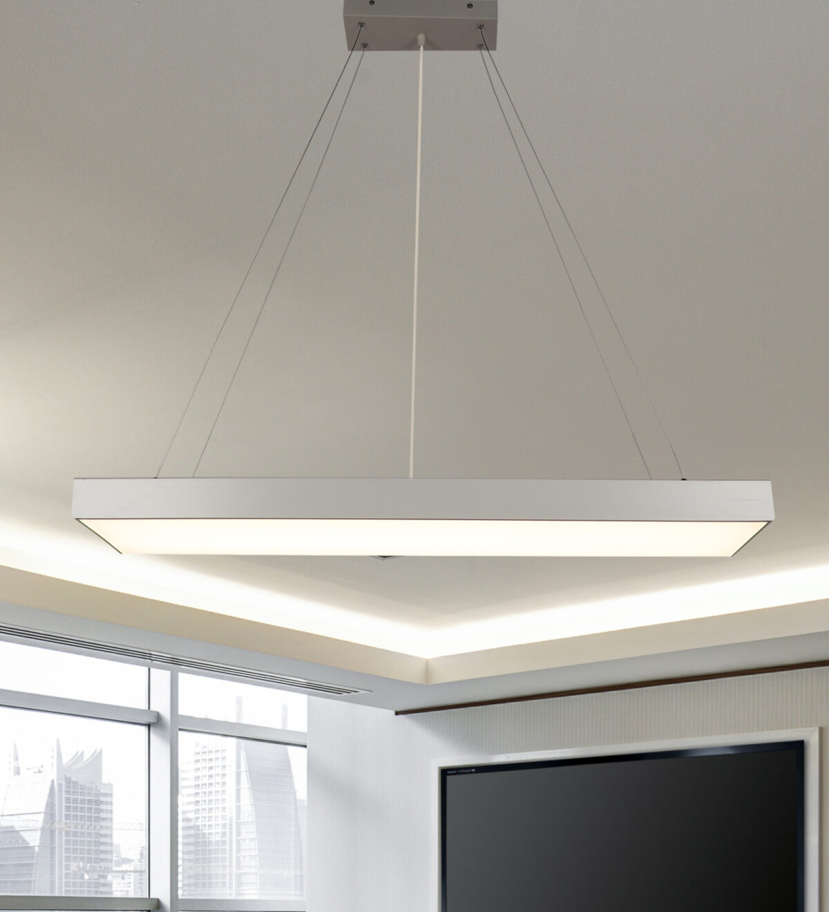 LEARC aluminium white 10 inch X 3 feet 40 watt colour changing 3 in 1 LED rectangular Hanging Light HL8057-3C