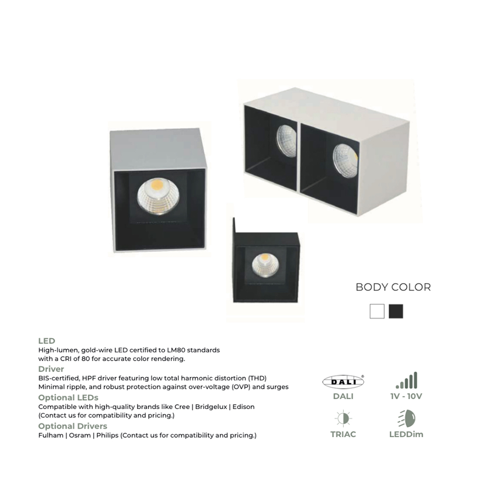 LEARC aluminium white black finish 12 watt surface light EP7124