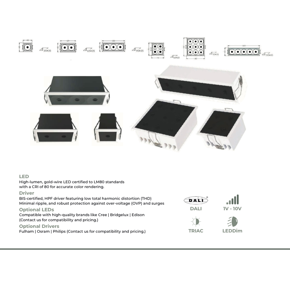 LEARC aluminium white black finish 4X3 watt recessed linear light with top branded LED and Driver .