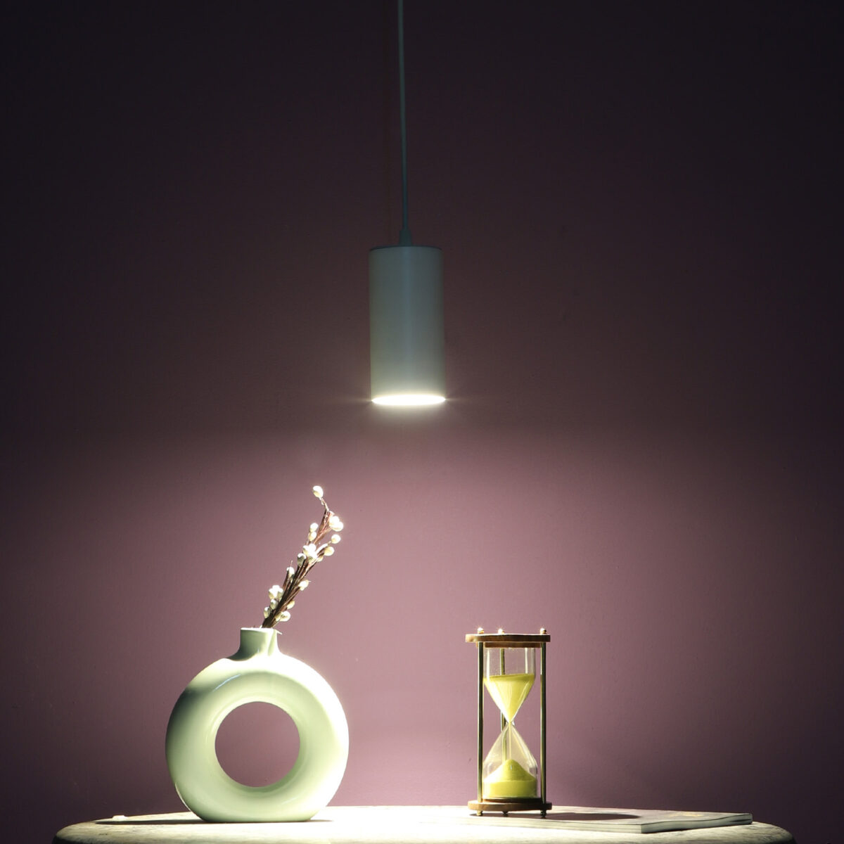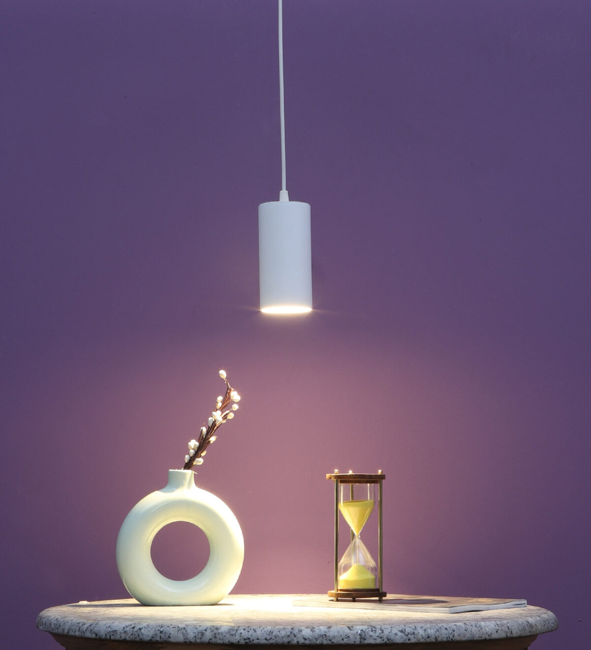 White modern, round, 20 watt single LED hanging light having high quality LED and driver. The suspension can be adjusted at time of installation to the desired height. Application includes both residential and commercial premises wherever it matches with your interiors. Can be customised as per requirement in terms of body colour, colour of light output and wattage. Can be made into a cluster of multiple quantities as per requirement.
