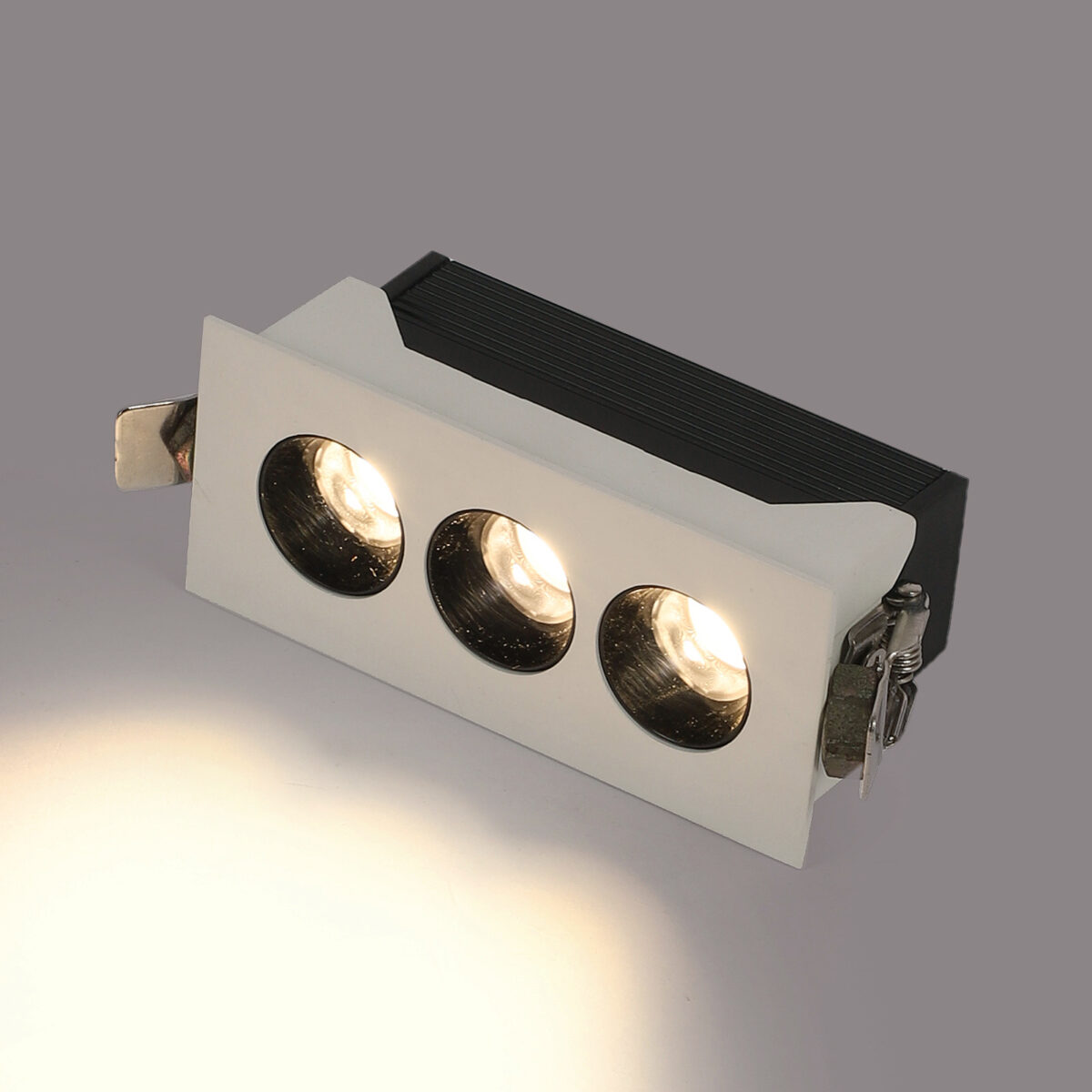 LEARC aluminium white finish 3 x 2 watt LED Linear down light with Bridgelux COB and Fulham LED driver.