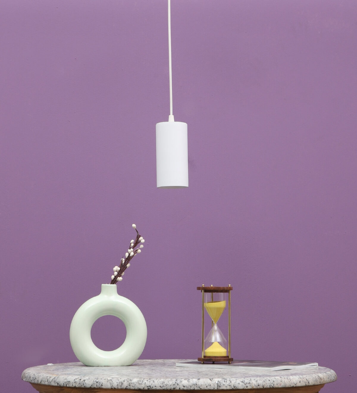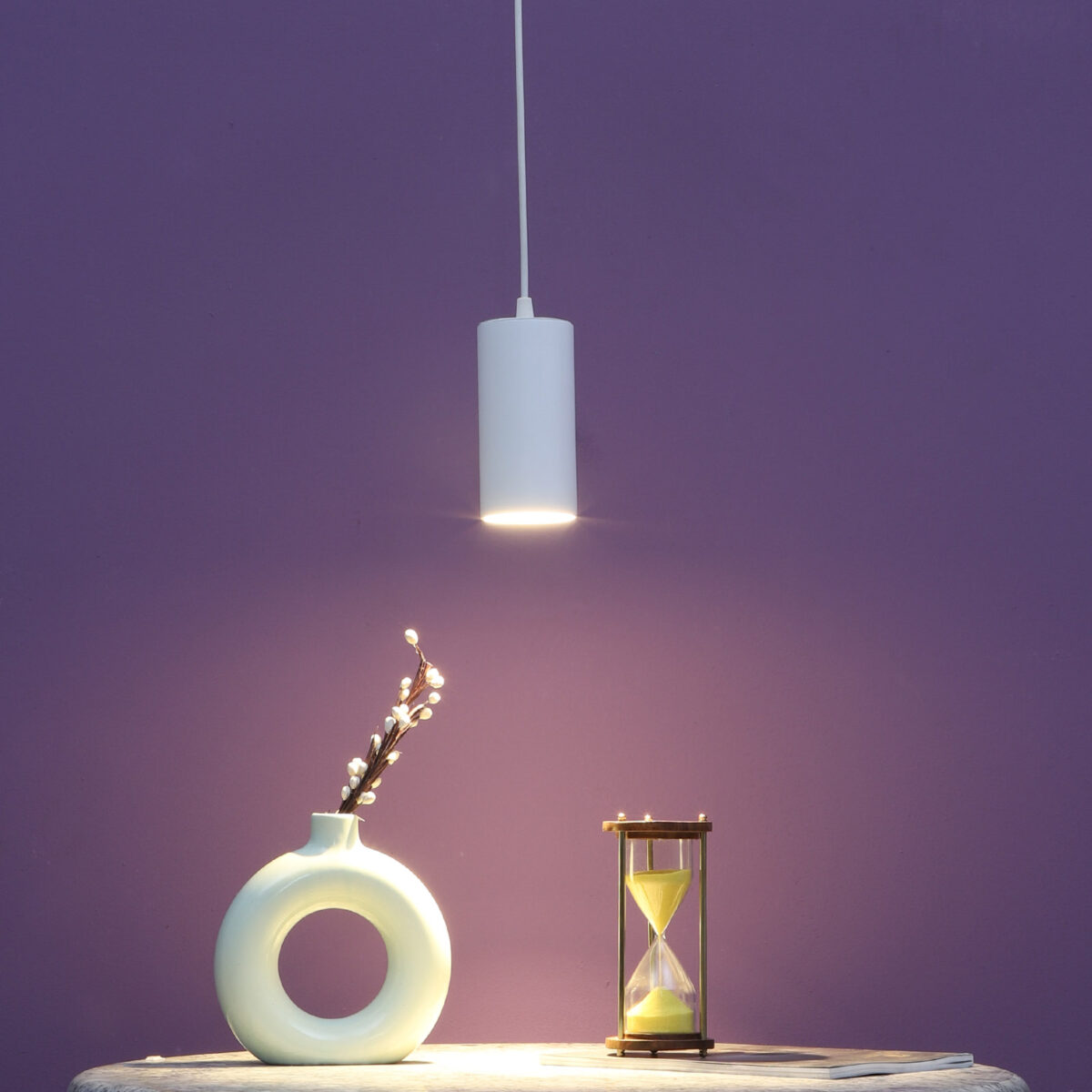 White modern, round, 30 watt single LED hanging light having high quality LED and driver. The suspension can be adjusted at time of installation to the desired height. Application includes both residential and commercial premises wherever it matches with your interiors. Can be customised as per requirement in terms of body colour, colour of light output and wattage. Can be made into a cluster of multiple quantities as per requirement.