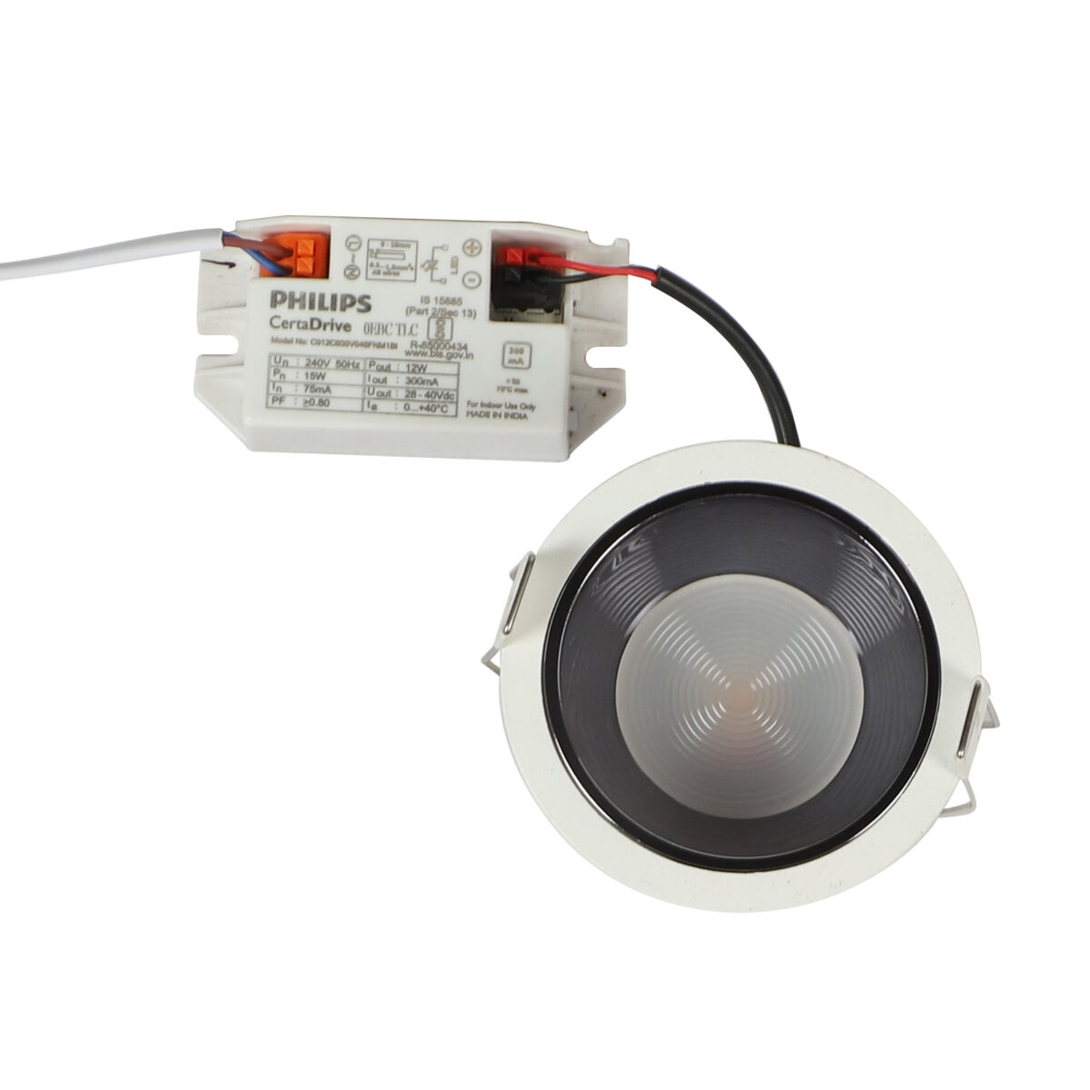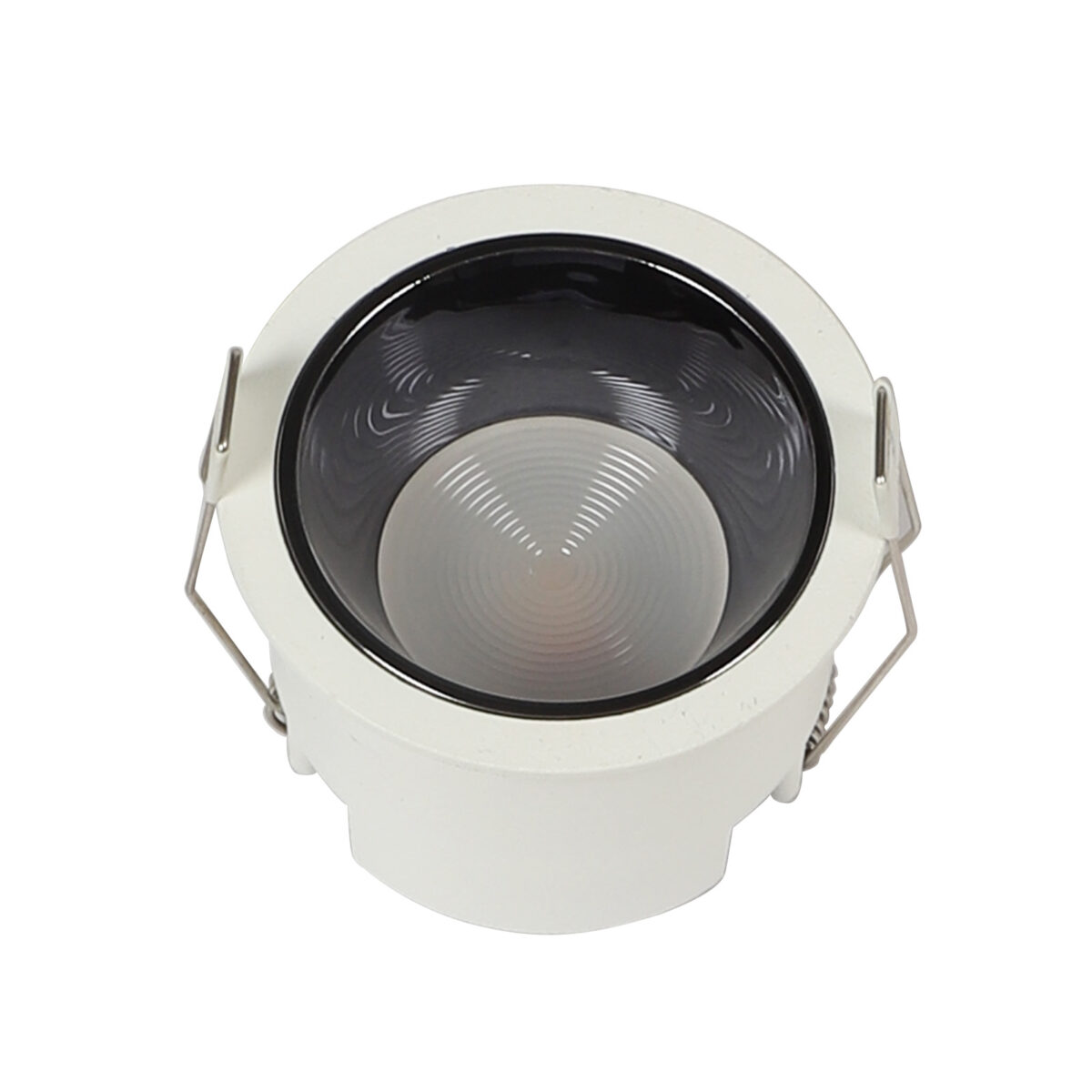 Powder coated white finish with black nickel reflector, aluminium die cast round 12W LED COB concealed ceiling light with top branded Bridgelux LED and Philips or equivalent LED driver. Application includes both indoor and outdoor ceilings. Available in 3000K, 4000K and 6000K ie warm white, nuetral white and white light output.