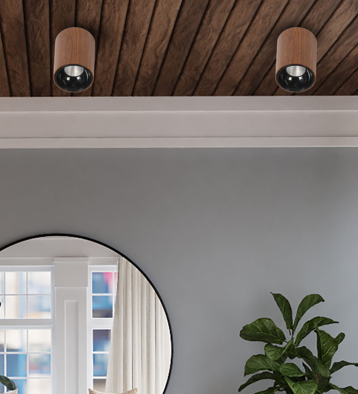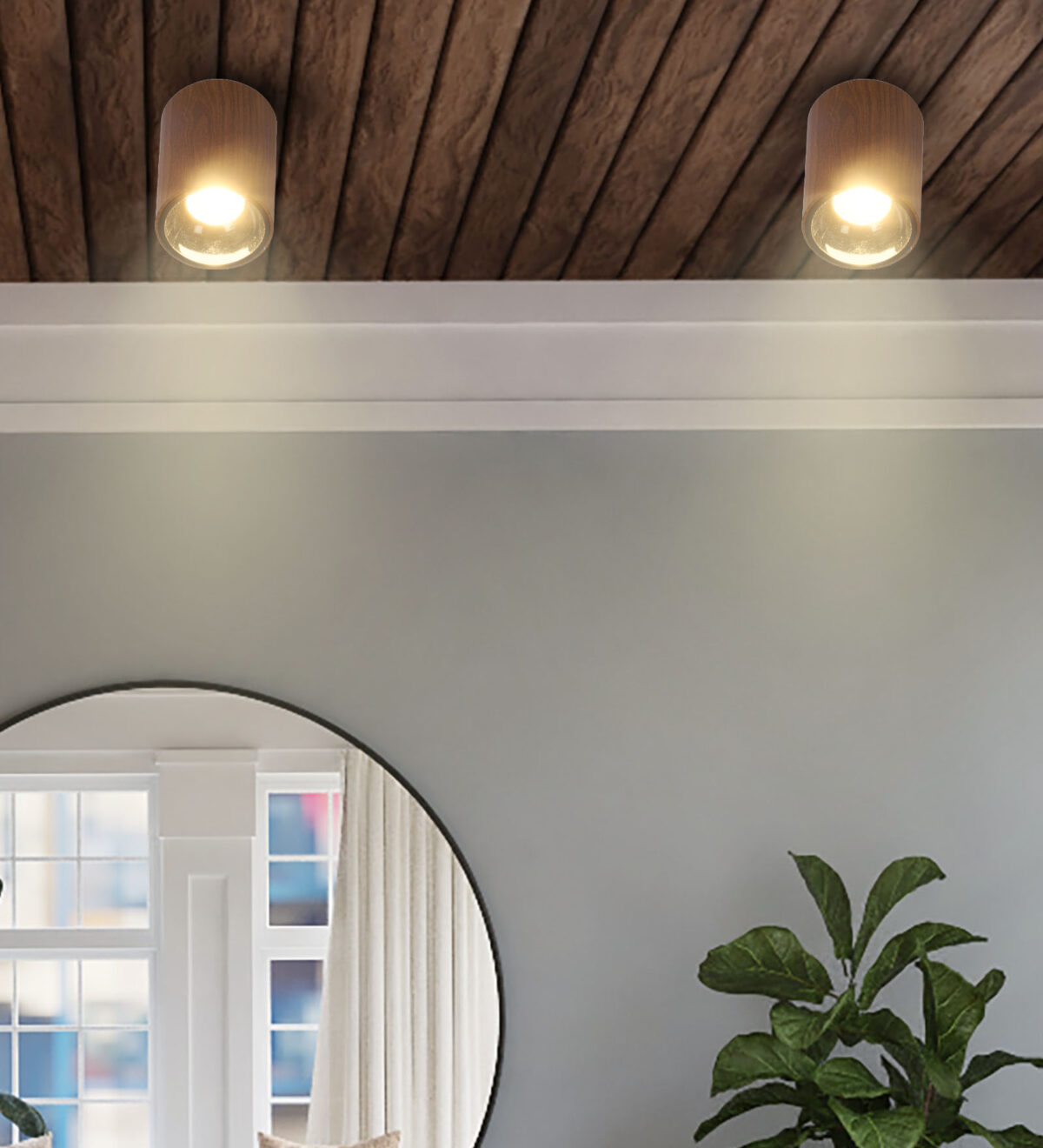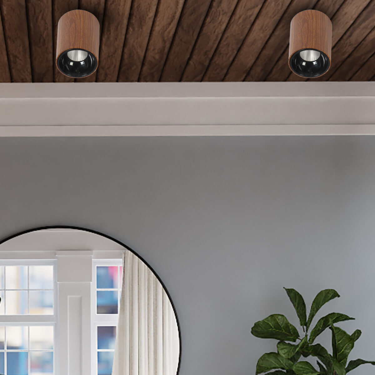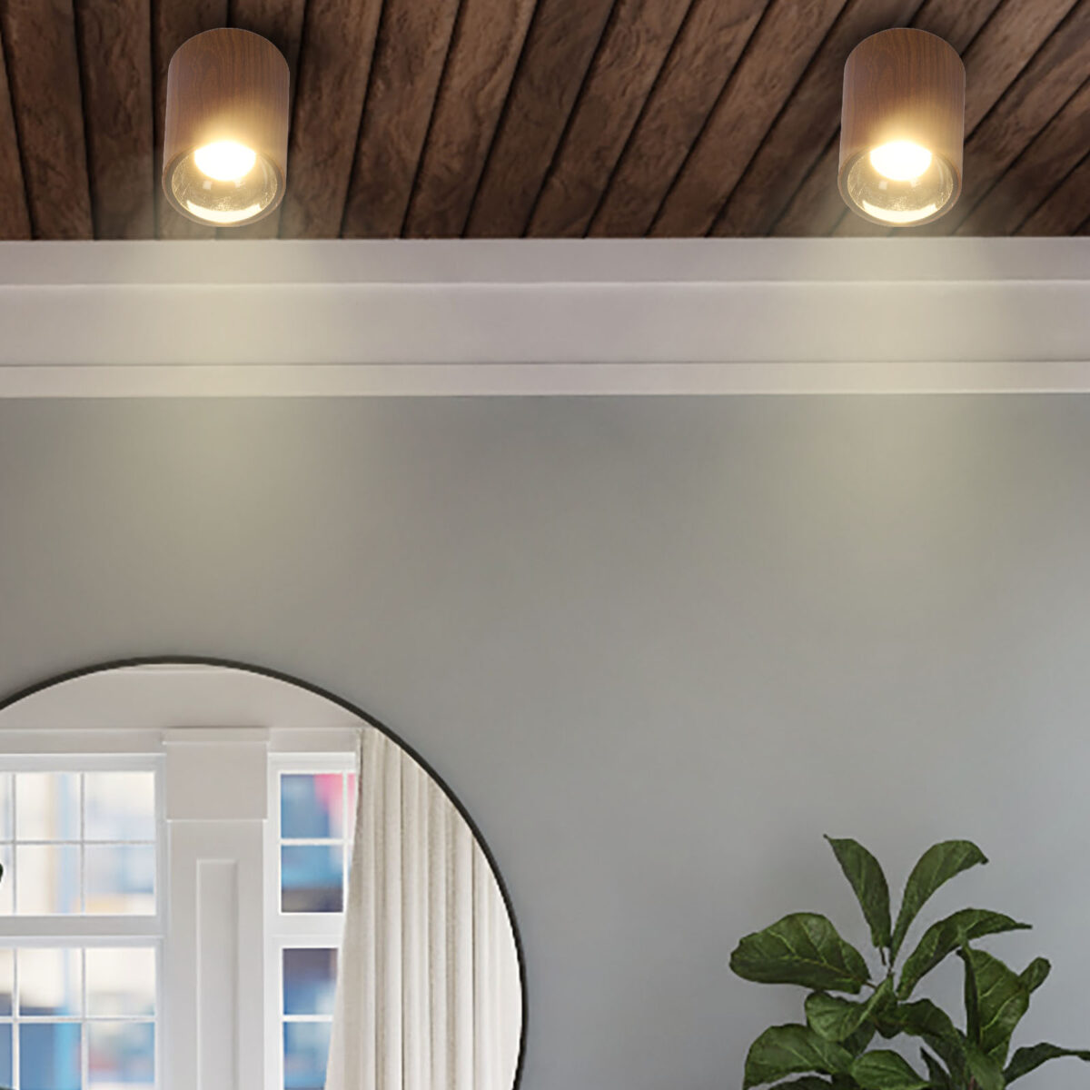 Wooden finish ceiling surface light for indoors and outdoors. Scene Switch Feature : With it’s scene switch feature the downlighter can change it’s color into three modes i.e Cool Day Light, Natural White and Warm White. ON/OFF of the switch in 7 seconds leads to the change in color. Choose the color of your downlighter according to your mood.