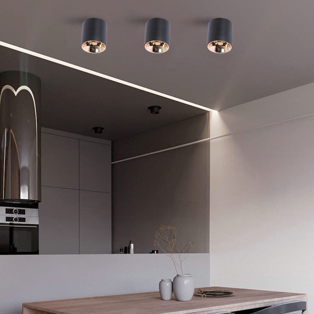 LEARC ANTI GLARE ALUMINIUM BLACK , ROSE GOLD REFLECTOR, 12 WATT COLOUR CHANGING 3 IN 1 CEILING CYLINDER TR1928-3C