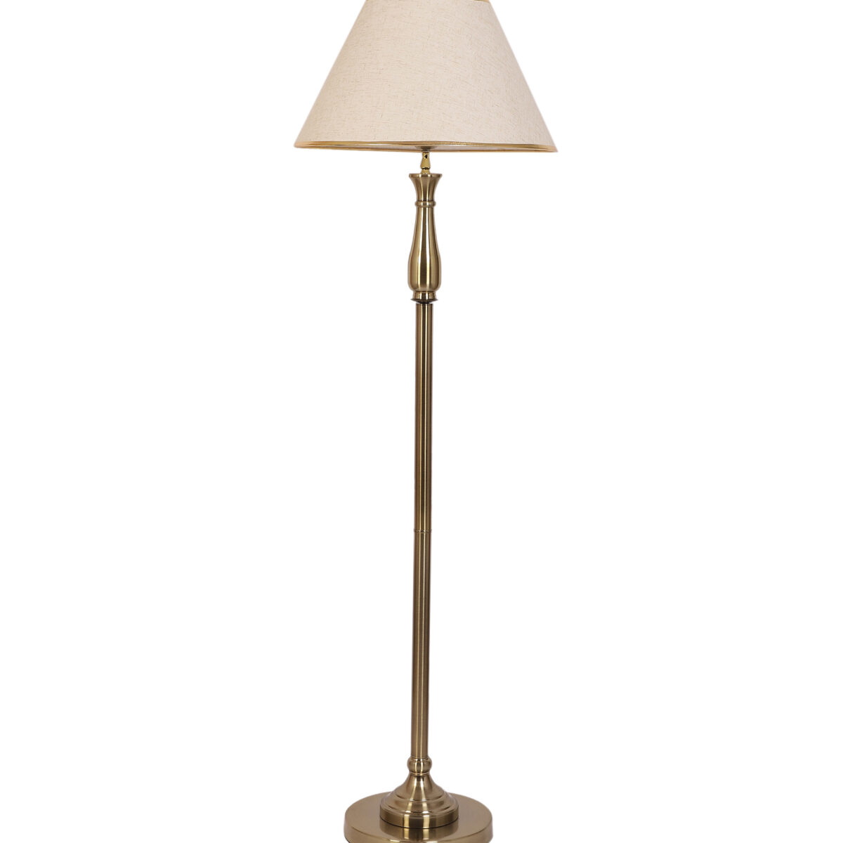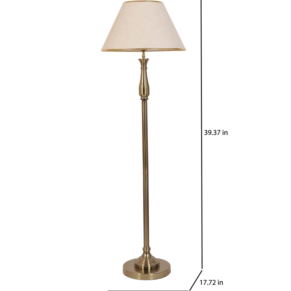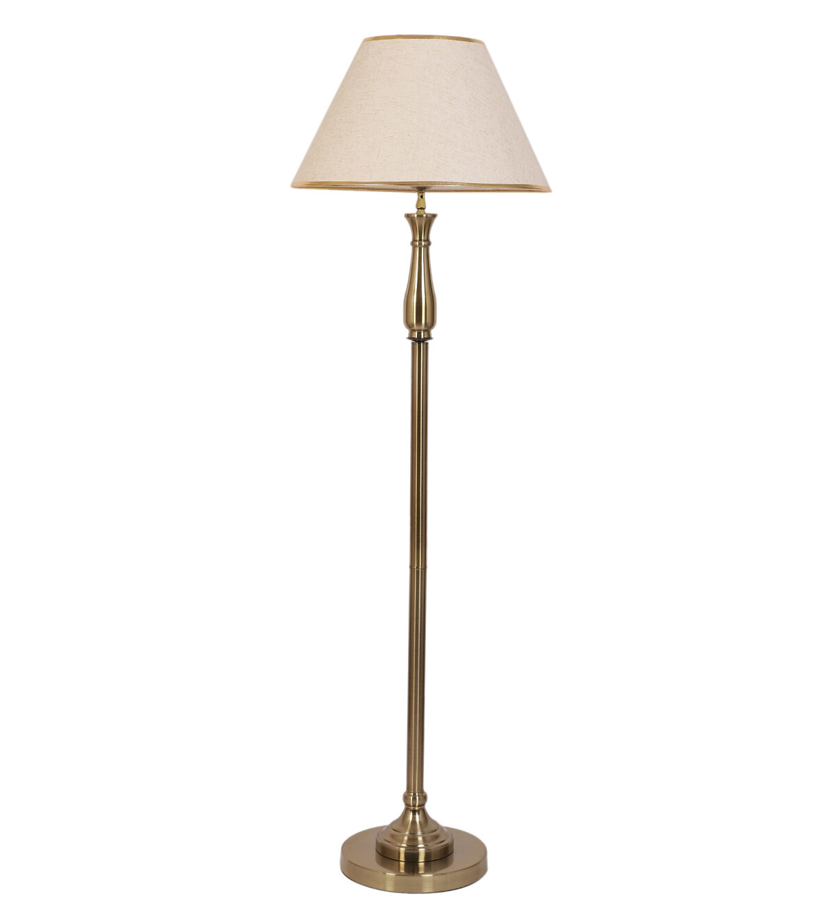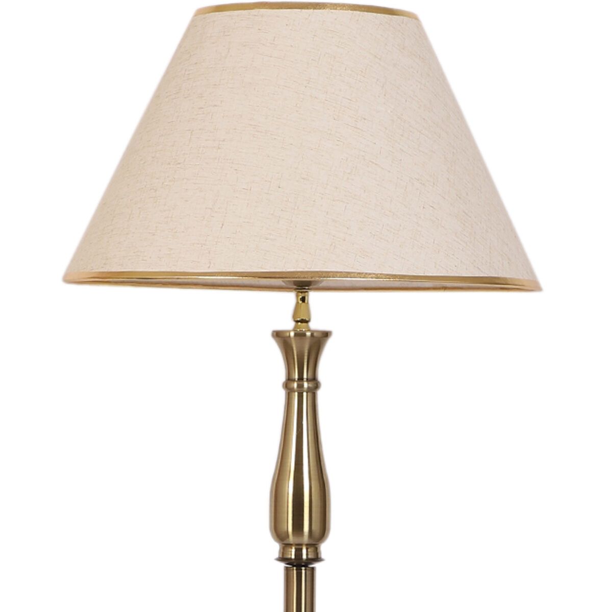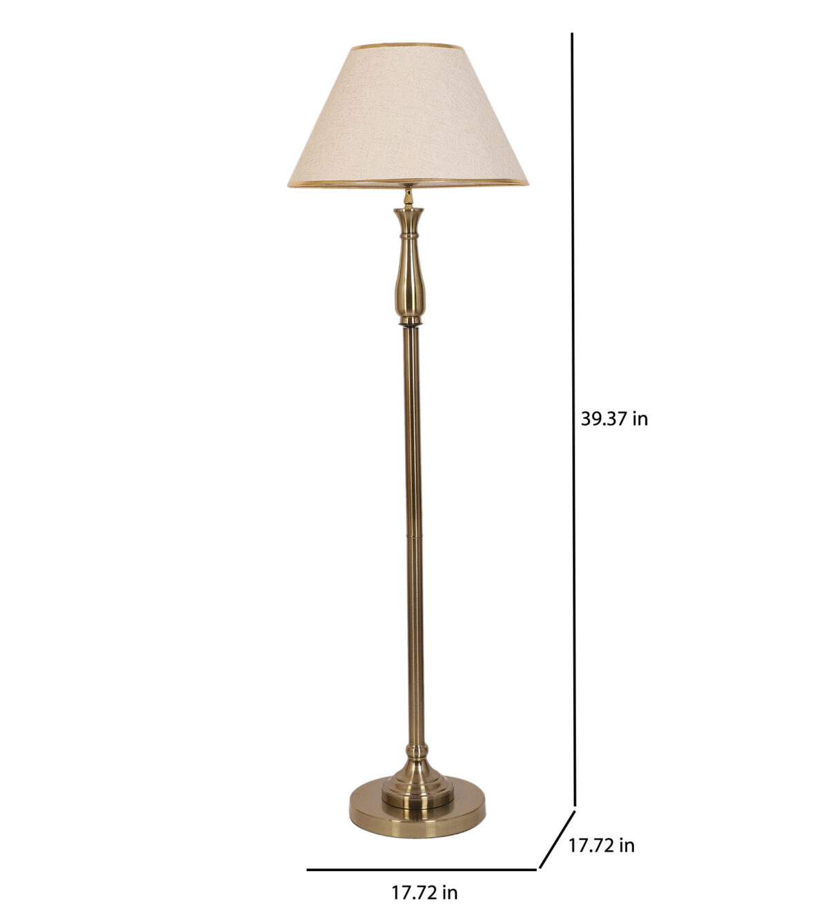 LEARC antique brass finish floor lamp with cream textured shade having golden border. LAMP NOT INCLUDED.