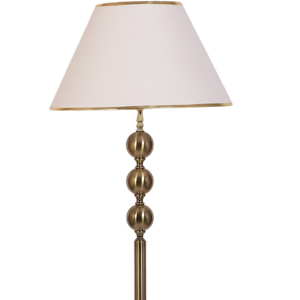 LEARC antique brass finish floor lamp with white shade having golden border. LAMP NOT INCLUDED.