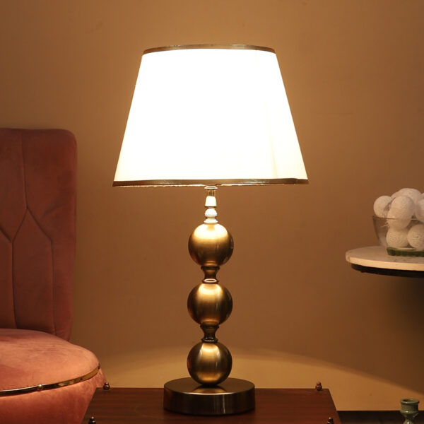 LEARC antique brass finish table lamp with white shade having golden border TL5015-C