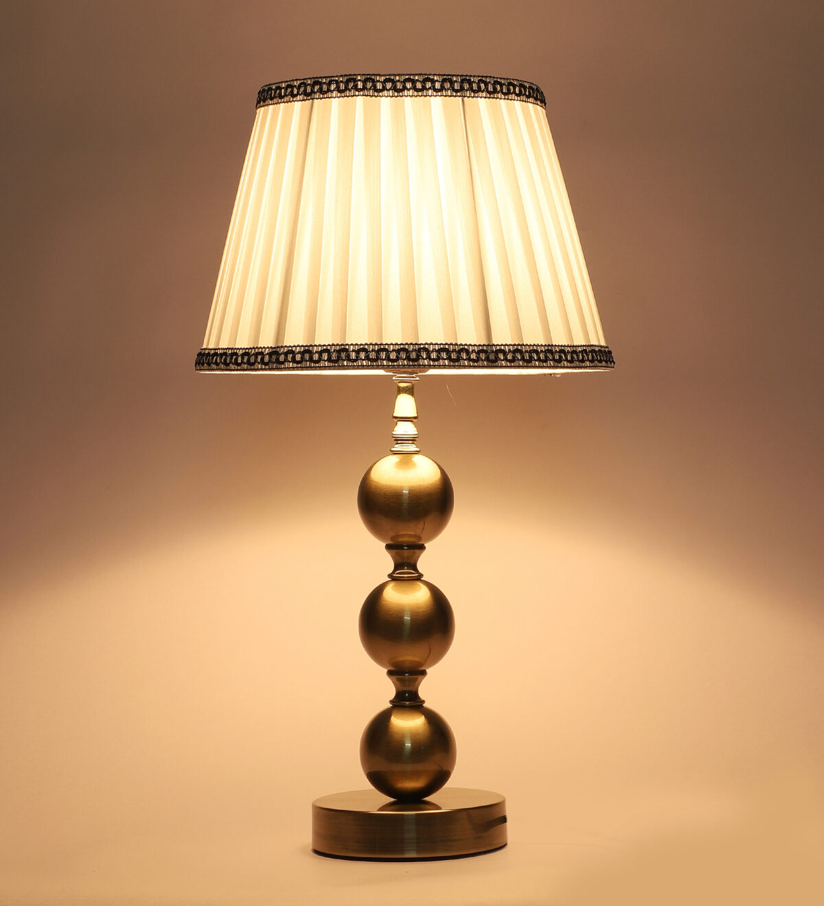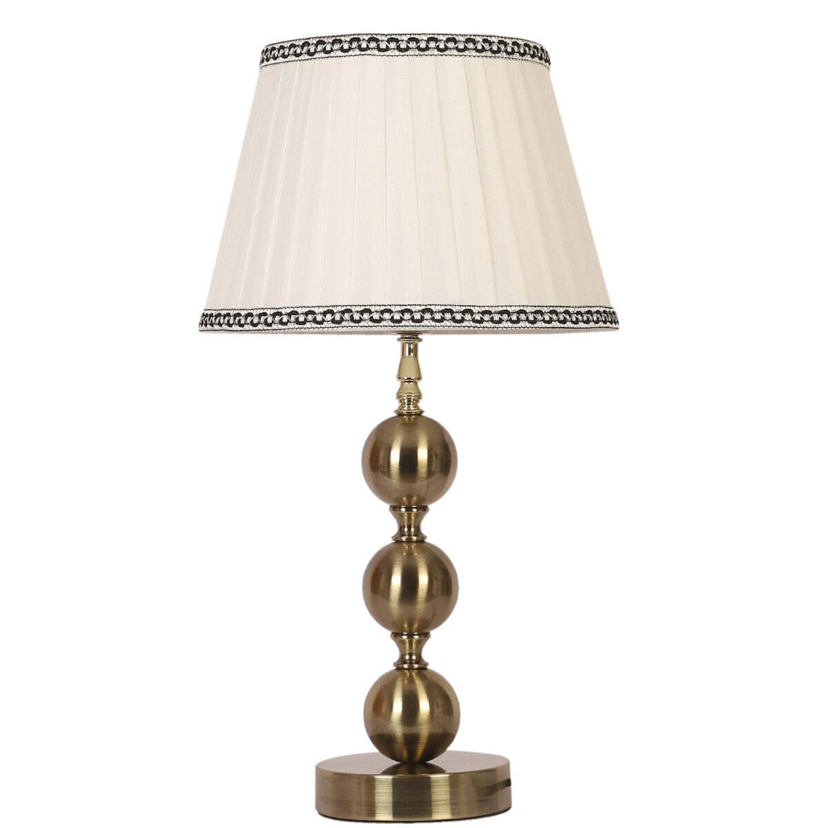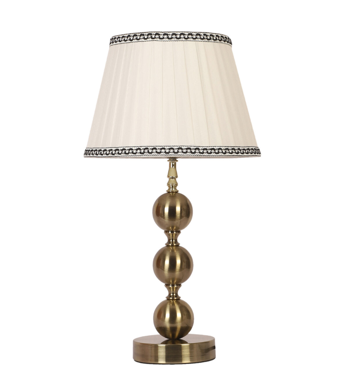 LEARC antique brass finish table lamp with cream shade. LAMP NOT INCLUDED.