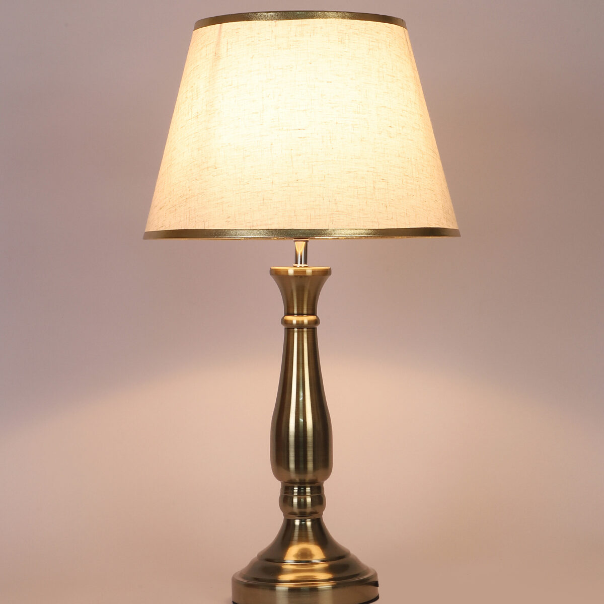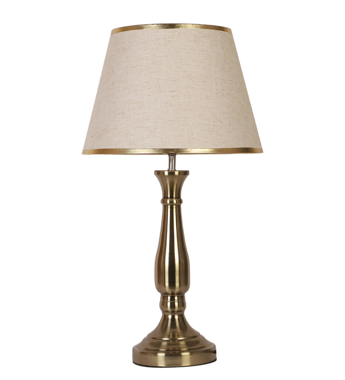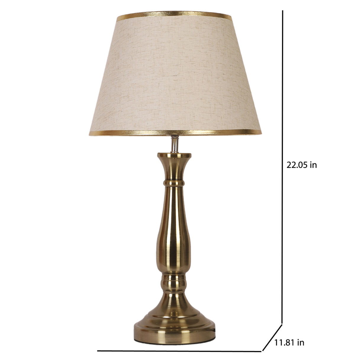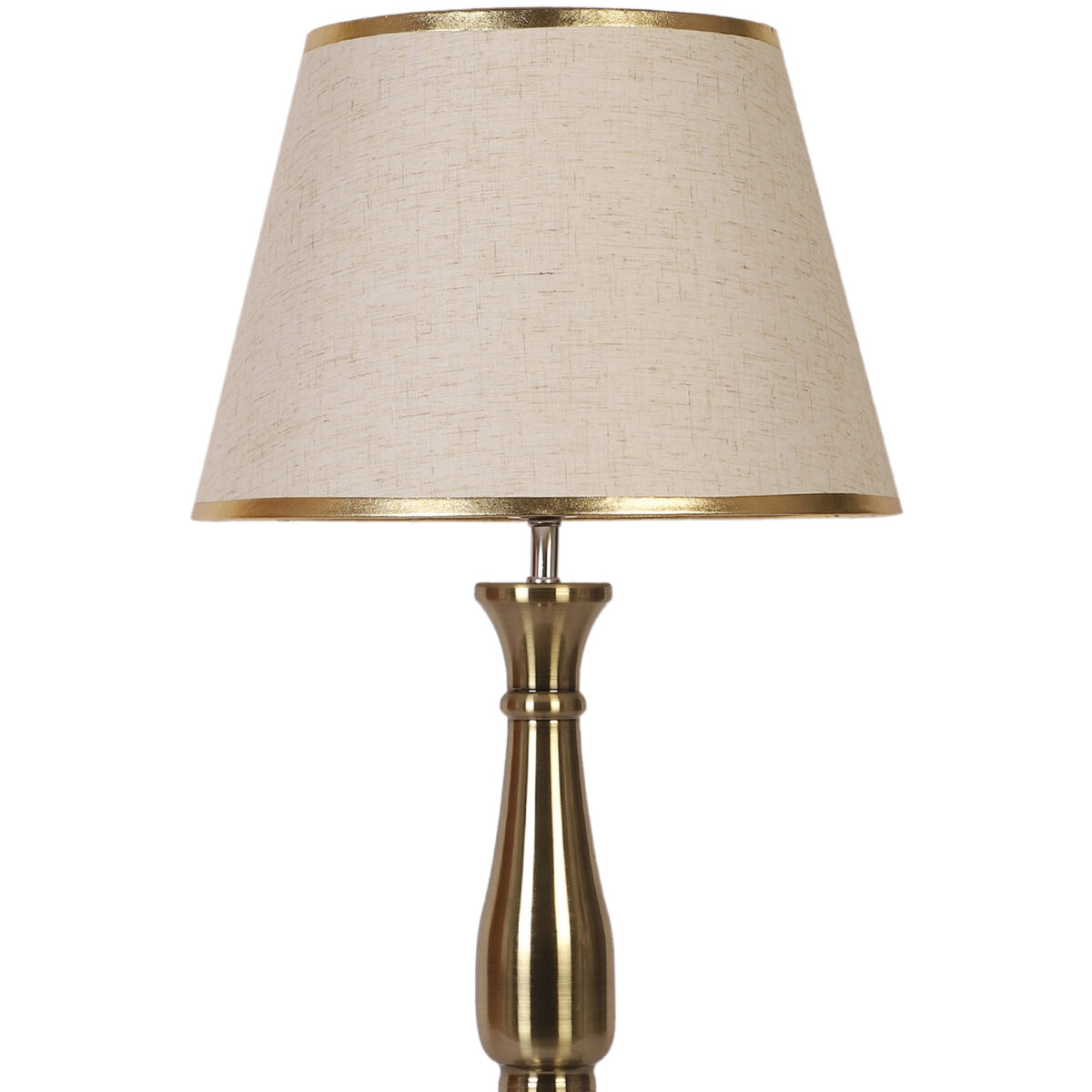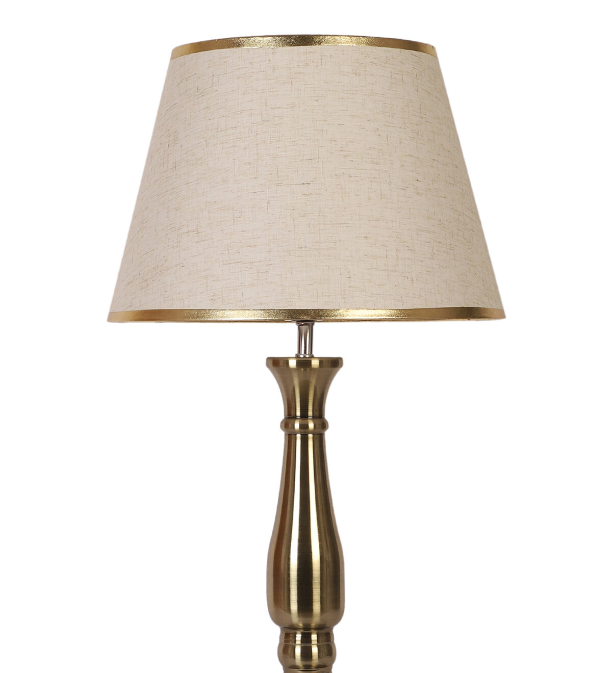 LEARC antique brass finish table lamp with cream textured shade having golden border. LAMP NOT INCLUDED.