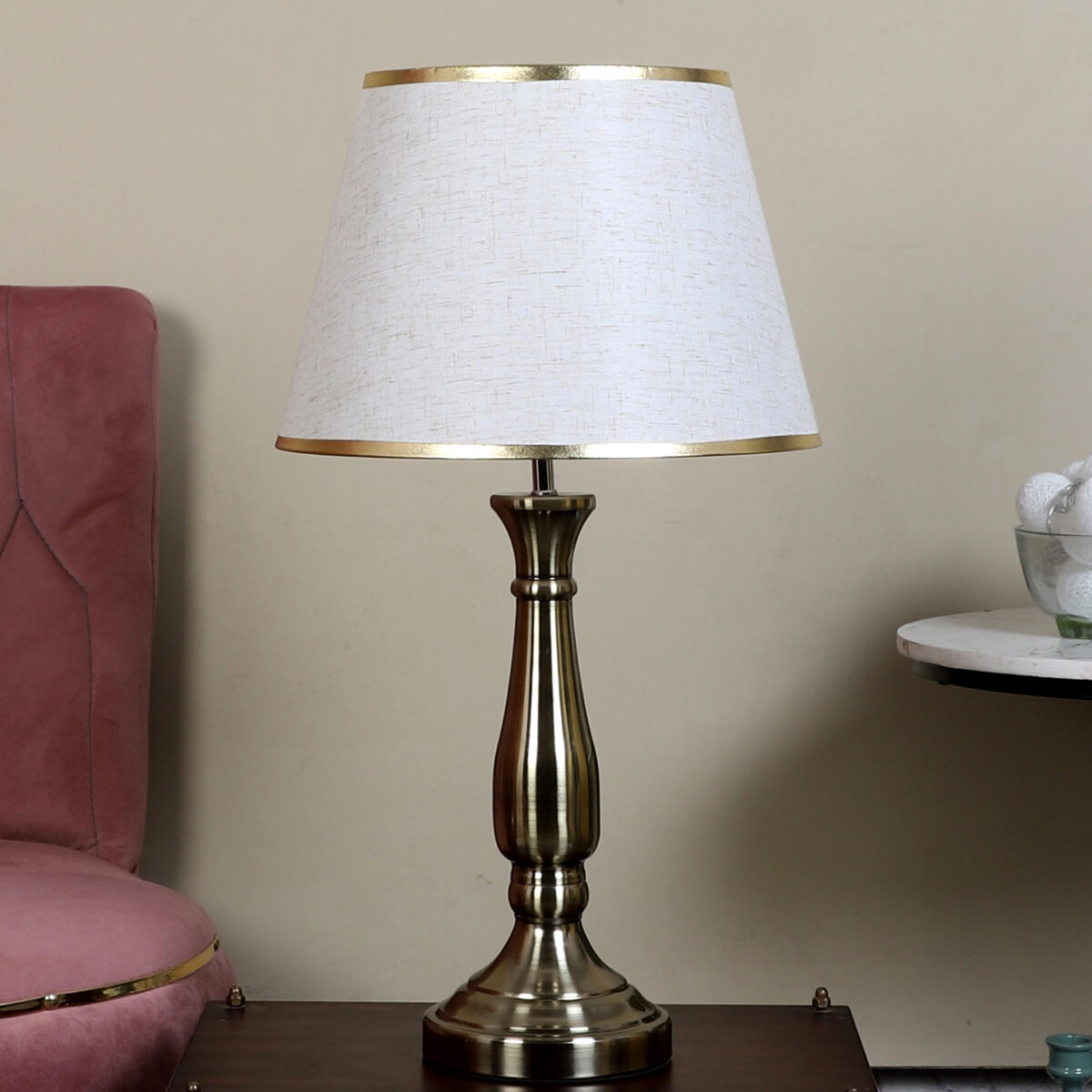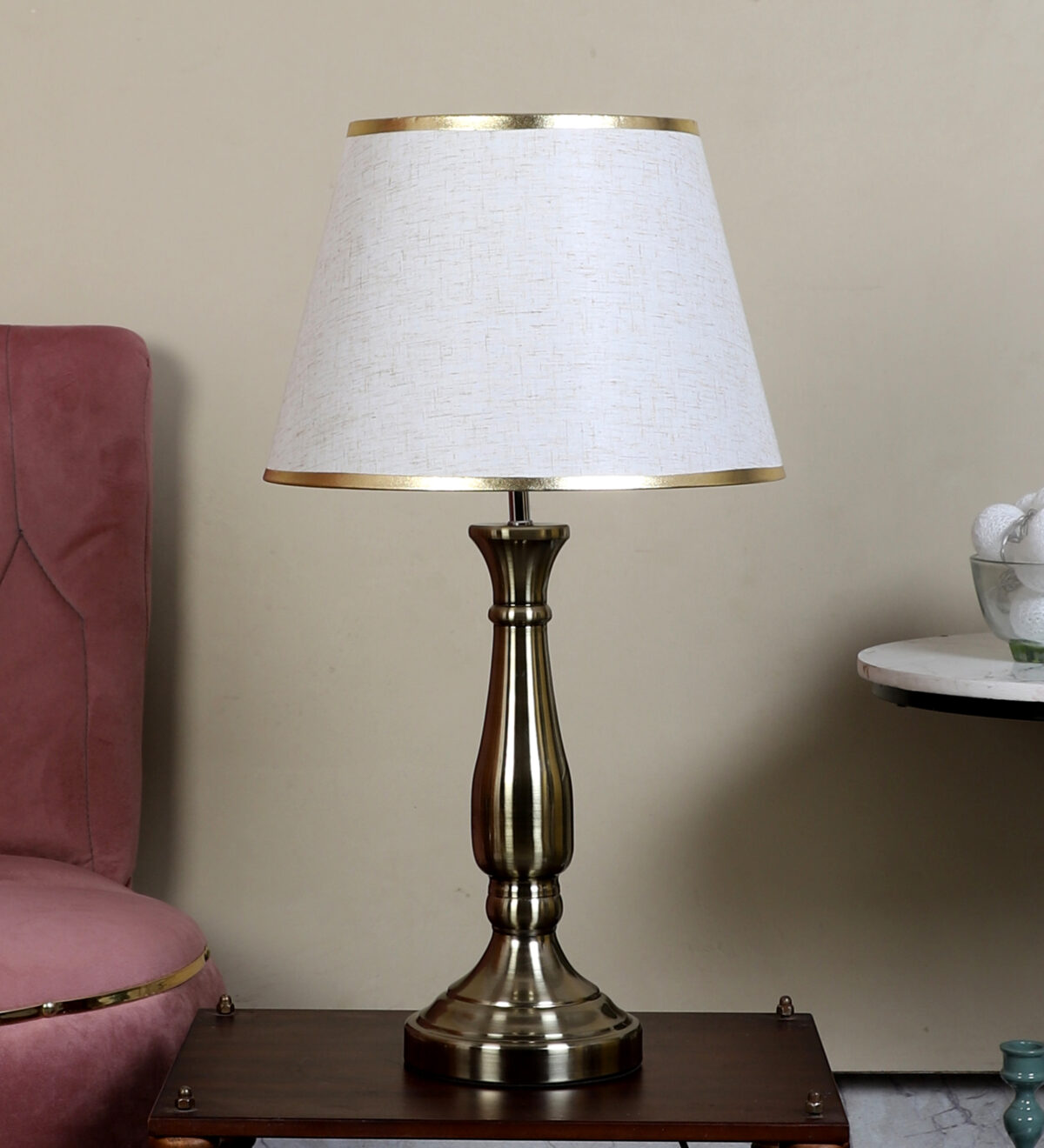 LEARC antique brass finish table lamp with cream textured shade having golden border TL5014-B