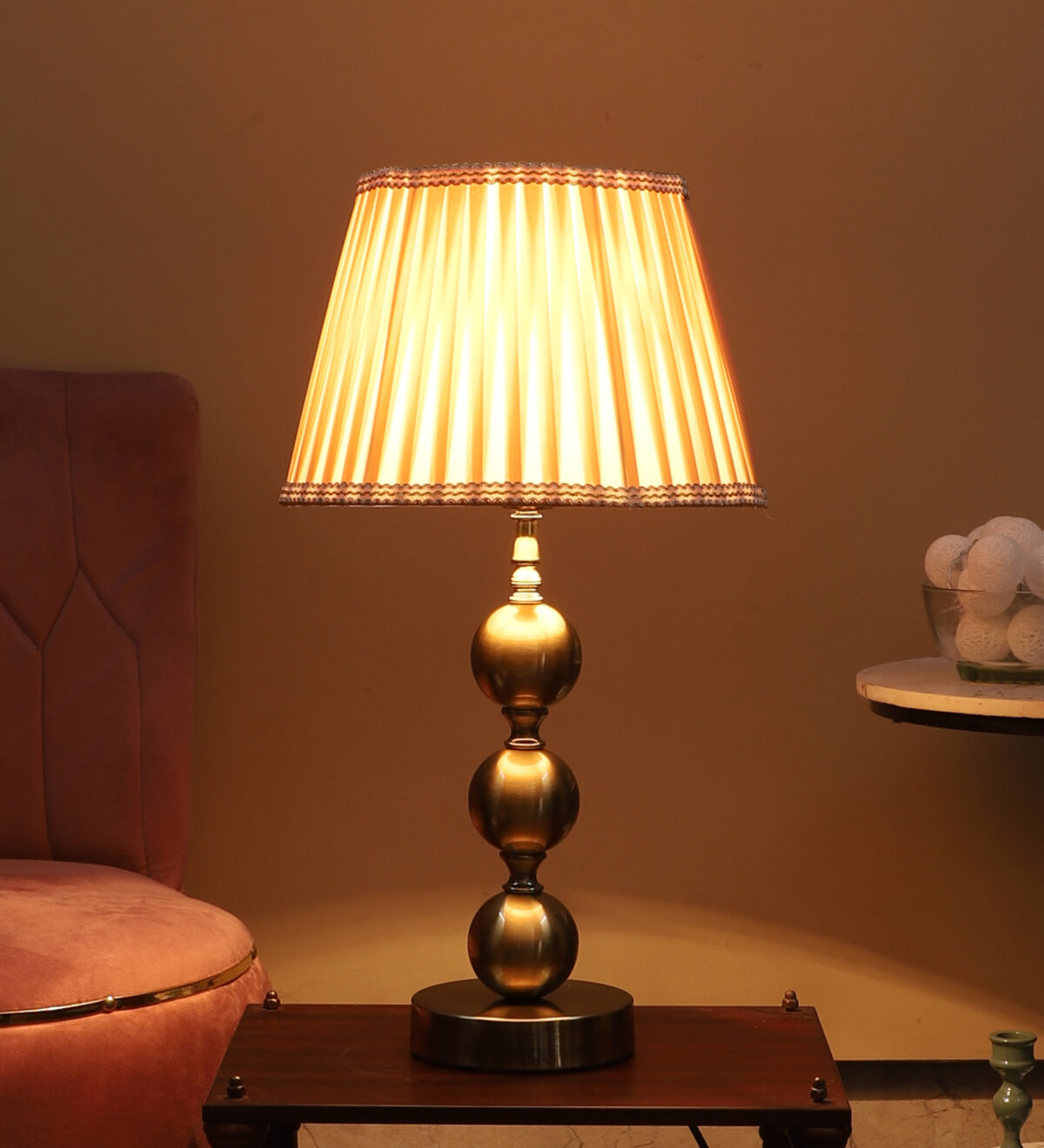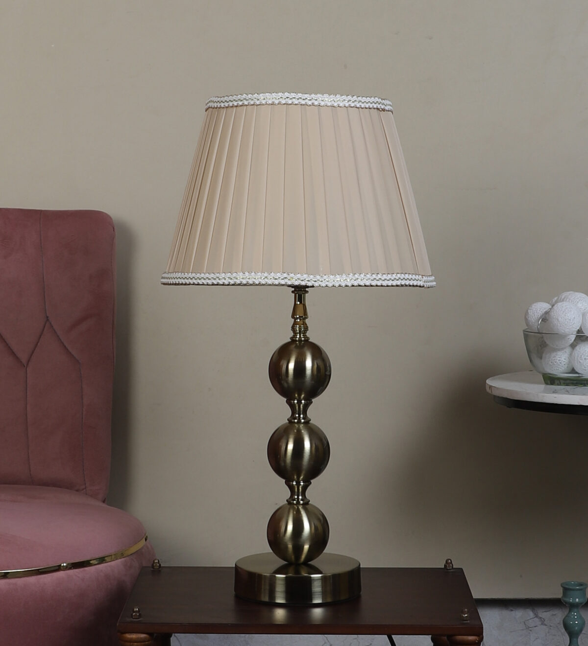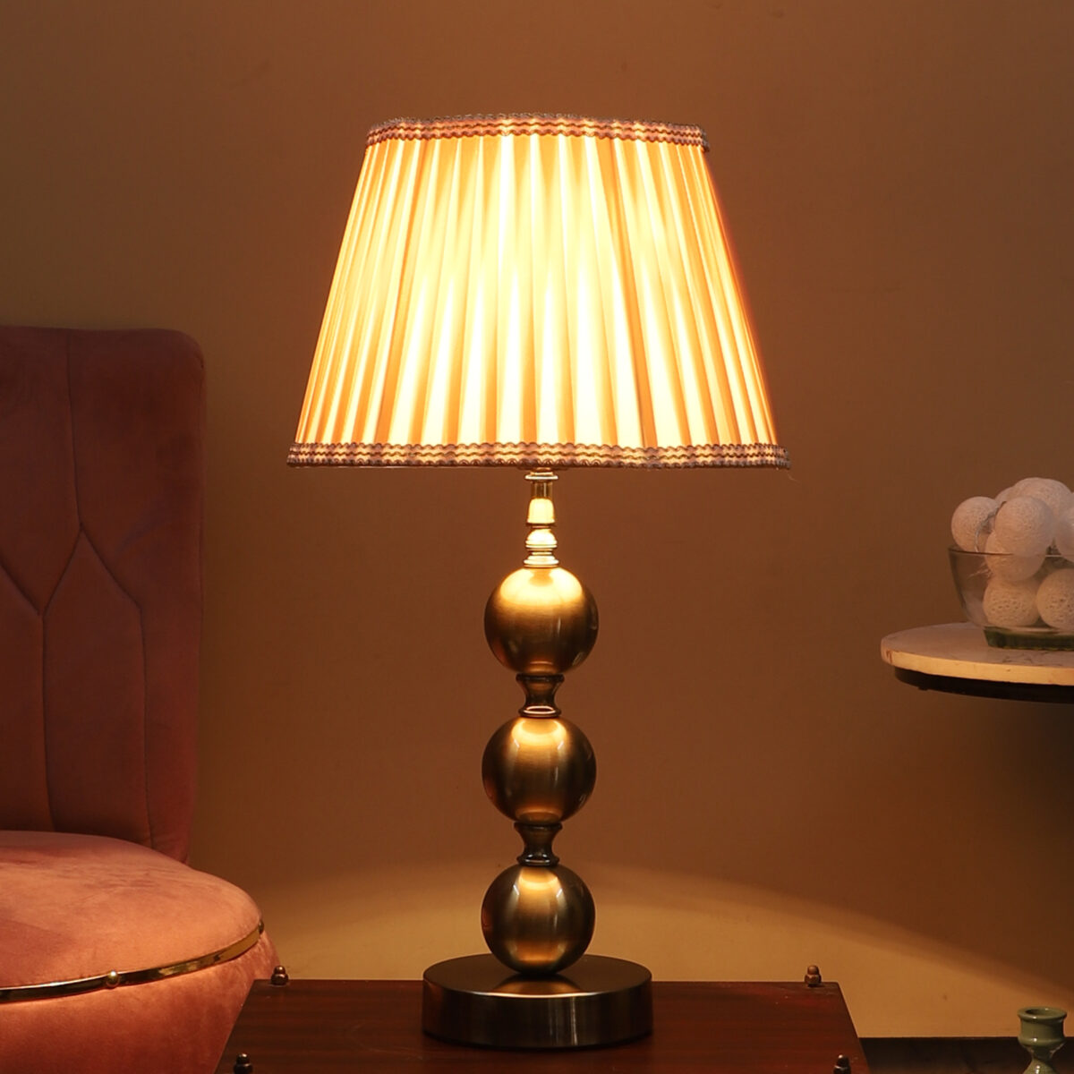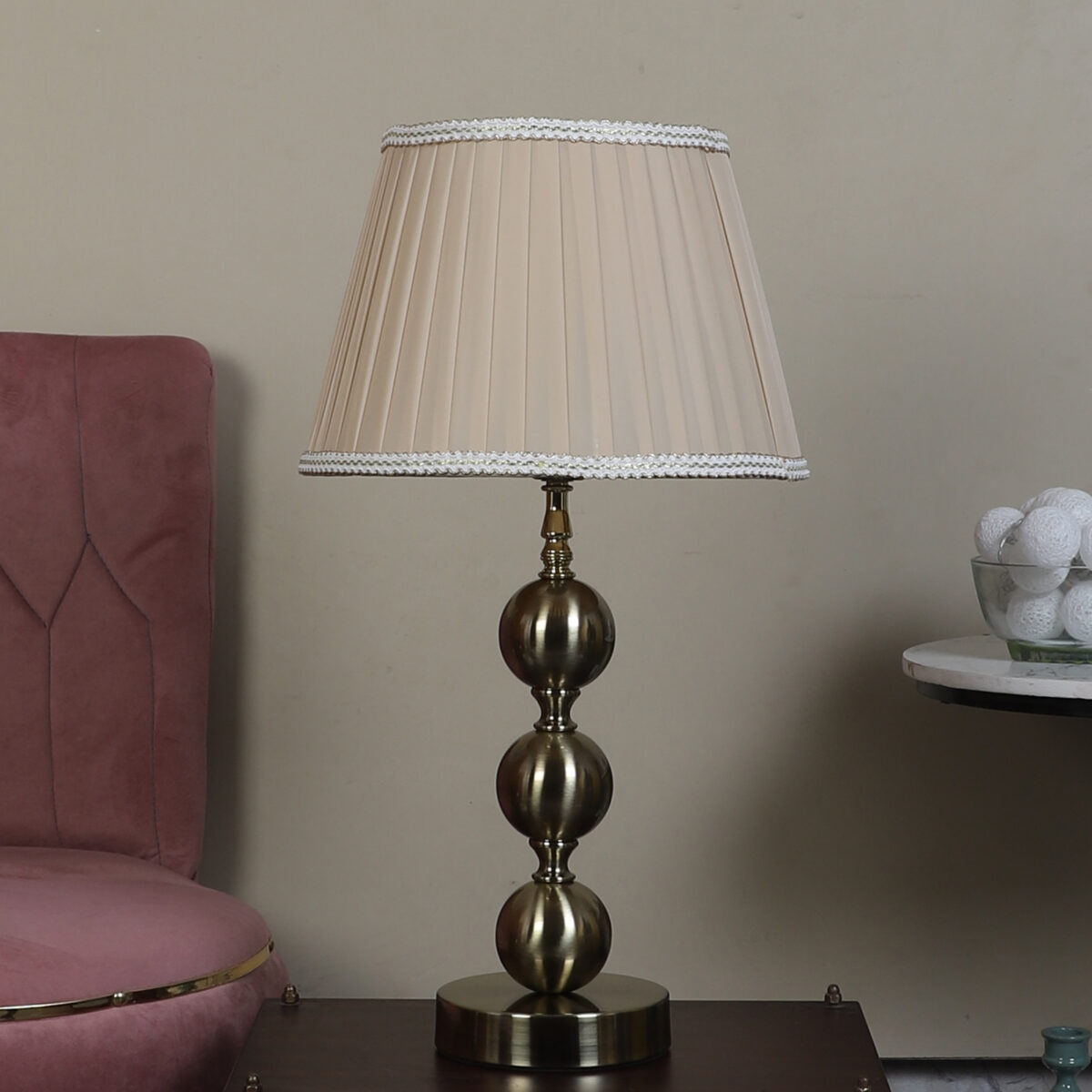 LEARC antique brass finish table lamp with dark cream shade TL5015-E