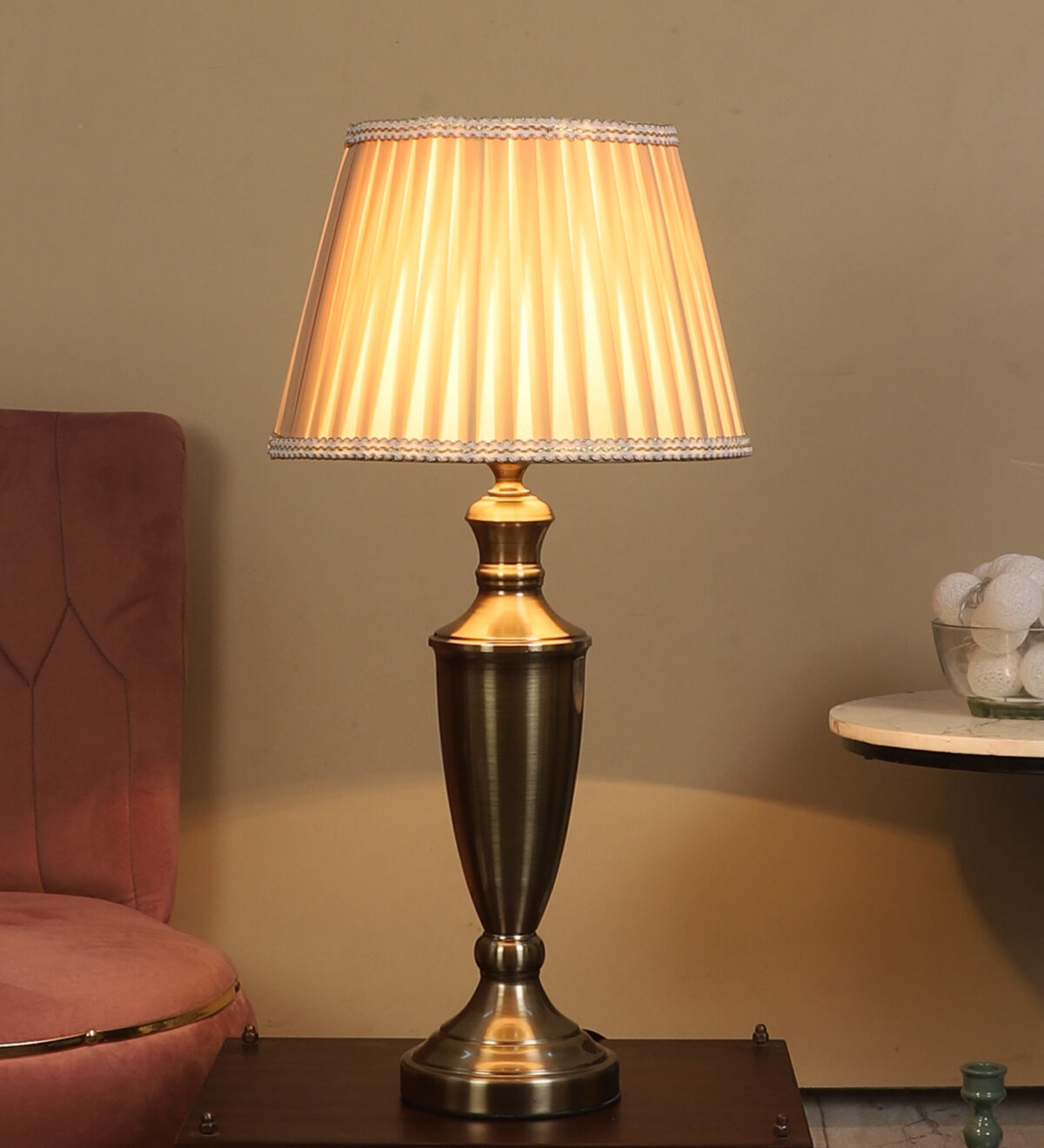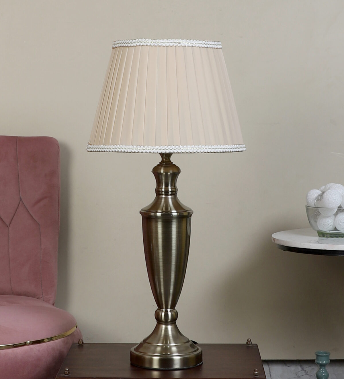 LEARC antique brass finish table lamp with dark cream shade TL5020-E